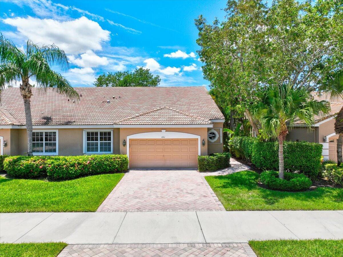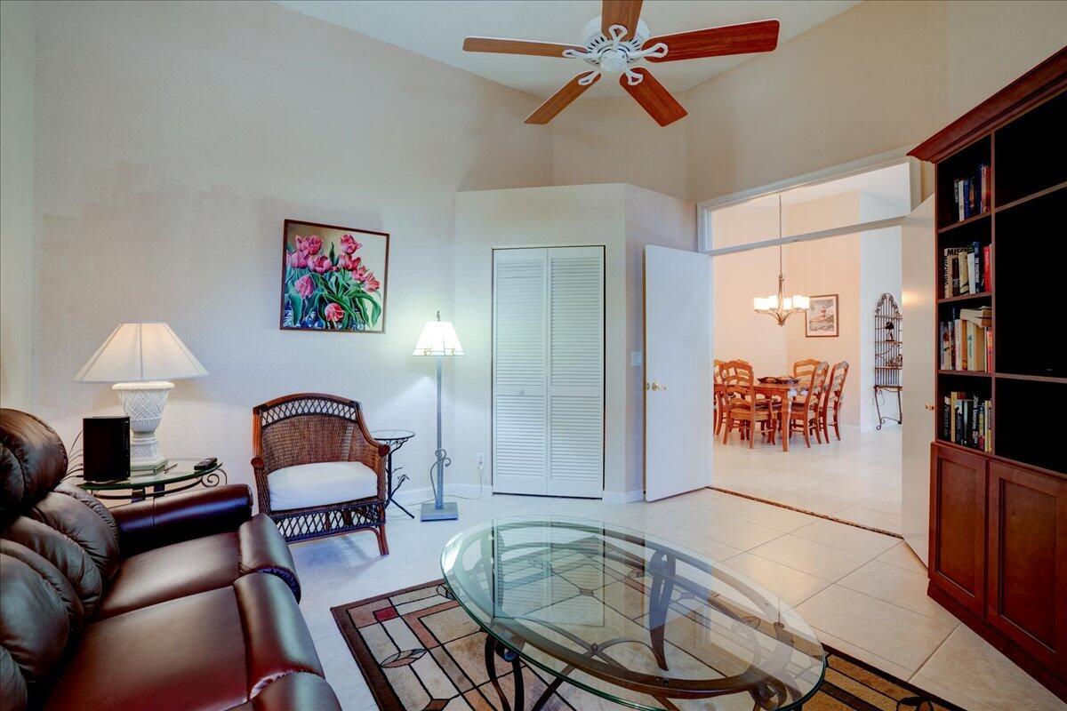 Located in the Cambridge neighborhood, this 2-bedroom + den home offers over 2,000 sq ft of living space and flexible design. The den can easily be converted into a third bedroom or home office. Features include an oversized garage with space for a golf cart, a large screened patio, and a bright great room layout with a separate dining area. The spacious kitchen includes a breakfast nook and updated appliances. The primary suite boasts two walk-in closets, dual sinks, and a separate tub and shower. Additional highlights include an interior laundry room with sink, accordion shutters, and energy-efficient southern exposure.Wycliffe Golf & Country Club offers a vibrant private club lifestyle with access to two newly renovated championship golf courses, eight pickleball courts, 15 Har-Tru tennis courts, a state-of-the-art fitness center, and a full-service spa. Members enjoy multiple dining venues, year-round events, an Olympic-size swimming pool, personal training, and wellness classes, including yoga and water aerobics. With mandatory membership, residents also enjoy premium services like Comcast internet, cable with HBO and Showtime, and ADT security monitoring. Located near Wellington's equestrian centers and just minutes from Boca Raton, Palm Beach, and area airportsWycliffe is South Florida living at its finest.