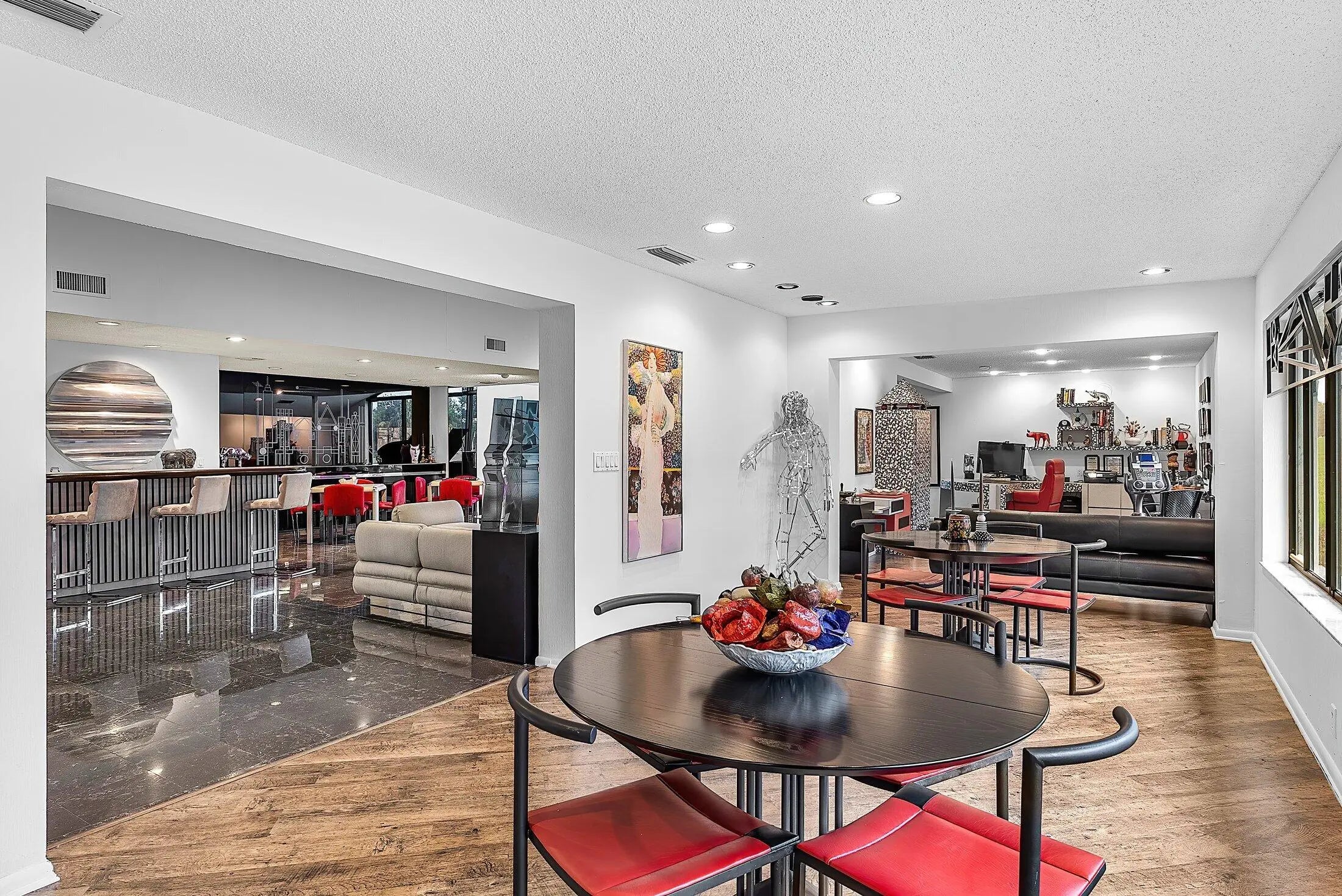 Nestled in The Oaks at Hunters Run Country Club, this exceptional mid-century modern style home offers 2 spacious bedrooms plus a den, with 2.5 bathrooms across 3296 sq-ft. Step inside to a spectacular great room adorned with marble tile, vaulted ceilings, and oversized gable windows with panoramic eastern golf course views. The primary retreat offers two walk-in closets and a private bath, with a separate shower and soaking tub. The secondary bedroom doubles as a den complete with a Murphy bed. An expansive flex-room can be customized to accommodate a third AND fourth bedroom, family room, and dining area. Exterior highlights include a private front patio, two-car garage, and the Oaks community pool just steps from your front door. Make this your dream home at Hunters Run today!
