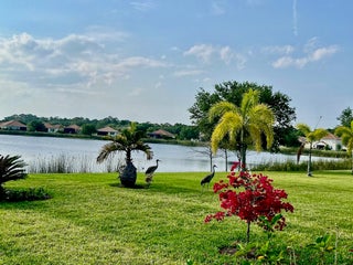 Lakefront Elegance in Millstone Landing. This stunning 3-bed, 2-bath, 2-car garage home offers breathtaking lake views & elegant upgrades. Move-in ready & energy efficient,includes furniture with a full-price offer. Your next home features a new water heater, new stainless steel appliances, granite countertops, and custom Levolor window treatments. The spacious owner's suite boasts a tray ceiling, luxury vinyl plank flooring, a walk-in closet, double vanity, and a garden tub. Enjoy sunsets from the screened lanai. Large backyard with room for a pool. Resort-style amenities and low HOA.