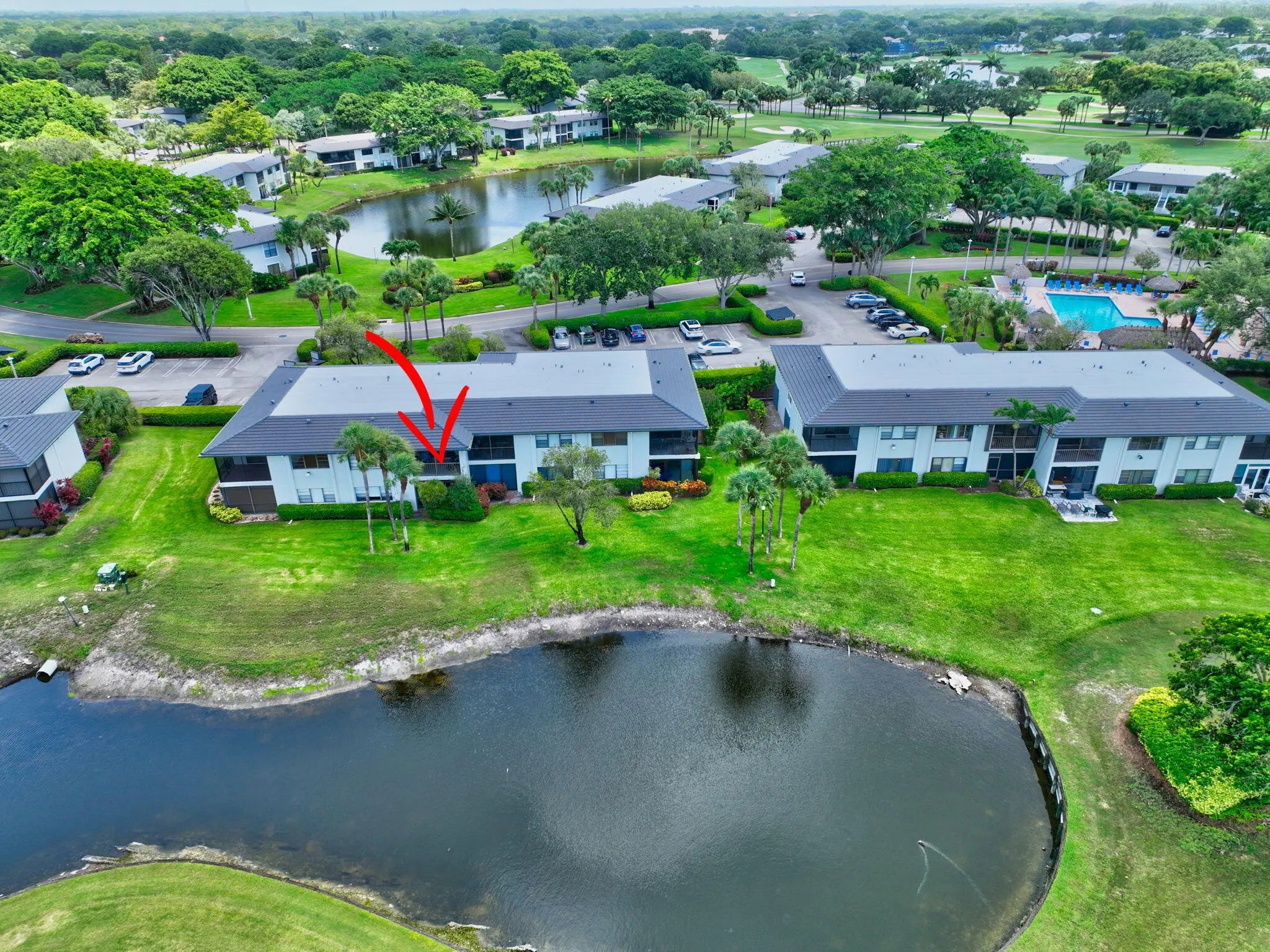 This is IT !! A beautifully maintained condo located in the highly sought-after Hunters Run Country Club. This spacious second-floor unit offers 2 bedrooms, 2 bathrooms, and an open-concept layout filled with natural light. The updated kitchen features large pass though ,stunning backsplash, granite countertops, stainless steel appliances, and ample cabinetry--perfect for cooking and entertaining. Primary En Suite boasts a new shower with River Rock Floor & Frameless shower door. Enjoy serene golf course and lake views from the screened-in lanai. BRAND NEW A/C.. AND YES.... YOU CAN OWN YOUR OWN GOLF CART ;-)