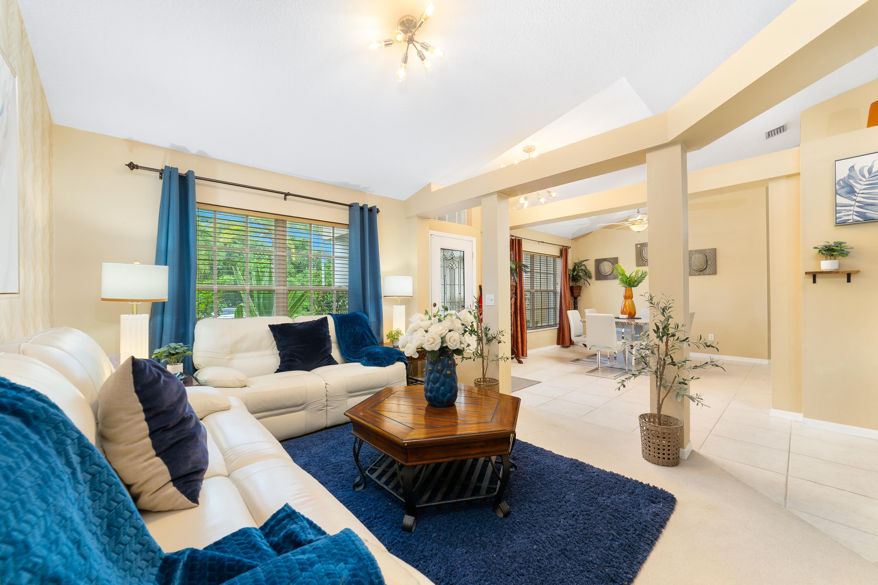 Welcome to this charming CBS home offering 3 bedrooms, 2 baths, a versatile bonus room, and a cozy den complete with a cozy fireplace--perfect for relaxing evenings. The kitchen features stainless steel appliances and convenient pull-out cabinet drawers. Enjoy peace of mind with recent updates: a new roof (2019), newer A/C (2018), and water heater (2017). Washer and dryer included. The fully fenced backyard is ideal for pets, playtime, or quiet outdoor moments. Tucked in a friendly, quiet neighborhood near Becker Rd, I-95, and shopping. A wonderful place to call home in the heart of Port St. Lucie. Turnkey/Fully furnished with full price offer. Bundled service pricing available for buyers. Connect with the listing agent for details.