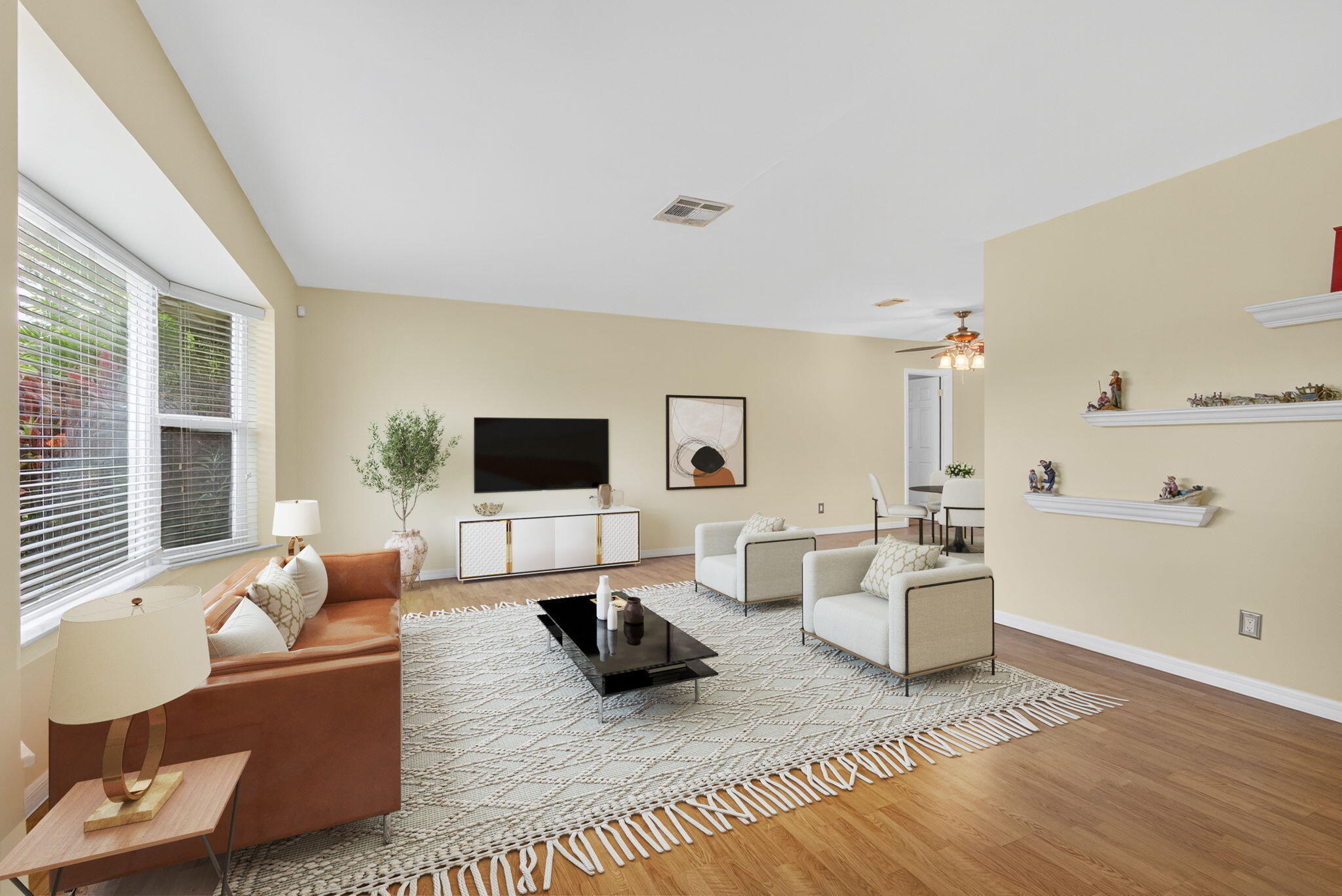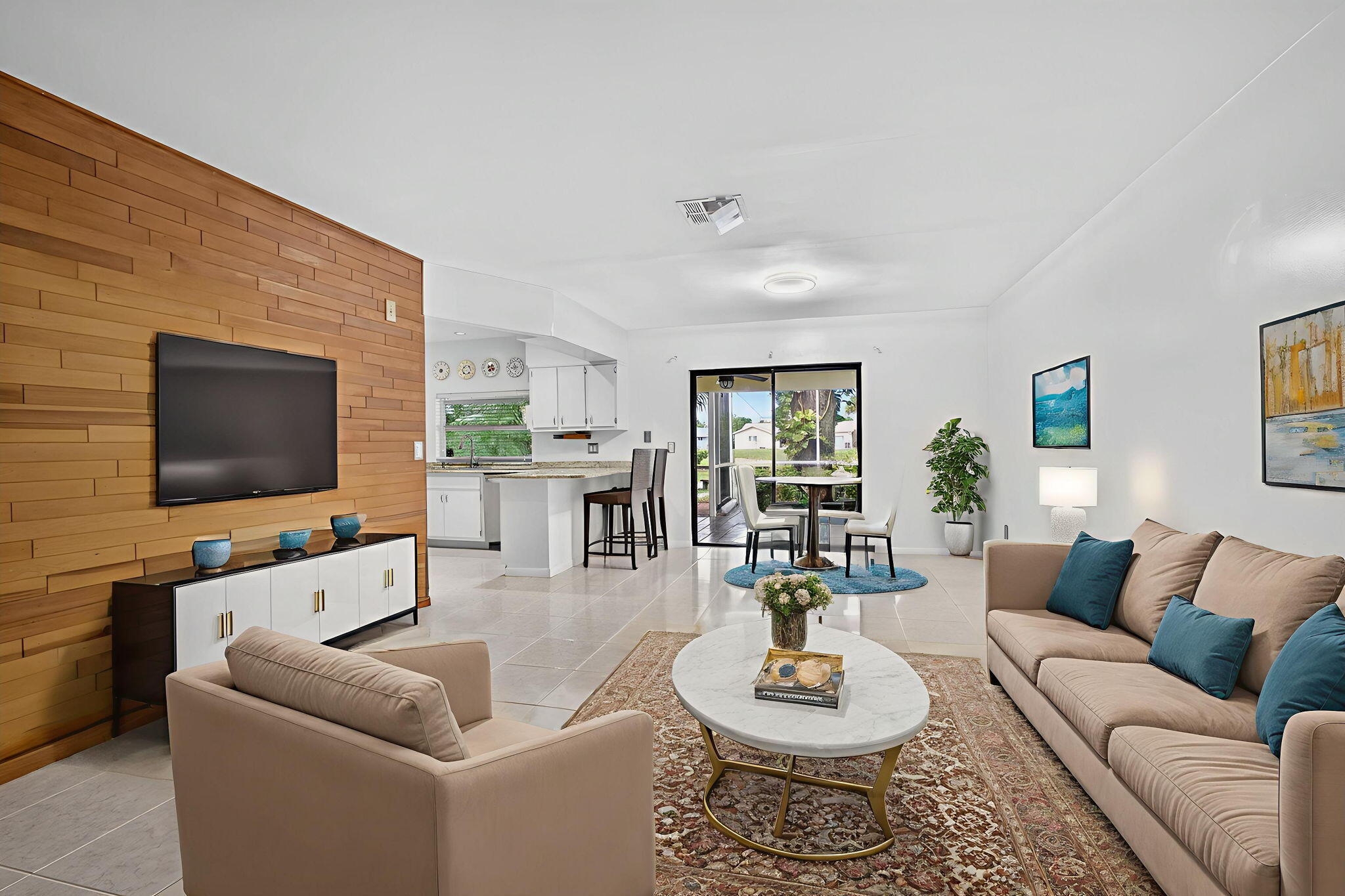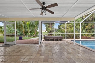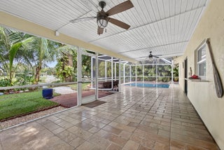 LOWEST PRICED 3 BEDS, 2 BATH, WITH POOL, WATERFRONT & 2 CAR GARAGE IN 33414 WELLINGTON!Situated on on a tropical mango and banana fruit treed lot, with tranquil views of a wide navigable canal for your boating and recreation fun. Enjoy the screen enclosed, travertine pavered patio and lanai, while relaxing in the heated, salt filtrated pool. The storm efficient home has a sturdy metal roof with solar panels for off the grid electic energy. Storm impact windows are plus for safety, security and energy efficiency.Appliance upgrades feature 2024 installation of a new kitchen stove, water heater, new pool and irrigation pumps and garage door opener and springs.Enjoy the autonomy and the financial savings of NO HOA. See it now at this new value price.