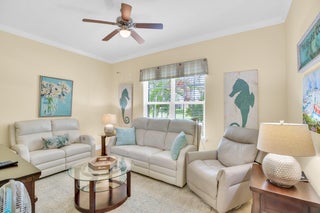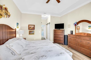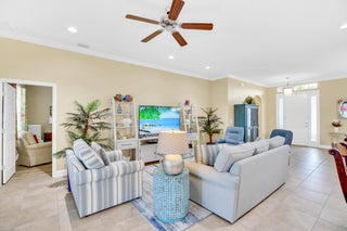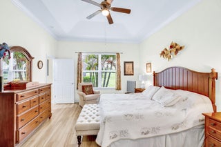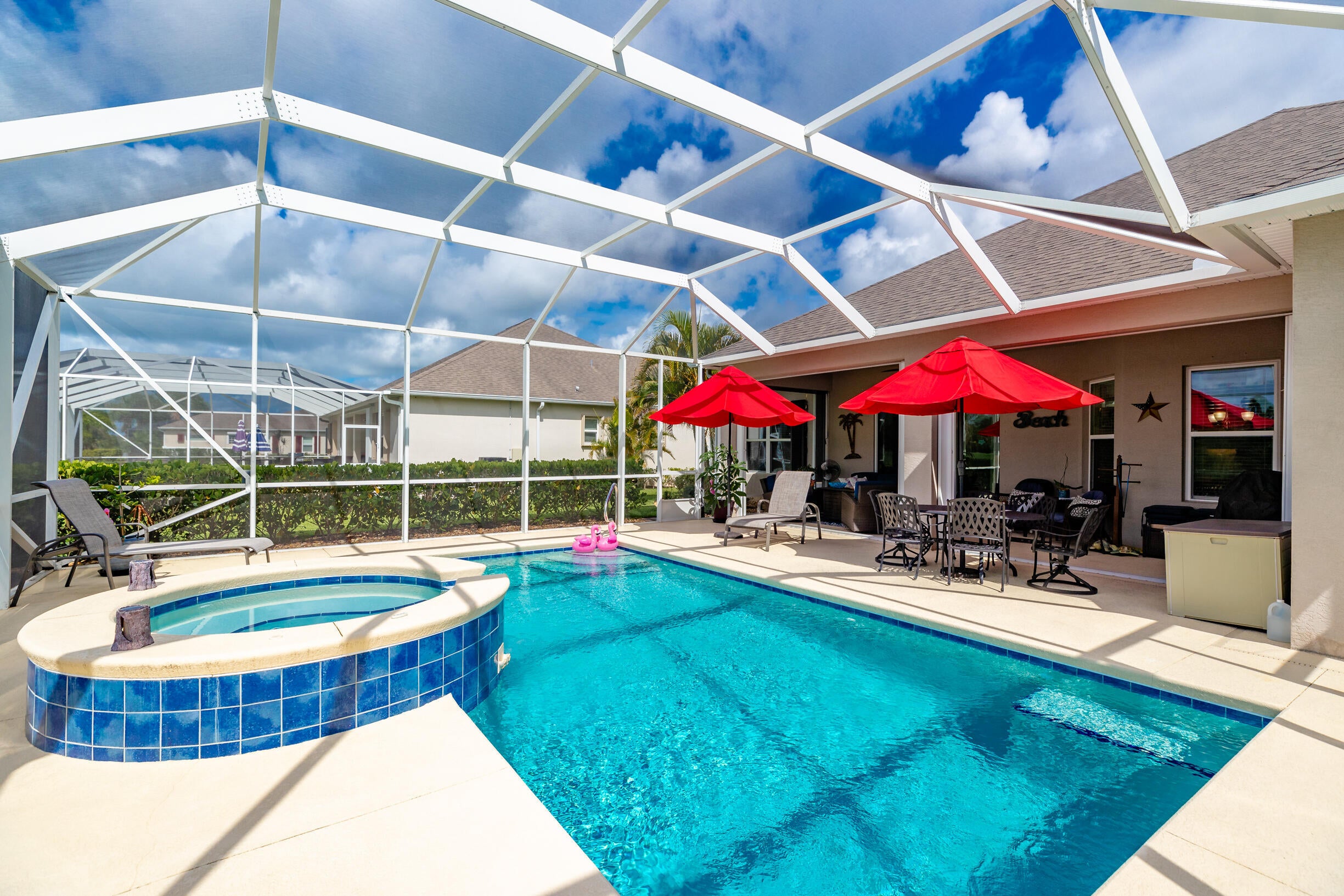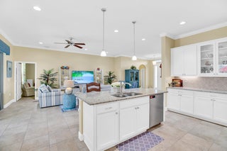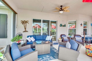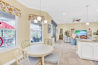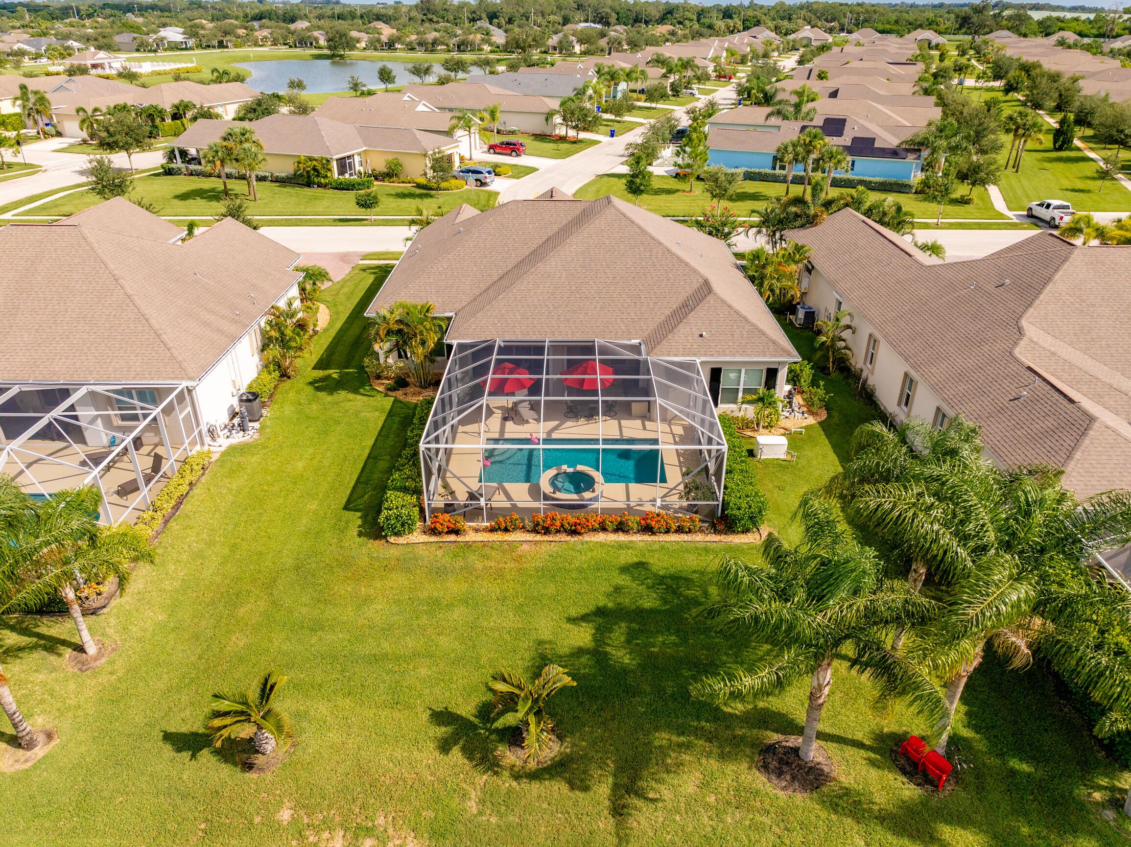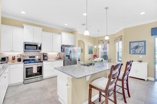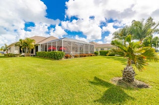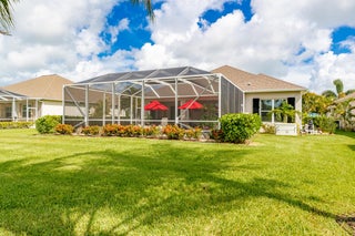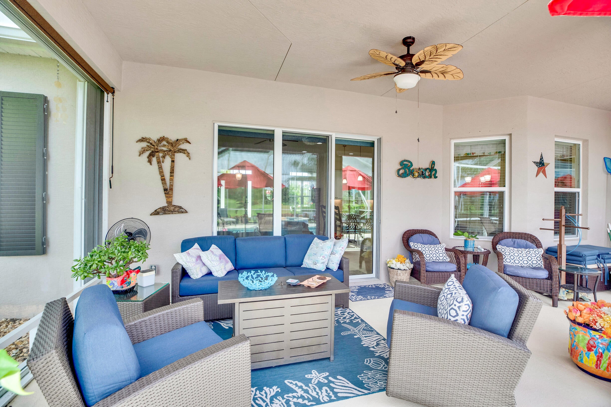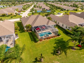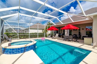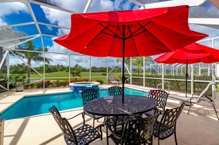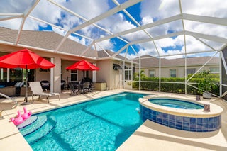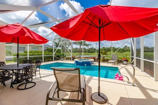 Remarkable 3/2.5/2 + den with a southern exposed screened in pool w/spa. This lot oversees the lake, hole #12 green and #13 tee box. This 2018 CBS is stylish and ready for its new owner. Showcasing a spacious kitchen with SS appliances, granite CT, enormous island and plenty of natural lighting. Primary suite has upgraded ceramic plank tile with custom walk-in closets and a renovated bathroom anyone would find amazing! Large covered porch with screened in lanai and perfectly located pool with views of all the action. Plus, ease of mind with Bahamian& accordion shutters + whole house generator