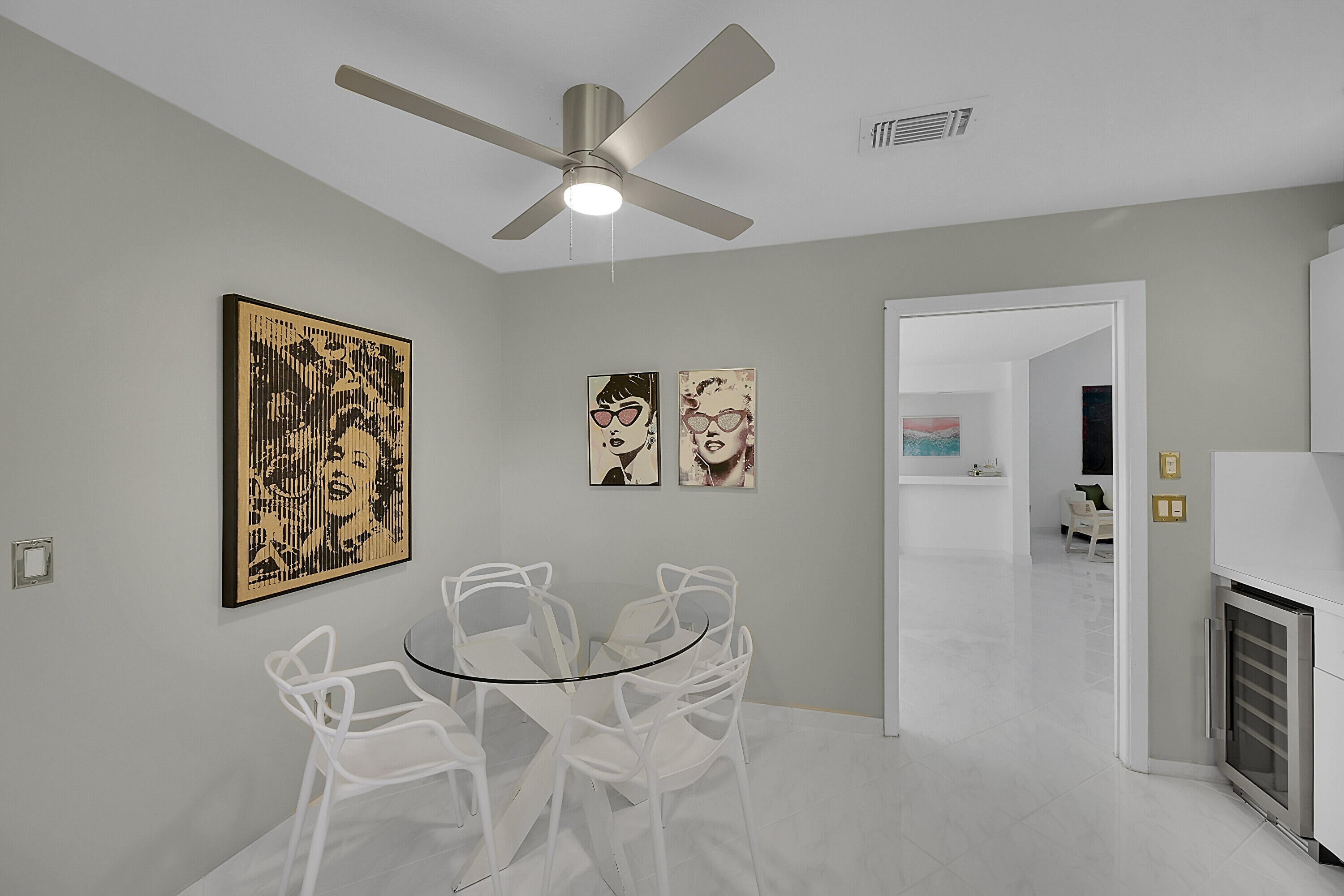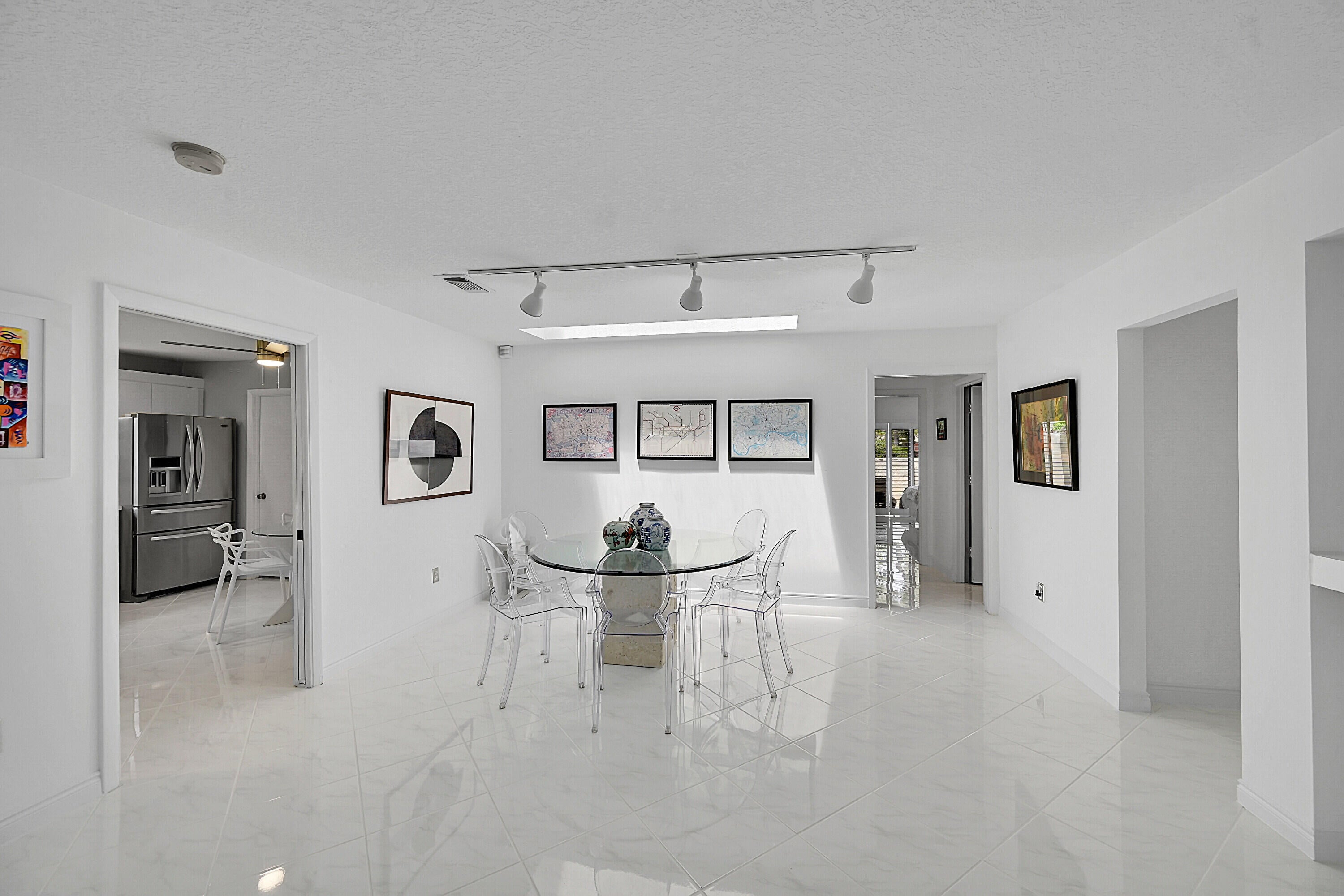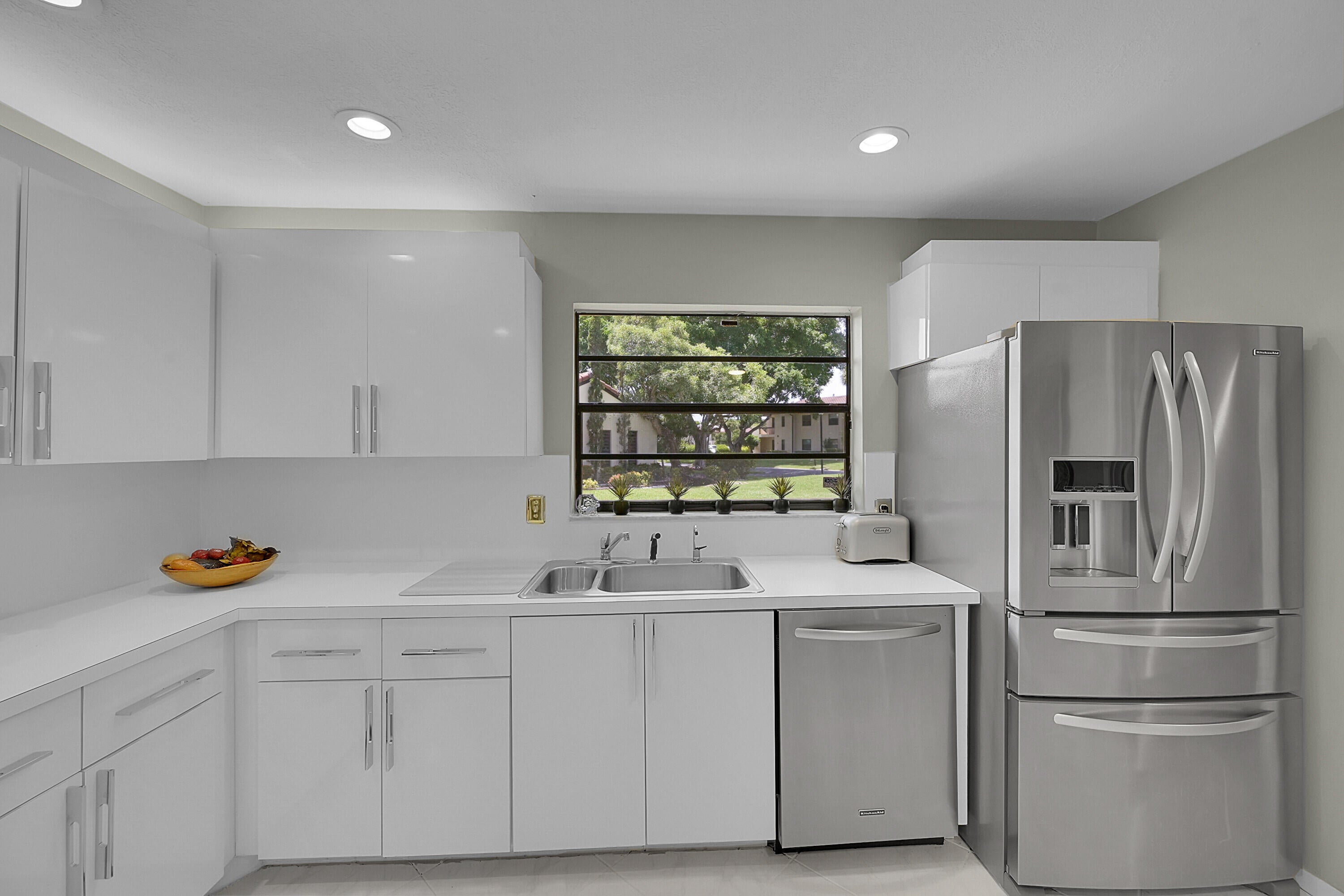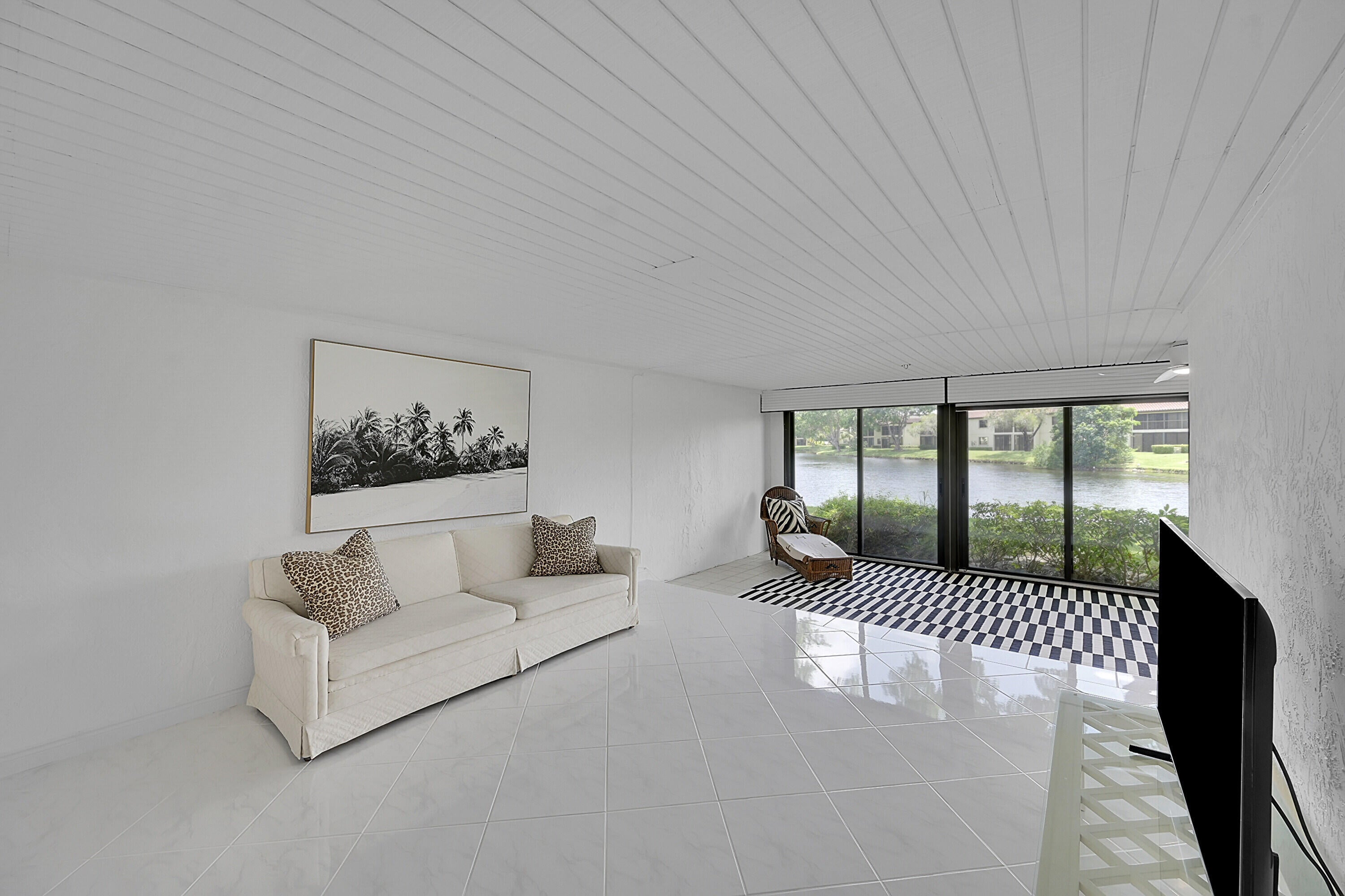 Elegant 3B/R 2 Bath villa. 2500 sq ft of living space. Lake view from a huge glass enclosed patio which can be used for office, 4th bedroom or entertainment space. This corner villa has extended driveway for several cars and a garage Villa is completely tiled with beautiful neutral tile and has been freshly painted and all new fans with remotes. New SS oven and microwave. All SS appliances and a wine cooler. Lots of closet space. Front loading washer and dryer in a big laundry room. Non mandatory club. New roof installed 2023 and has been paid for. Newer AC and hot water heater, Lovely community pool. Guard gate entry.