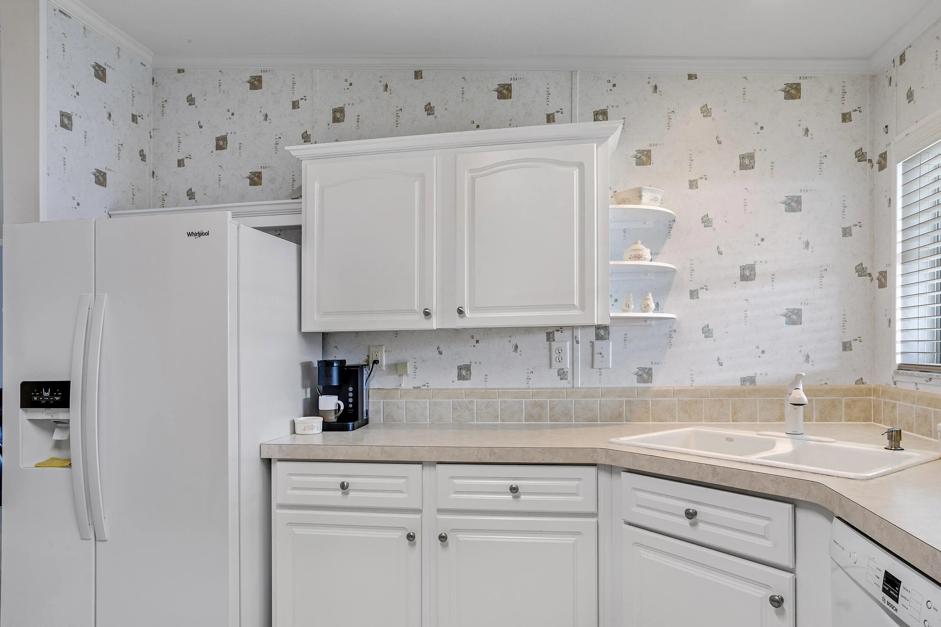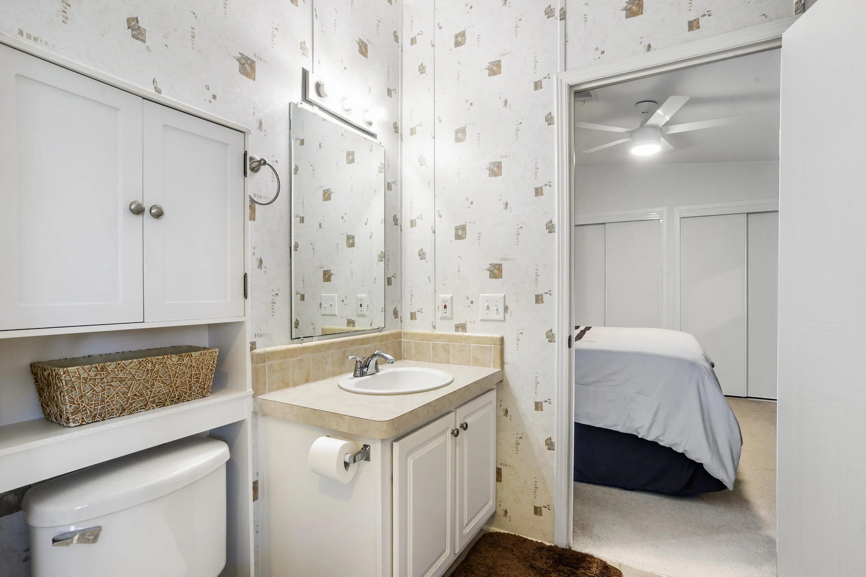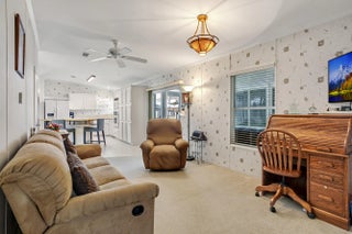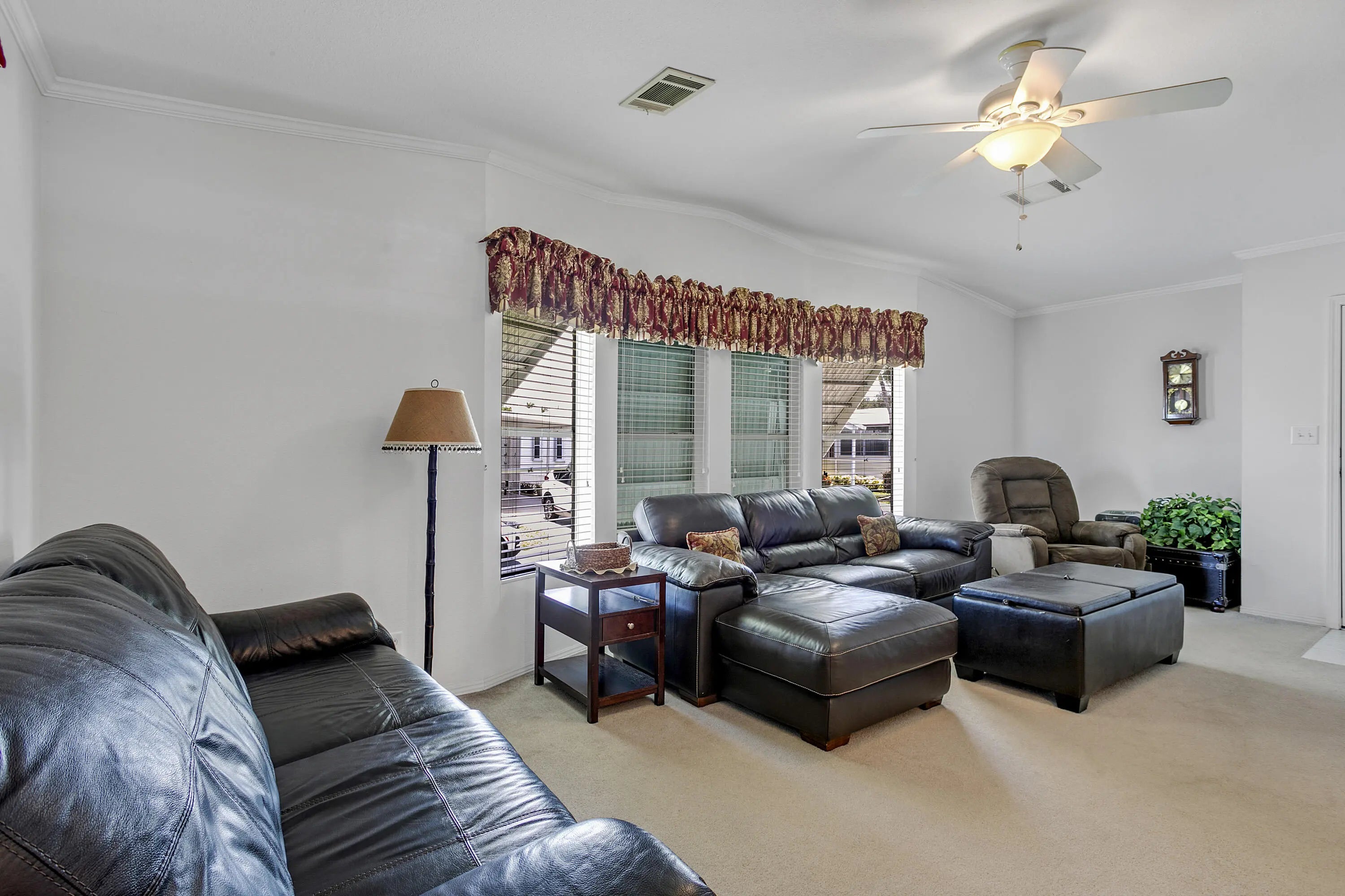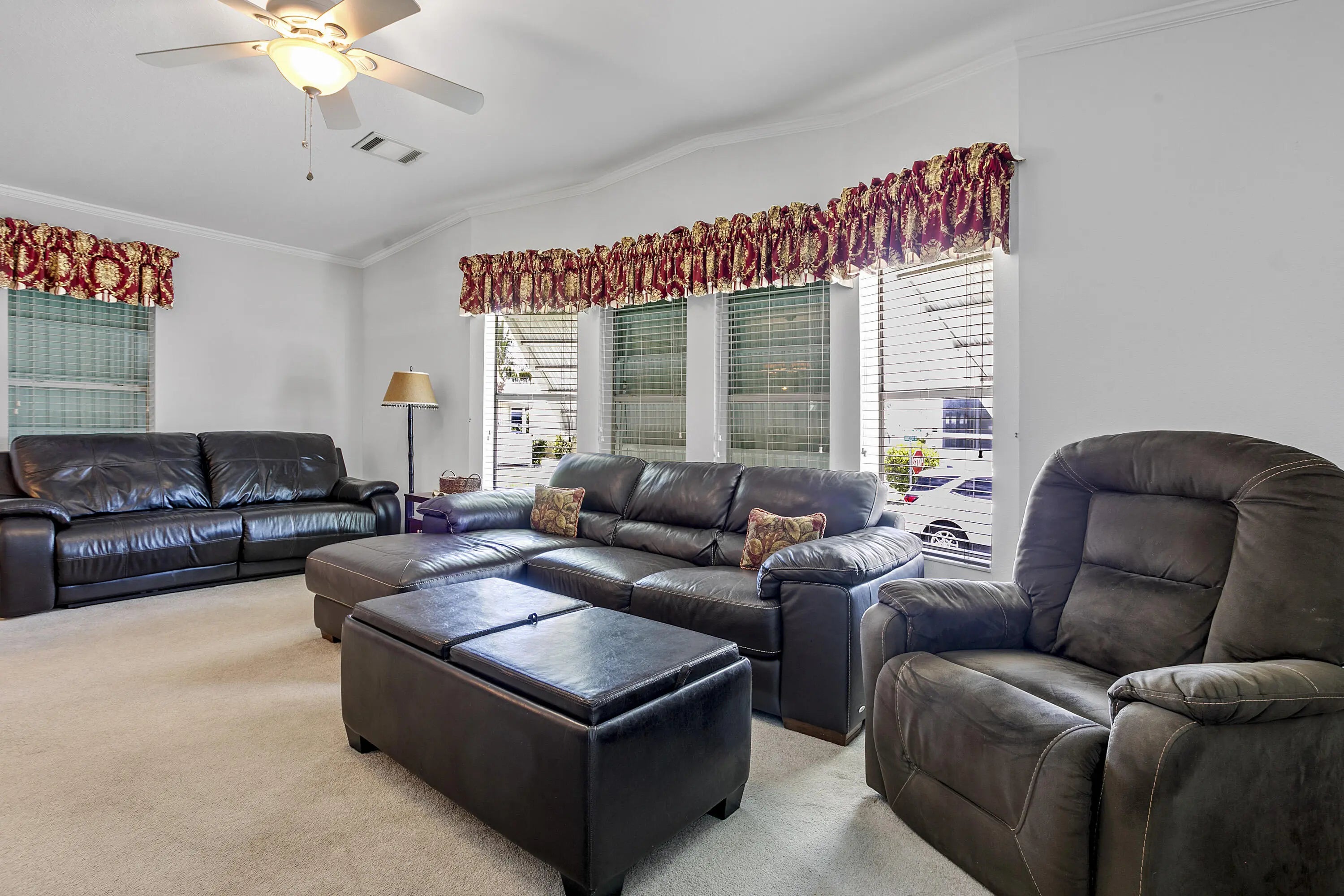 One of the largest 2 Bedroom, 2 Bathroom homes in this sought-after 55+ gated community! Ideally situated on a corner lot with only one neighbor, this spacious residence offers a Family Room, Living Room, Dining Room, and an Open Kitchen with a cooktop island and abundant cabinetry. Vaulted ceilings, interior laundry, and extra storage add to the appeal. The Guest Bedroom includes a Jack & Jill bath with a tub/shower combo. The expansive Main Bedroom features generous closet space and an ensuite with dual sinks and a step-in shower. Enjoy year-round comfort in the raised glass-enclosed patio, plus an attached shed/workshop. Impeccably maintained inside and out, with lush landscaping and charming flowers. Includes Drywall construction with 2x6 studs, a special seal on roof to extend life