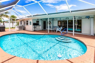NO HOA in East Boca Raton, this charming and fully updated 2-bedroom, 2-bath single-family home is ideally located east of US1, just minutes to beaches, shopping, and dining. This property has been beautifully renovated with marble flooring throughout, a stunning kitchen featuring quartzite countertops, white shaker cabinets, marble backsplash, and new appliances including a gas range. Roof (2023), A/C (2022).Enjoy outdoor living in the spacious, fully fenced backyard, private pool, landscaping, and room to park a boat or RV OR add on to the home!Whether you're looking for a full-time residence or a vacation retreat, this move-in ready home is updated, easy to maintain and allows for taking full advantage of the South Florida Lifestyle!