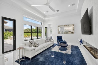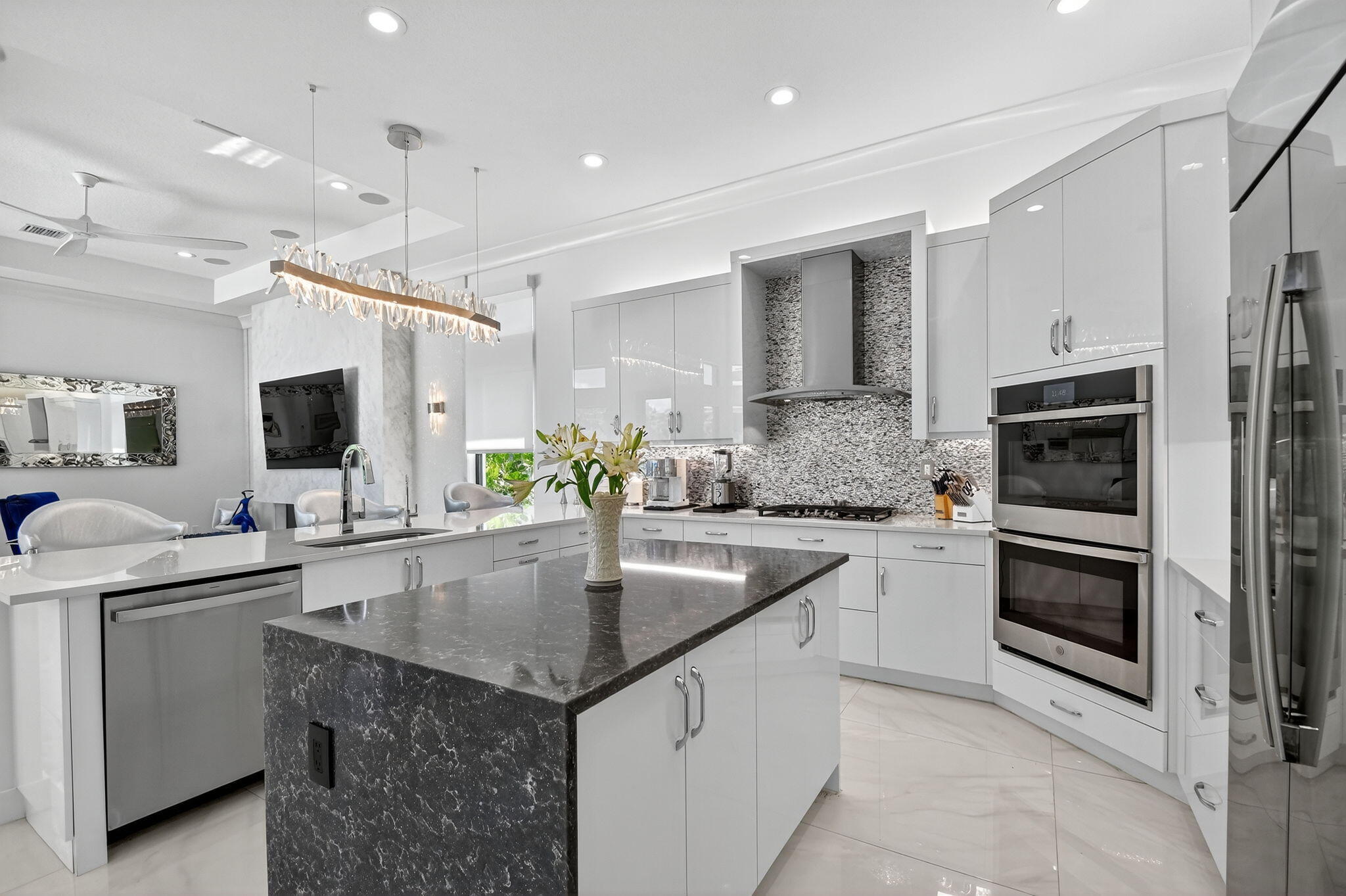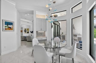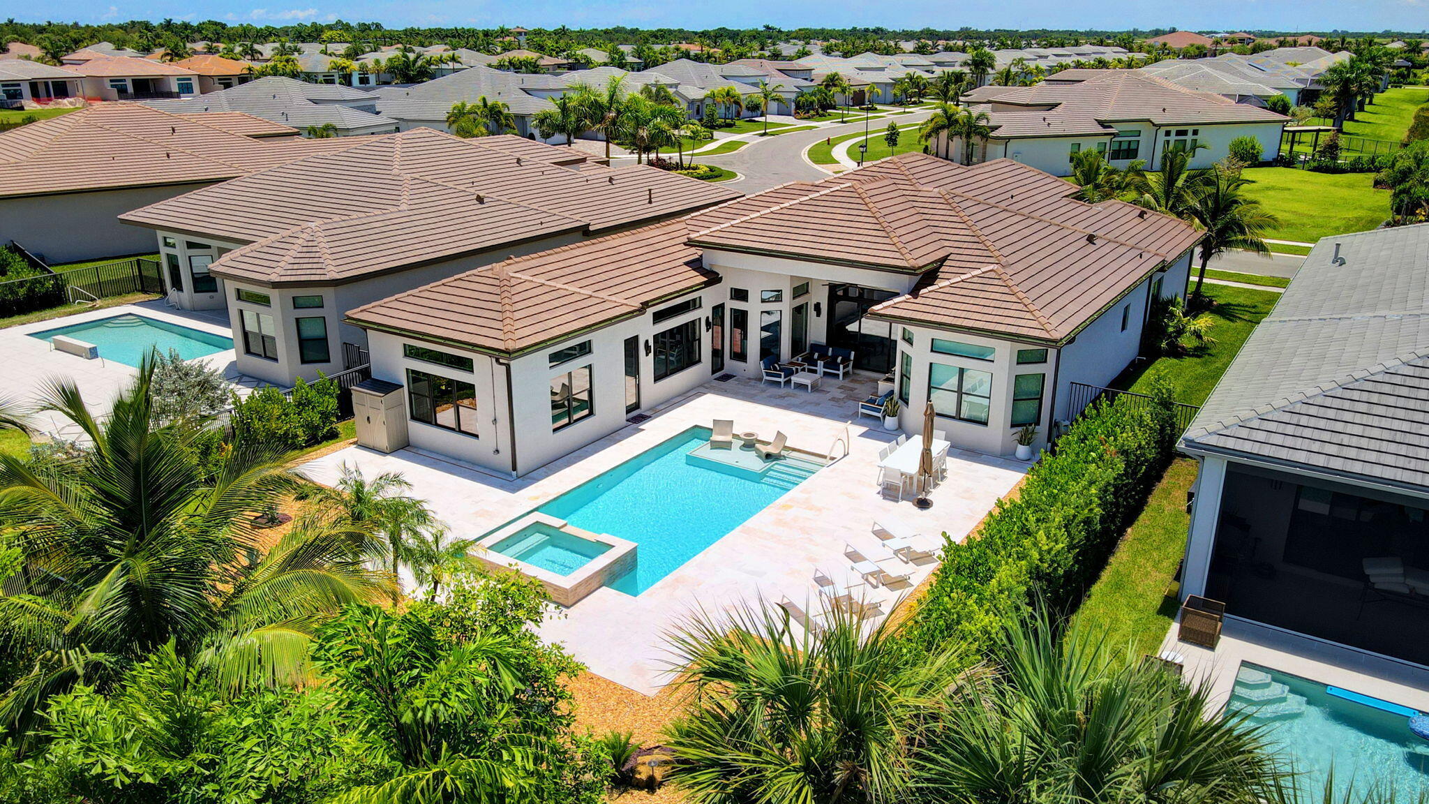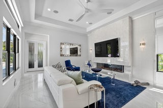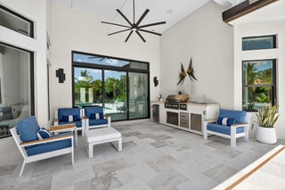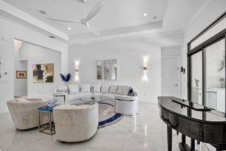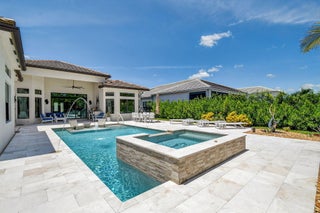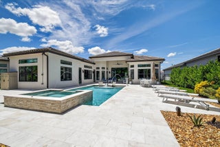 SENSATIONAL Must See! 4 Bedroom/4 Bath Designer Charleston Grande Crown model is a 3,277 sqft WOW HOME in the NEWEST COMPLETED 55+ Valencia Grand GLHomes Active community boasting INDOOR Pickleball courts, full tennis program, FULL restaurant, TONS of social clubs and fulltime activities director, natural gas cooktop, full service salon with massages, facials, manicures and MORE on site in this 44,000 sqft modern clubhouse! Live the Active country club lifestyle with NO EQUITY, NO ANNUAL DUES! SEE ATTACHED FEATURES LIST ON THIS NEARLY NEW GORGEOUS HOME -- the ONLY CROWN model with straight-in expanded 3-bay garage for easy drive-in. The backyard is like a PRIVATE boutique resort, landscaped - serene with ceiling speakers for your spa or music listening pleasure.As you enter the specialty-glass double doors you'll see full-view the magnificent pool and stone hot-tub spillover, soothing bubbler and 2 deck fountains. A wide lot, beige marble patio, your own private paradise! The pool has a rare 5-step entry for ease on knees and kids, an in-pool walking path, a swim lane featuring sandblasted marble deck and matching artisan handrail. Front of house feels open just off the cul de sac with no house directly across the street -- a rarity in these gated communities. House comes with Natural Gas for stovetop, outdoor grill so no propane tank inconveniences. Outdoor Kitchen has sink, side-burner, storage & minifridge. High tray ceilings throughout. Features include: 36'x36" white marble-like porcelain tiles, crown molding, soaring ceilings, mini-bar, marble electric fireplace focal wall unit, designer wallpaper, and DAZZLING name-brand lighting fixtures, Arctic White glossy modern cabinets with pullouts in kitchen and all bathrooms, Walk-in Pantry with pullouts, Quartz waterfall kitchen Island, Spectacular Natural Mother-of-Pearl Silver Minibrick backsplash. Designed for Easy Entertaining at Kitchen bar or in Formal Dining Room, Eat-In Kitchen, or Outdoor Patio. GE Profile appliances. Club Room converted to 4th bedroom/home gym/office with 2 closets and Specialty Glass 96" doors, Equipped with 5-zone Sonos System throughout home inc. Surround Sound Media in Family Room. Upgraded shimmering Blue Pearl Granite Countertops in Bathrooms, Listello accent tiles, Undermount Tub with Granite Counter (for Safe & Easy Sitting on side and for entry into tub), and Framed Mirrors throughout. All Toto toilets. Crystal-like Shower handle in Main bathroom. Motorized Shades throughout. Expanded and finished 3-car garage with straight-in entry, storage cabinets and EV charger. Whole House RainSoft Water Purification System. Closet Factory systems in Main Bedroom and Garage. Home Warranty and Transferable CAC Service Contract. House vibrates incredible aura DAY AND NIGHT with natural light, magnificent chandeliers, sconces, pendants and outdoor lighting. Lighting fixture top brands are Swarovski, Allegri, Eurofase, Dale Tiffany, Modern Forms and others. The roof has been specially sealed to reduce color fade and prolong roof life. This model features a spacious laundry room and a large hidden storage room. Walkable and quick drive, closest section to clubhouse and mailboxes!!! 3-bay garage plus widened and long driveway accommodates 9 cars. Welcome to Your Dream Home with a Country Club Lifestyle without the fees! Click link to see upcoming CLUB ACTIVITIES at VALENCIA GRAND! https://mailchi.mp/grsmgt/valencia-grand-clubs-6750548?e=03e2d101ad