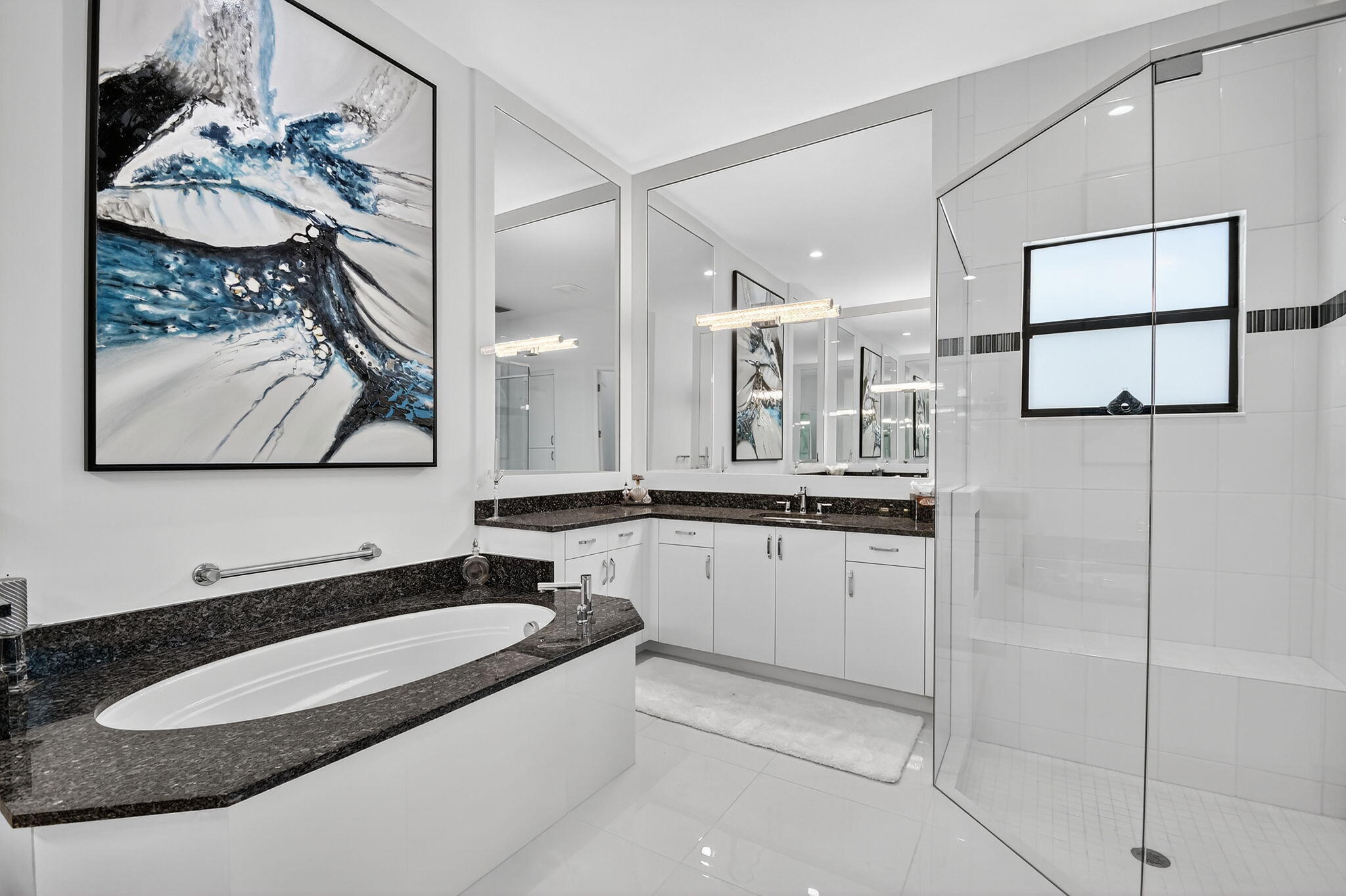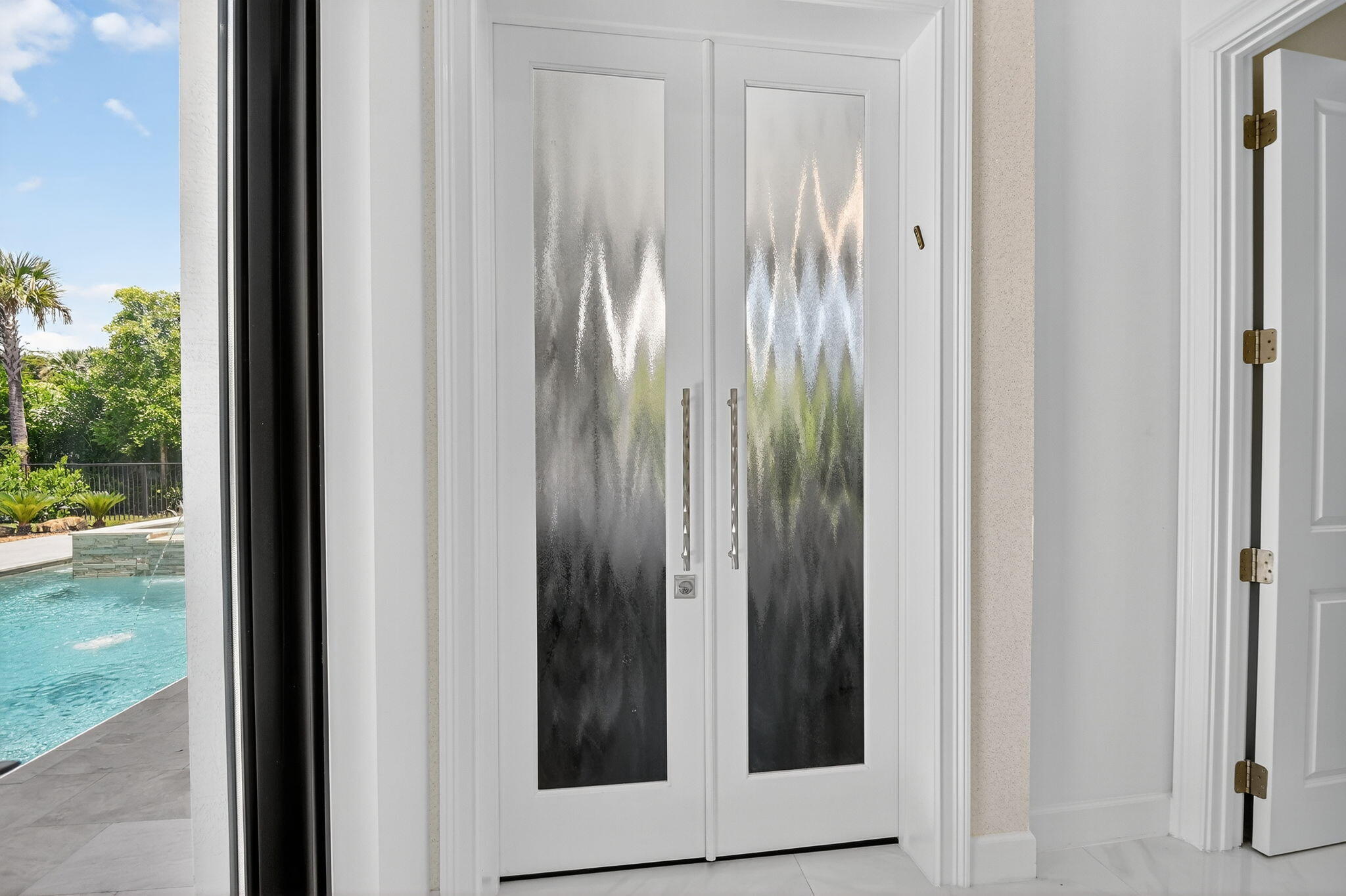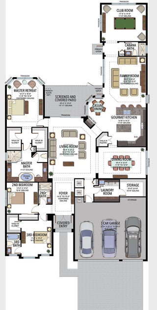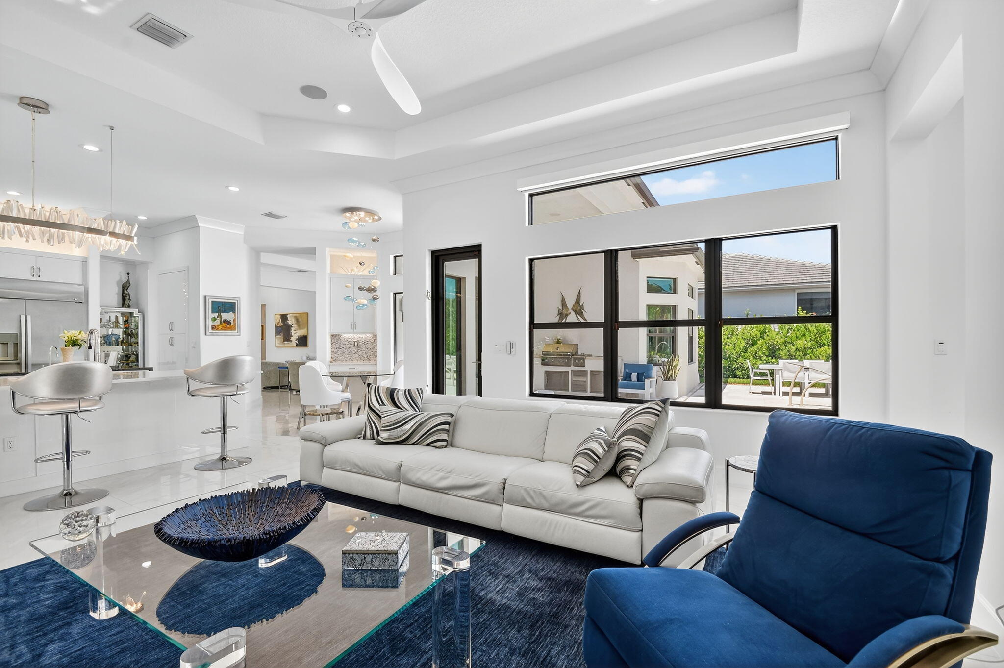 SENSATIONAL Must See! 4 Bedroom/4 Bath Designer Charleston Grande Crown model is a 3,277 sqft WOW HOME in the NEWEST COMPLETED 55+ Valencia Grand GLHomes Active community boasting INDOOR Pickleball courts, full tennis program, FULL restaurant, TONS of social clubs and fulltime activities director, natural gas cooktop, full service salon with massages, facials, manicures and MORE on site in this 44,000 sqft modern clubhouse! Live the Active country club lifestyle with NO EQUITY, NO ANNUAL DUES! SEE ATTACHED FEATURES LIST ON THIS NEARLY NEW GORGEOUS HOME -- the ONLY CROWN model with straight-in expanded 3-bay garage for easy drive-in. The backyard is like a PRIVATE boutique resort, landscaped - serene with ceiling speakers for your spa or music listening pleasure.As you enter the specialty-glass double doors you'll see full-view the magnificent pool and stone hot-tub spillover, soothing bubbler and 2 deck fountains. A wide lot, beige marble patio, your own private paradise! The pool has a rare 5-step entry for ease on knees and kids, an in-pool walking path, a swim lane featuring sandblasted marble deck and matching artisan handrail. Front of house feels open just off the cul de sac with no house directly across the street -- a rarity in these gated communities. House comes with Natural Gas for stovetop, outdoor grill so no propane tank inconveniences. Outdoor Kitchen has sink, side-burner, storage & minifridge. High tray ceilings throughout. Features include: 36'x36" white marble-like porcelain tiles, crown molding, soaring ceilings, mini-bar, marble electric fireplace focal wall unit, designer wallpaper, and DAZZLING name-brand lighting fixtures, Arctic White glossy modern cabinets with pullouts in kitchen and all bathrooms, Walk-in Pantry with pullouts, Quartz waterfall kitchen Island, Spectacular Natural Mother-of-Pearl Silver Minibrick backsplash. Designed for Easy Entertaining at Kitchen bar or in Formal Dining Room, Eat-In Kitchen, or Outdoor Patio. GE Profile appliances. Club Room converted to 4th bedroom/home gym/office with 2 closets and Specialty Glass 96" doors, Equipped with 5-zone Sonos System throughout home inc. Surround Sound Media in Family Room. Upgraded shimmering Blue Pearl Granite Countertops in Bathrooms, Listello accent tiles, Undermount Tub with Granite Counter (for Safe & Easy Sitting on side and for entry into tub), and Framed Mirrors throughout. All Toto toilets. Crystal-like Shower handle in Main bathroom. Motorized Shades throughout. Expanded and finished 3-car garage with straight-in entry, storage cabinets and EV charger. Whole House RainSoft Water Purification System. Closet Factory systems in Main Bedroom and Garage. Home Warranty and Transferable CAC Service Contract. House vibrates incredible aura DAY AND NIGHT with natural light, magnificent chandeliers, sconces, pendants and outdoor lighting. Lighting fixture top brands are Swarovski, Allegri, Eurofase, Dale Tiffany, Modern Forms and others. The roof has been specially sealed to reduce color fade and prolong roof life. This model features a spacious laundry room and a large hidden storage room. Walkable and quick drive, closest section to clubhouse and mailboxes!!! 3-bay garage plus widened and long driveway accommodates 9 cars. Welcome to Your Dream Home with a Country Club Lifestyle without the fees! Click link to see upcoming CLUB ACTIVITIES at VALENCIA GRAND! https://mailchi.mp/grsmgt/valencia-grand-clubs-6750548?e=03e2d101ad
