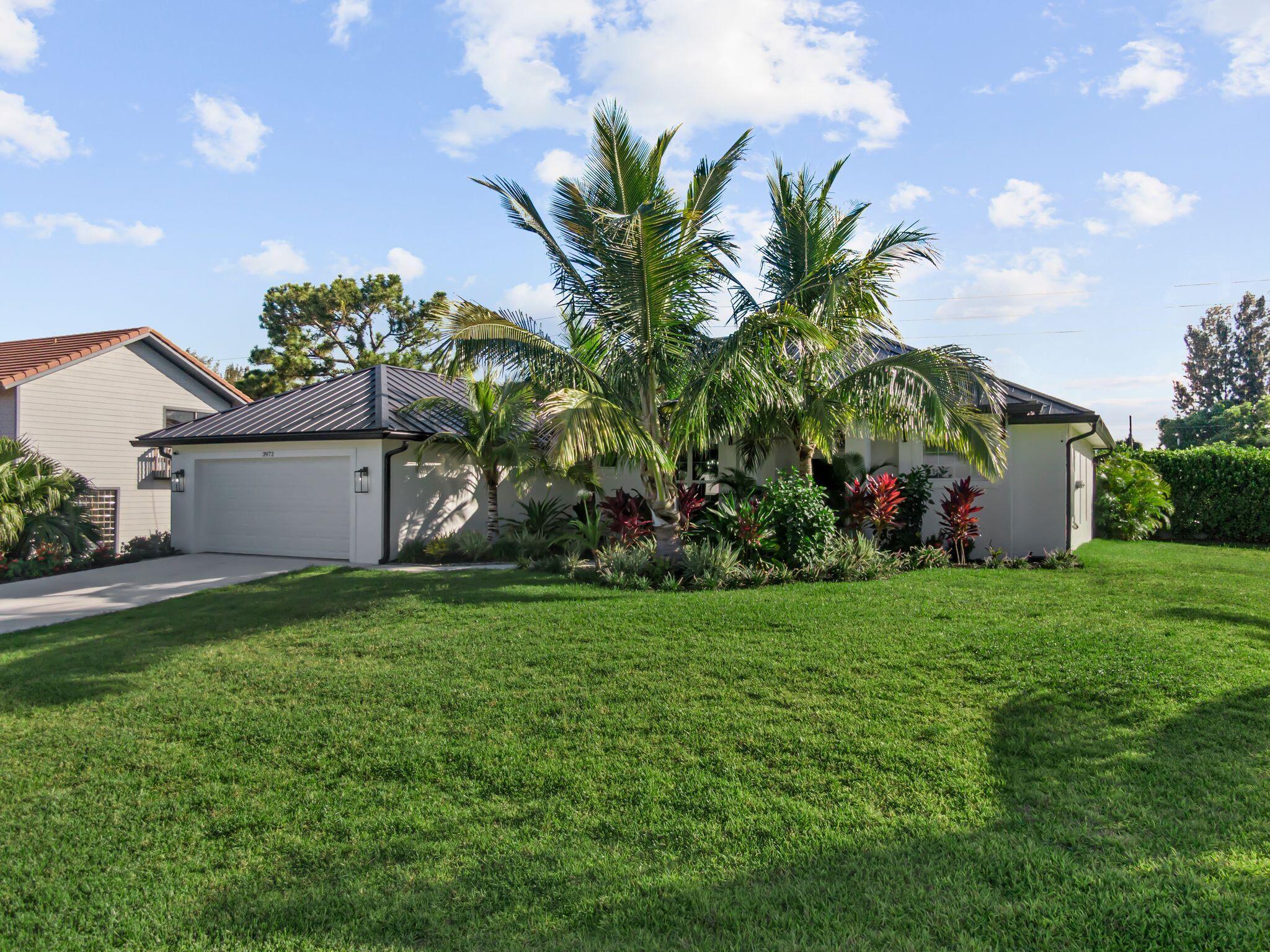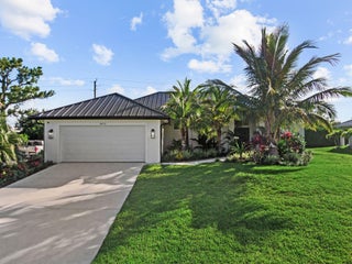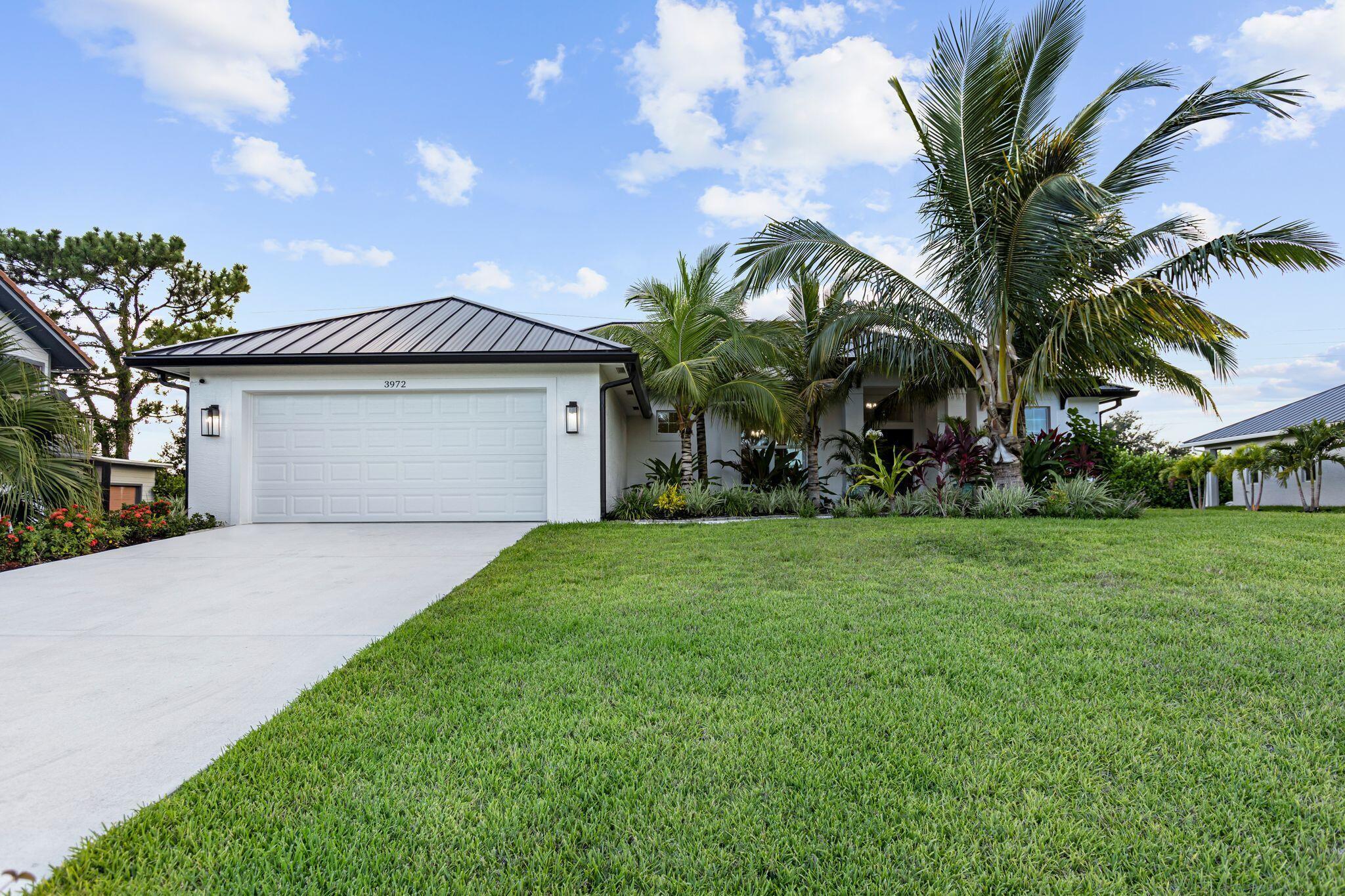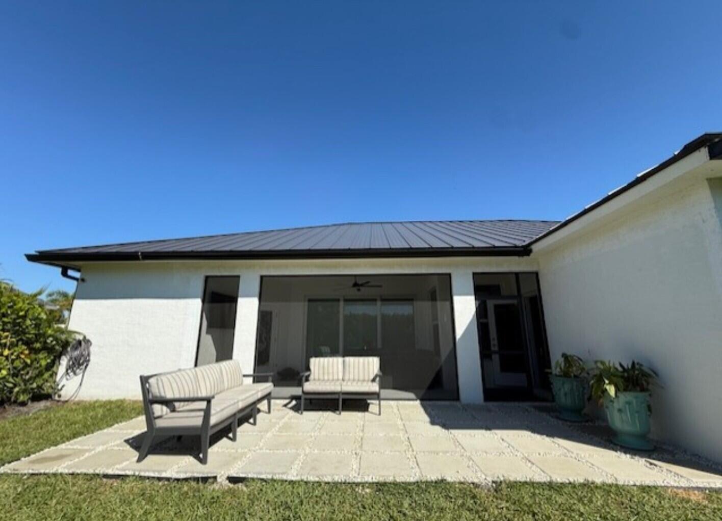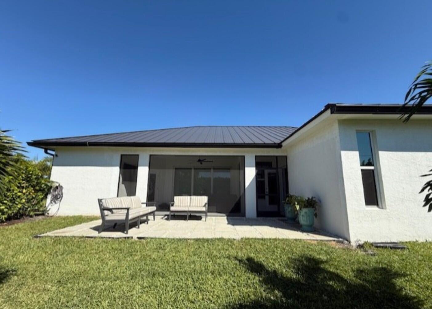 Built in 2022, this Concrete Block home with Metal Roof & Impact Windows, has 4 nice sized Bedrooms, 2.1 Bathrooms, and is ready for you to movie-in and relax! Home features include- a split floor plan, open living area, granite kitchen countertops with SS appliances, private backyard with added screened-in porch and an extended porch and pavers seating area, new landscaping and lighting to both the front and back yard-including added palm and fruit trees, new gutters added, custom interior light fixtures, and Hunter Douglass window treatments throughout. The primary bathroom has a separate soaker tub for you to make use of after a long day of enjoying all of Stuart Yacht and Country Club's Amenities! This gated, all ages welcome-community offers a private golf course, community pool,gym, yacht club, dog park, tennis & pickle ball, with a full-service club house. Pets welcome! Low monthly HOA, with optional club memberships. Easy to show!