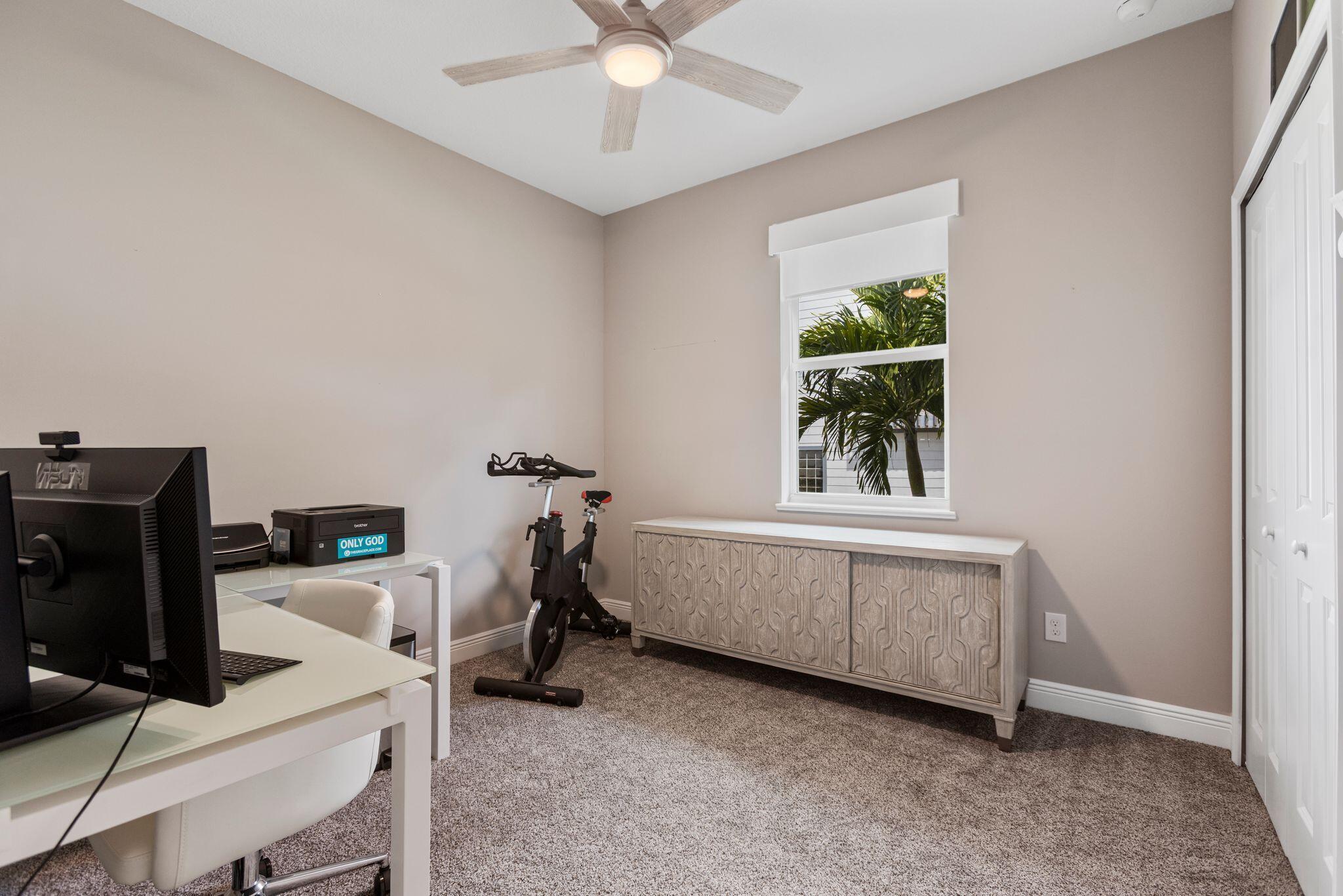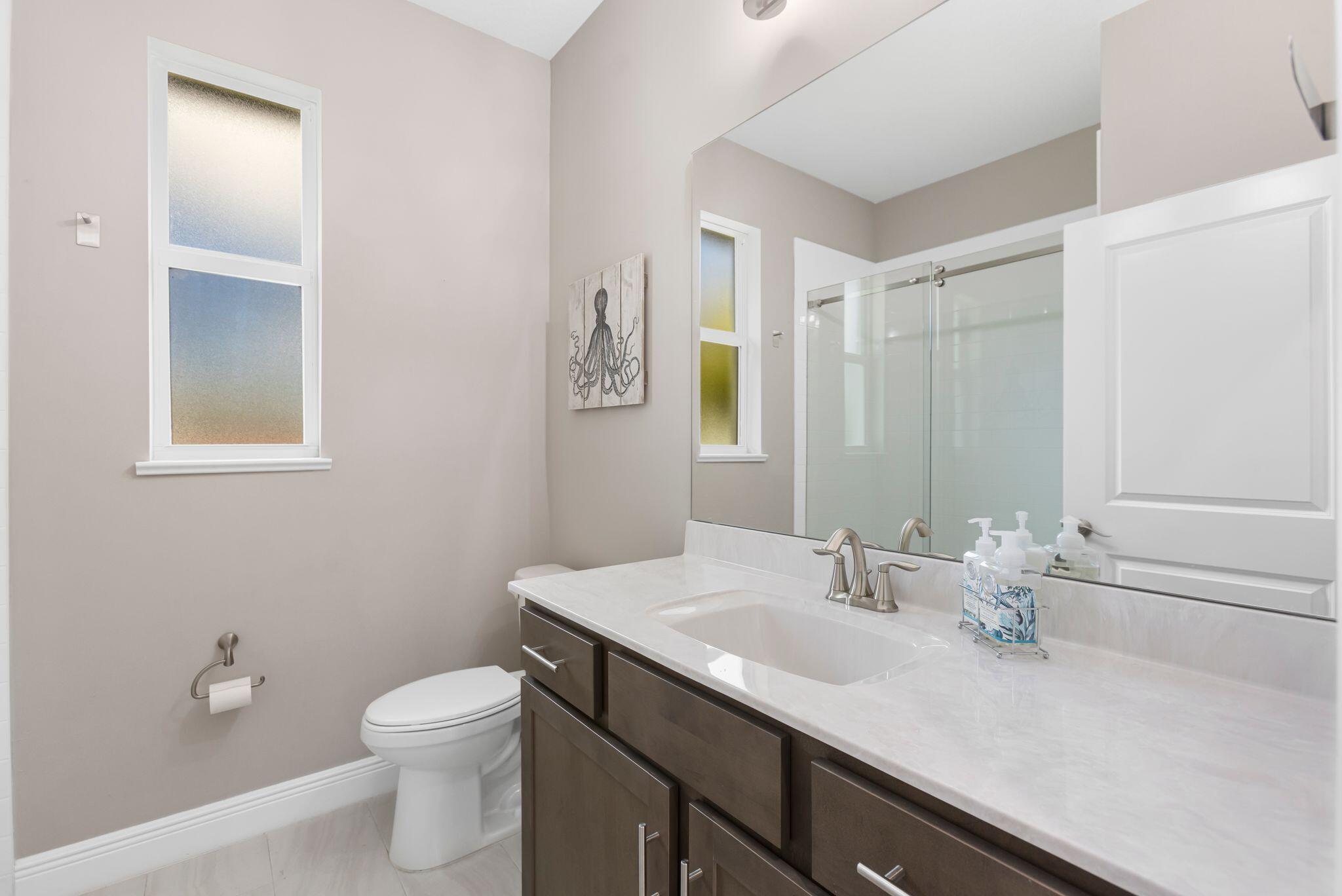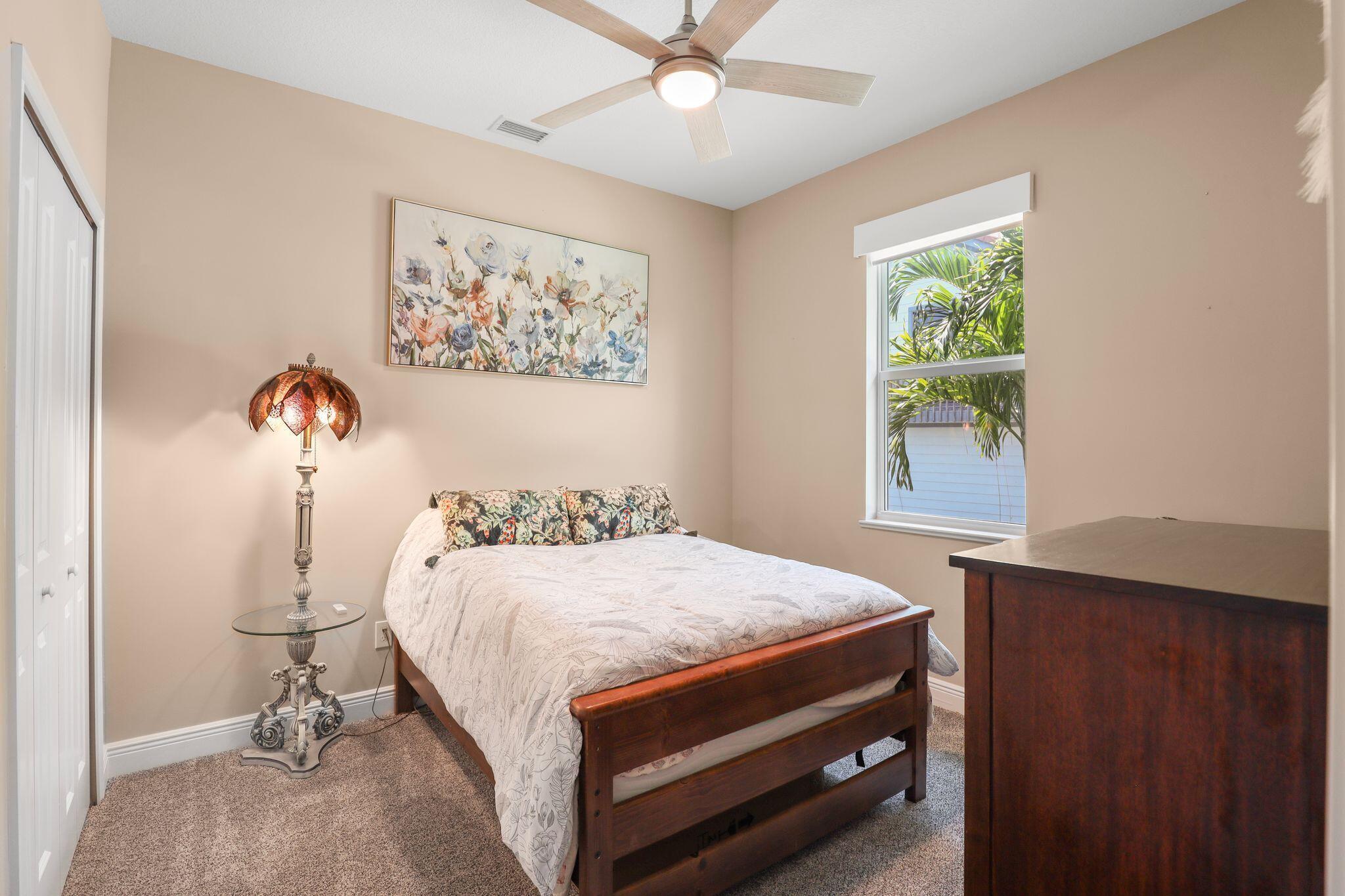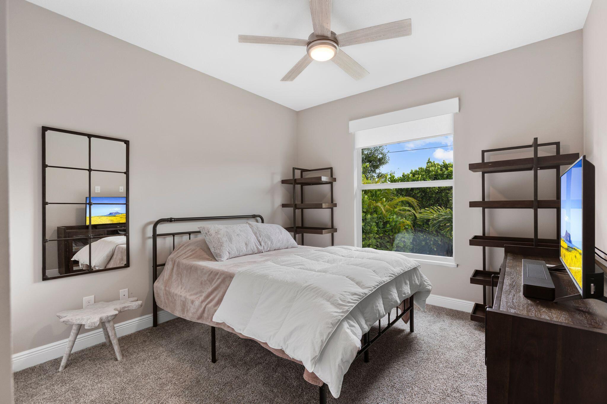 Built in 2022, this Concrete Block home with Metal Roof & Impact Windows, has 4 nice sized Bedrooms, 2.1 Bathrooms, and is ready for you to movie-in and relax! Home features include- a split floor plan, open living area, granite kitchen countertops with SS appliances, private backyard with added screened-in porch and an extended porch and pavers seating area, new landscaping and lighting to both the front and back yard-including added palm and fruit trees, new gutters added, custom interior light fixtures, and Hunter Douglass window treatments throughout. The primary bathroom has a separate soaker tub for you to make use of after a long day of enjoying all of Stuart Yacht and Country Club's Amenities! This gated, all ages welcome-community offers a private golf course, community pool,gym, yacht club, dog park, tennis & pickle ball, with a full-service club house. Pets welcome! Low monthly HOA, with optional club memberships. Easy to show!