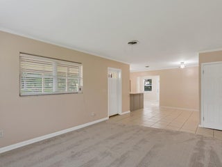 This captivating home is a must see! Join the community at this fully manicured huge lot + home with an extended driveway, huge covered porch and fenced in backyard all backing up to a polished park and stones throw from local school. Enter the home to reveal a well arranged floor plan with tile floors that has spacious living room, remodled kitchen, dining and closed in patio all under air. 3 spacious bedrooms 2 baths with new vanities, new roof 2025, newer a.c, updated electrical, repiped, new water heater, new window treatments, fresh paint all cleaned and vacant. 10 mins to the beach!
