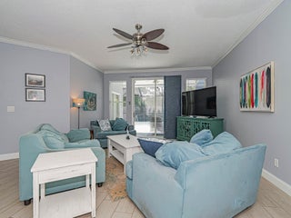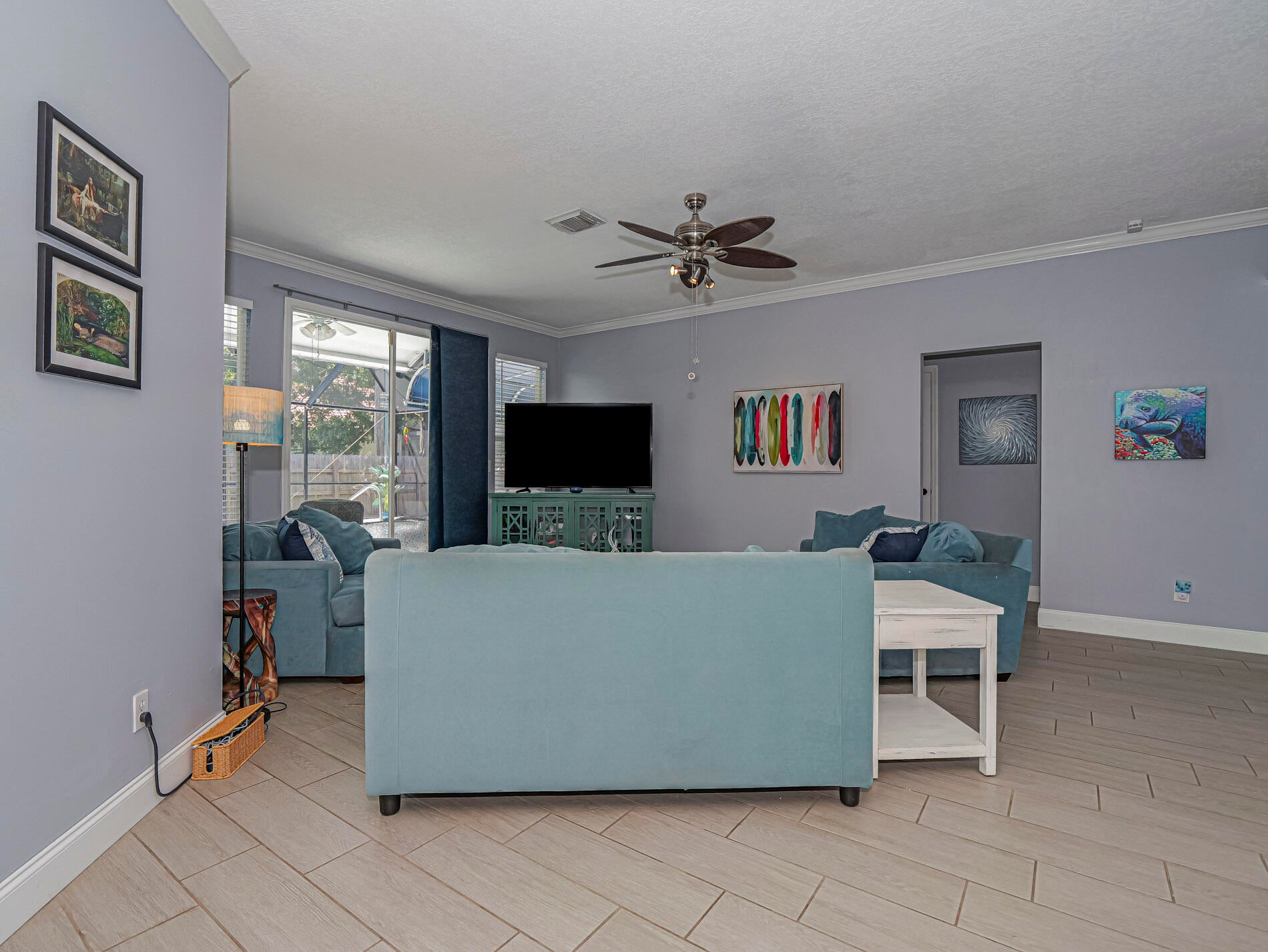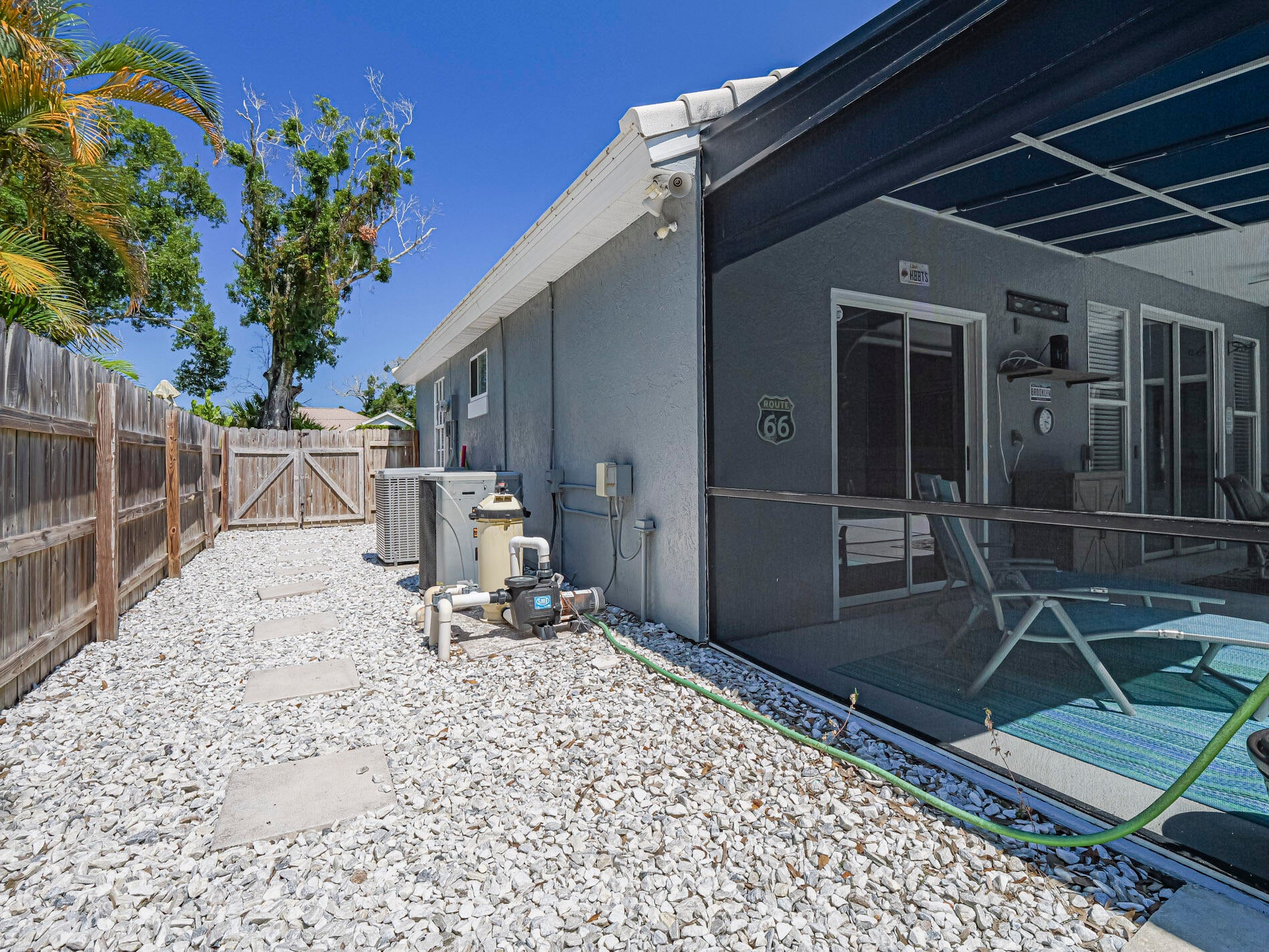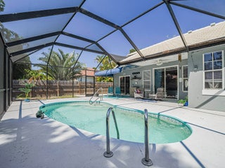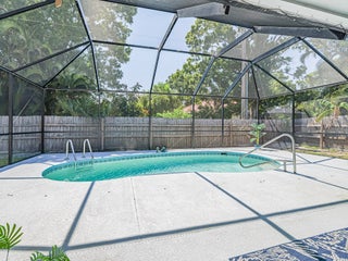 NO HOA -- own this as investment home or live in it! Why wait? Just impeccable! Coastal delight with newer interior paint, tile floors throughout, volume ceiling in main home. Split BR plan --very large primary suite with newer tiled bath w/soaker tub, 2 other bedrooms share newer full tiled bath. Kitchen has walk in pantry, newer appliances, large 2 car garage, Barrel style cement roof. So many updates! Newer pool heater and hot water heater, newer motor in a/c. Quiet street and no HOA fees.