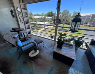 Live the easy life in Palm Royal, a peaceful 55+ community in the heart of Boca Raton. This fully furnished 2 bed, 2 bath condo offers a customized interior with a BRAND NEW Air Conditioner, new LG appliances, upgraded flooring, & modern kitchen & bathroom renovations. Design details include dual sliding balcony doors that recess into the wall to seamlessly expand the living space, a beautifully finished epoxy porch, & a custom-built bar complete with wine fridge. 2 beach cruiser bikes are included, ideal for a quick 1 mile ride to the beach, Mizner Park, Royal Palm Place, & a variety of shops & restaurants. The community is currently undergoing comprehensive 30 year renovations, including new roofs, electrical upgrades, fresh exterior paint, repaved asphalt, & pool improvements.