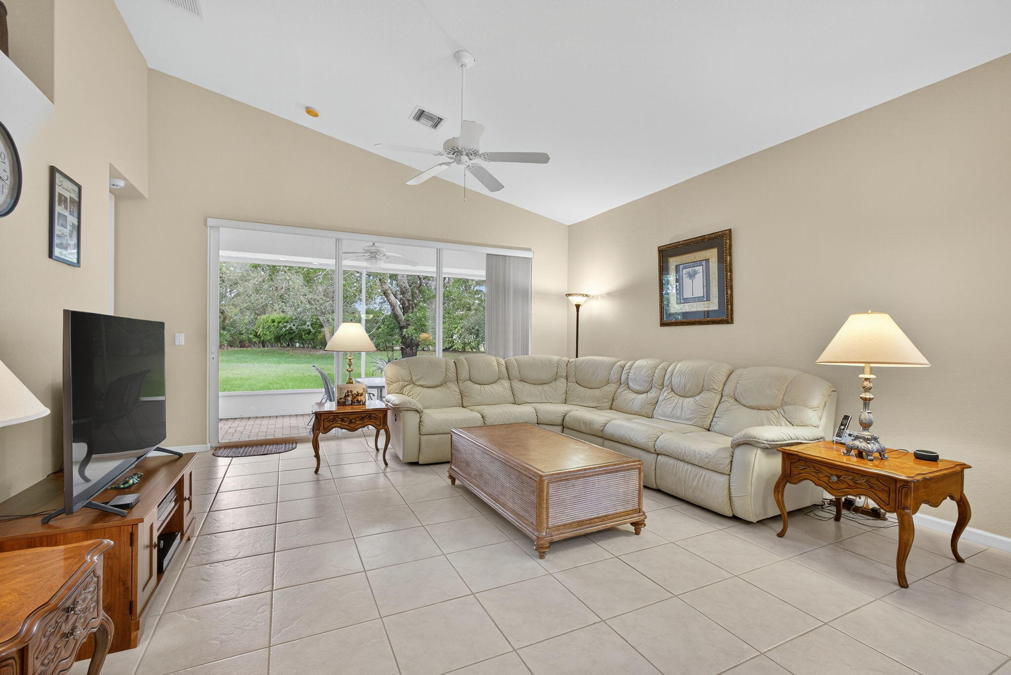 Welcome to this amazing 55+ very active adult community. This three beds, two baths, two car garage home has been lovingly cared for. Located on a large lot overlooking a nature reserve that offers privacy and serenity to enjoy from the large extended screened in patio. This home features a eat-in kitchen, a large dining/living room with volume ceilings. The primary bedroom offers a walk-in closet, large bathroom with a separate tub and shower. Two additional bedrooms with laminate flooring and volume ceilings. HOA fee includes cable - high speed internet - ADT monitoring- all lawn maintenance - 24-hour manned gate