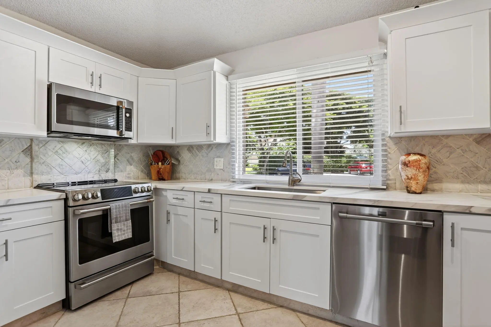WATERFRONT LUXURY! Rarely available 3BR/3BA Corner Townhome w/garage on a Premium Lakefront lot in prestigious Cortina at Boca Pointe. Renovated with elegance and style--featuring an open-concept kitchen with custom quartz countertops, white shaker cabinetry, GE Cafe appliances, wonderful breakfast nook, impact windows throughout & an enclosed A/C lanai with sweeping water views. Designer-updated baths, new large-capacity W/D, Freshly epoxied garage floor. Immaculately maintained with a neutral palette to suit any decor. Select furnishings negotiable. Manned- gated community in prime central Boca near top schools, fine dining, shoppes, beaches, more! Walk to Community Pool. Sought after Boca Pointe offers an Optional club membership available. DON'T MISS! Schedule your Private Tour Today!