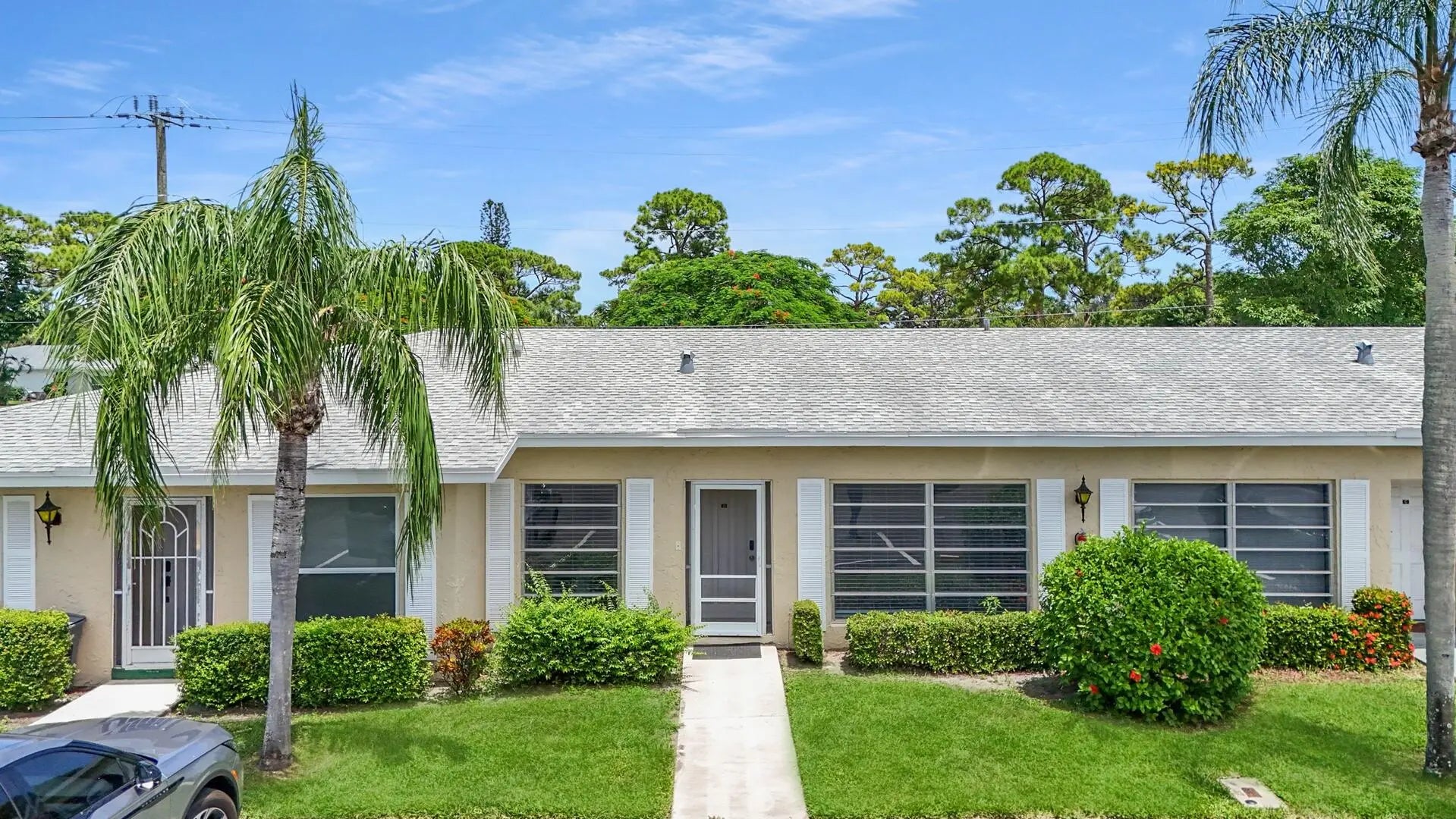 Furnished 2-bedroom, 2-bath villa in sought-after Palm Greens! This charming home features a bright and spacious living room, dedicated dining area, and easy-care laminate flooring throughout. The kitchen offers white cabinetry, a cozy breakfast nook, and a convenient pass-through to the dining area. Enjoy indoor-outdoor living on the enclosed patio, perfect for relaxing or entertaining. Filled with natural light and thoughtfully furnished, this villa offers comfort and convenience in a vibrant 55+ community.