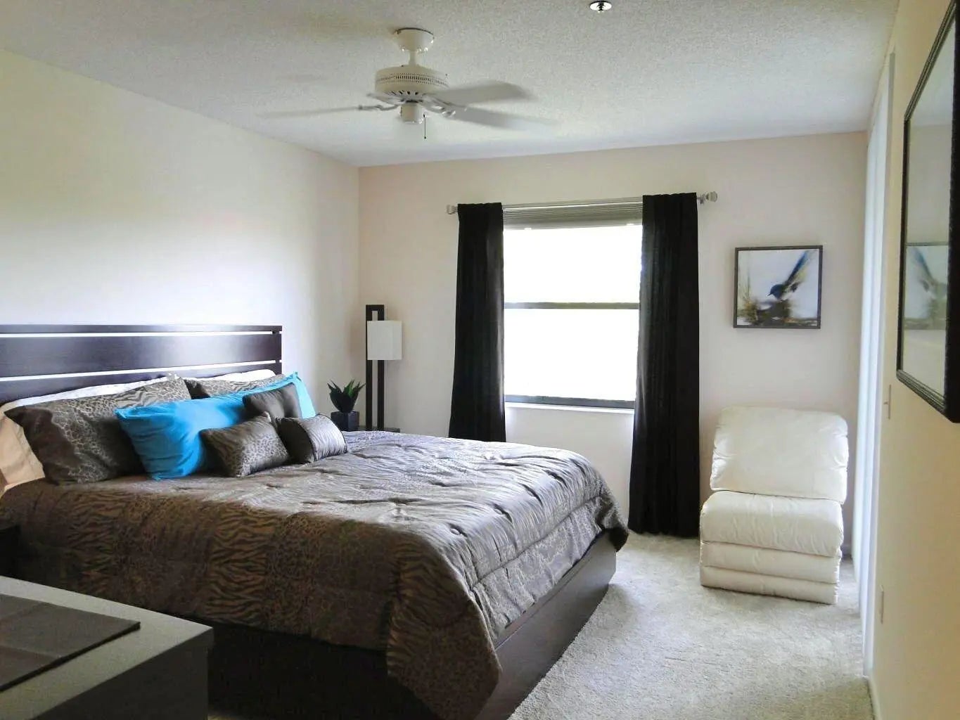 $5,000 FURNITURE CREDIT OFFERED TO BUYER WITH PURCHASE! EXPERIENCE THIS STUNNINGLY AFFORDABLE WATER VIEW 3BR/2BA condo with elevator access in the all-ages gated community of resort-style Platina! Enjoy vaulted ceilings ONLY AVAILABLE ON TOP FLOOR for a spacious feel, a window-enclosed balcony, large kitchen with stainless appliances, eat-in area, and a washer/dryer inside - with ALL TILE FLOORS. The primary suite features a walk-in closet and en-suite bath. The enclosed balcony and all 3 bedrooms have views overlooking the water. Dues include water, sewer, cable (DirecTV), and internet. The community offers 3 on-premises pools, tennis courts, pickleball, shuffleboard, and a modern clubhouse with a cafe open for breakfast and lunch. An unbeatable price for this Florida gem.