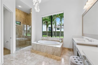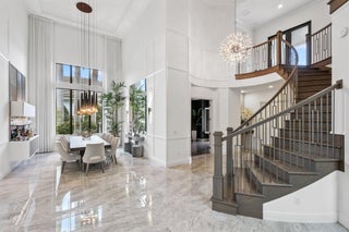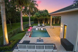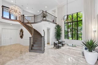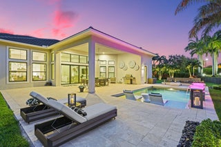 Introducing the Callahan Model on a rare XL pie-shaped 17,468sf lot in Royal Palm Polo. A beautifully appointed 5 bedroom, 5.1 bath home with an office and loft. Situated on a quiet cul-de-sac, this home rests on one of the largest lots in the community, offering a spacious fenced yard and a beautiful pool, perfect for year-round enjoyment.Upon entry, you are welcomed by a dramatic two-story foyer with soaring 24-foot ceilings. The gourmet kitchen is equipped with top-of-the-line Wolf and Sub-Zero appliances, a gas cooktop, and enjoys picturesque views of the pool and outdoor living area. A custom wine display adds a sophisticated touch to the main living space.The first floor features a luxurious primary suite, a private guest bedroom, and a dedicatedoffice, ideal for today's lifestyle. Upstairs, you'll find three additional en-suite bedrooms and a spacious loft. The outdoor area is a private retreat, offering ample green space and a thoughtfully designed layout for entertaining or relaxing.
