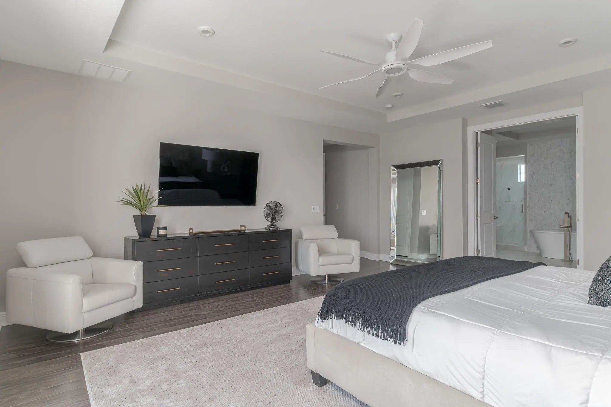 A SANCTUARY - UNPARALLELED COASTAL LIFESTYLE WITH DEDICATED MARINA SLIP FOR EACH HOMEOWNER Just Reduced $75,000. Perched over 30 feet high on a bluff with sweeping views of the St. Lucie River and year-round breezes, this stunning custom CBS home with a classic tile roof is the pinnacle of a rare blend of contemporary comfort and refined luxury waterfront living. Situated at the end of a quiet cul-de-sac in the exclusive waterfront gated community of Langford Landing, this 2021-built residence offers 5 bedrooms and 5.5 baths spanning approximately 4,300 square feet of thoughtfully designed living space on a beautifully landscaped 0.35-acre lot with a beautiful preserve behind the fenced yard.The 4 spacious guest bedrooms, (SEE SUPPLEMENT)