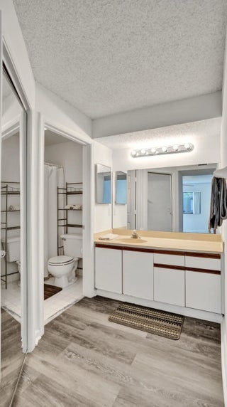 Corner Unit in gated complex. South Lake is a hidden gem in the heart of Boynton Beach. Kitchen has updated cabinets, SS appliances, undermount sink and Granite counters. Entire unit fully repainted, new wood style floors in both bedrooms, garage floor just repainted with flake finish. Walk in closets in both bedrooms, huge master bedroom, fully screened patio. 1 car garage with washer and dyer. 1 attached Garage parking space and 1 assigned driveway space in front of the garage. Additional parking in community lot. HOA pays insurance, cable, internet, management fees and common area maintenance. Community also offers tennis courts, pool, clubhouse, picnic area and a full gym. Schedule your showing today, priced to SELL!