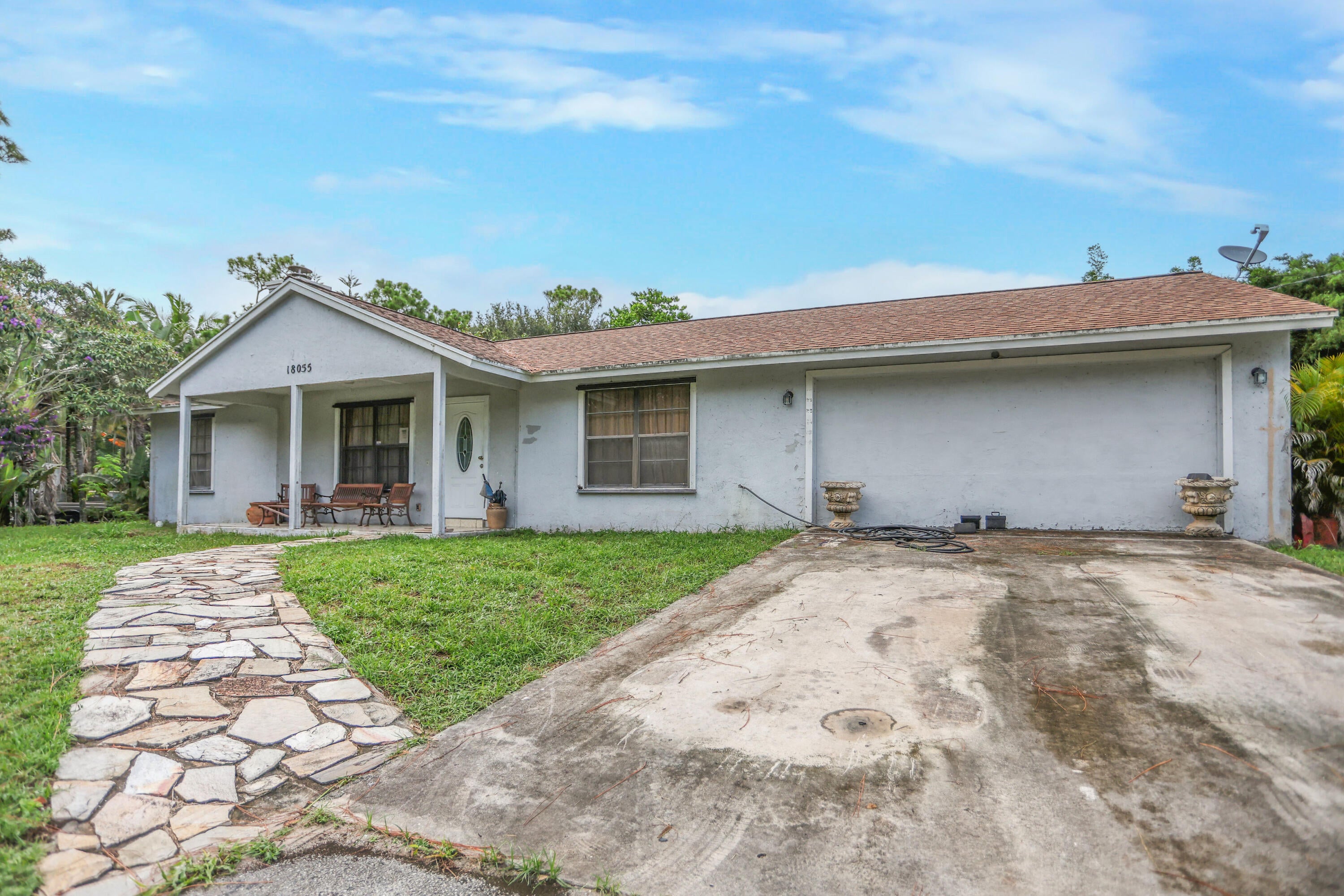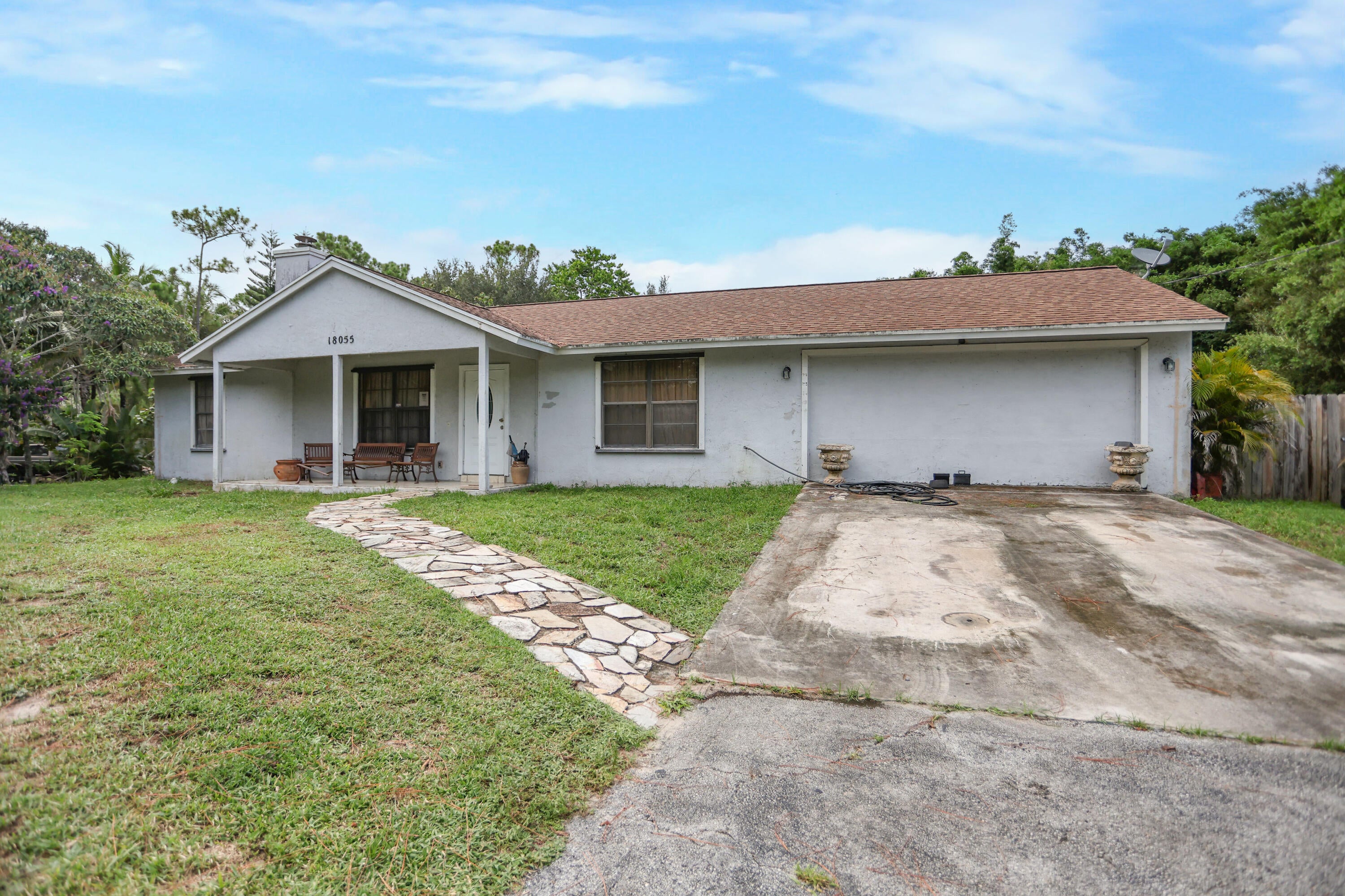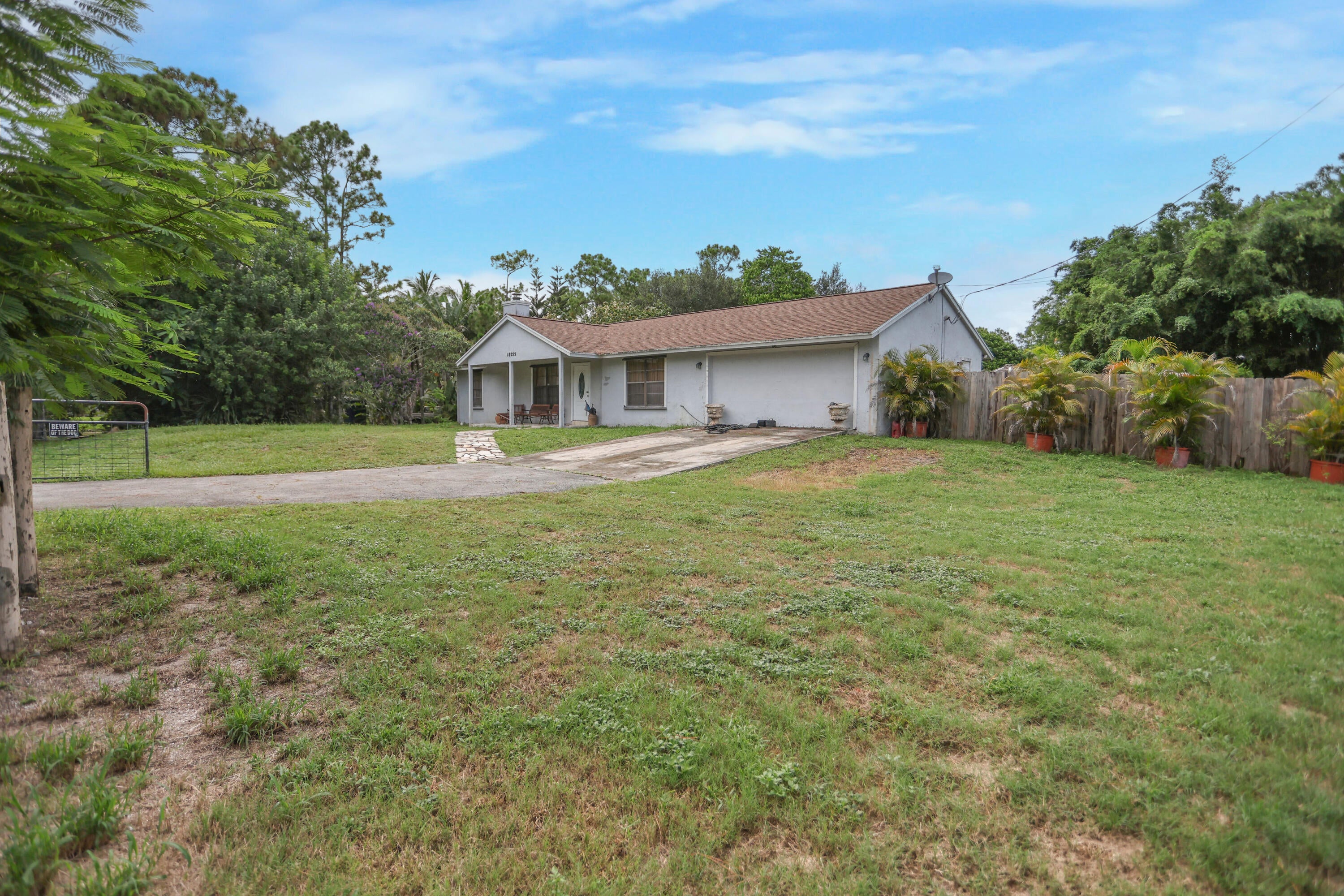 Welcome to 18055 W Sycamore Dr in beautiful Loxahatchee, just minutes from the growing community of Westlake! This charming 3-bedroom, 2-bathroom home offers over an acre of land, providing the perfect canvas for your dream home. Updated roof in 2020. Inside, you'll find a spacious layout full of possibilities, with generously sized bedrooms, a split floor plan, and ample natural light throughout. While the home is in need of updating, it presents a rare opportunity for customization and value-add improvements--ideal for investors, renovators, or anyone looking to create a personalized retreat in a peaceful, no-HOA neighborhood.Enjoy the freedom of country living with plenty of room to expand, build a guest house, or even add a pool. With its prime location near shopping, dining, and top-rated schools in Westlake, this property offers the best of both space and convenience. Bring your vision and make this home your own!