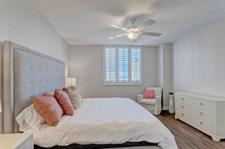 Stunning Flagler Dr. waterfront residence with breathtaking NE Intracoastal and ocean views. Renovated and furnished condo features 2 split bedrooms, 2 baths, modern kitchen with granite countertops. Beautiful interior finishes include plantation shutters, new wood tile floors throughout, and 2 built-in closets in the Master Suite. In-unit washer/dryer and 1 air-conditioned storage unit on the 1st floor included. One assigned parking space, with additional parking available for rent from the building. Amenities include a modern lobby, 24/7 concierge and security, 2 infinity-style pools, zen garden, business center, exercise room, and social room with kitchen, entertainment system, games, and billiards. Just minutes from Palm Beach's beaches, fine dining, and Worth Avenue shops.