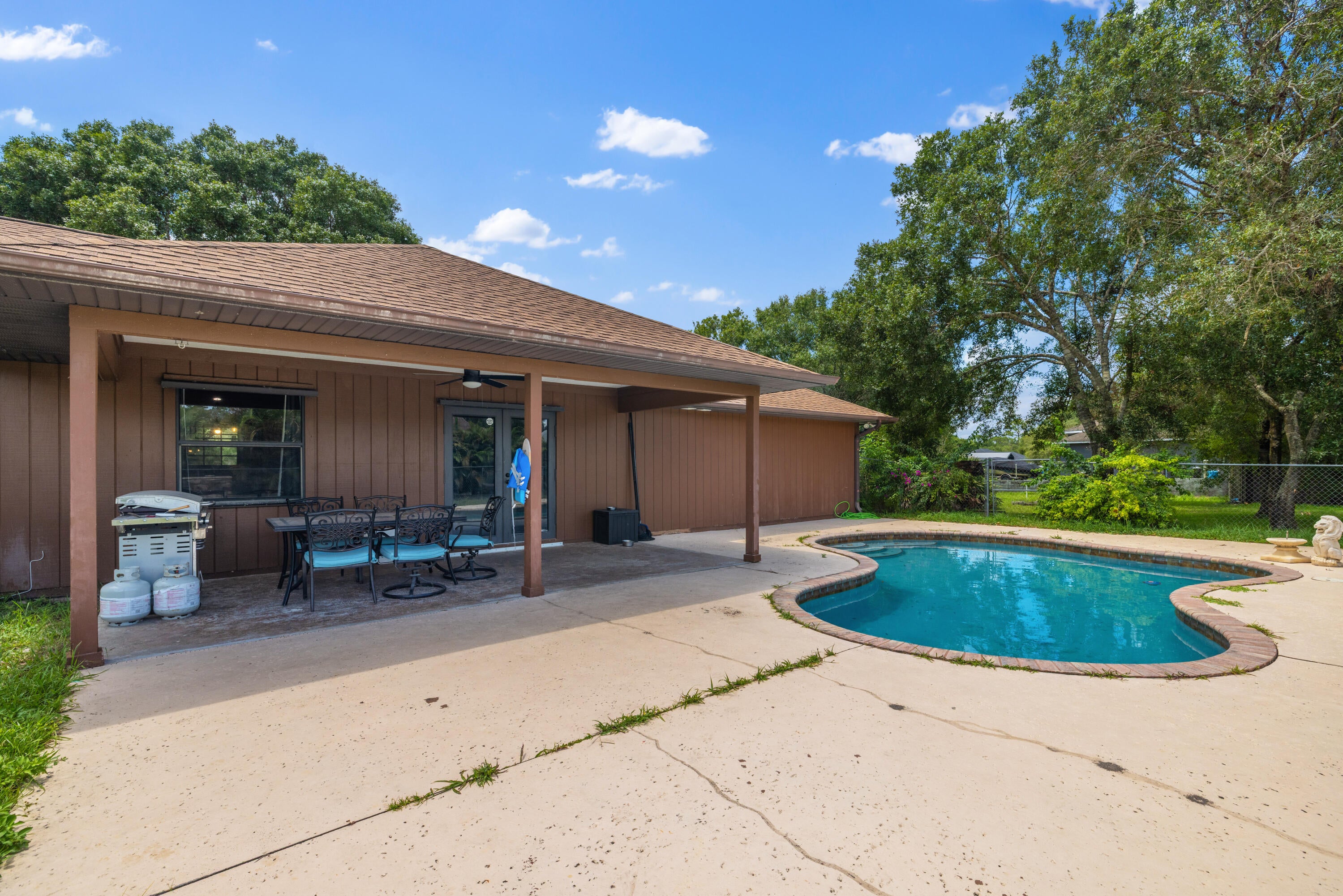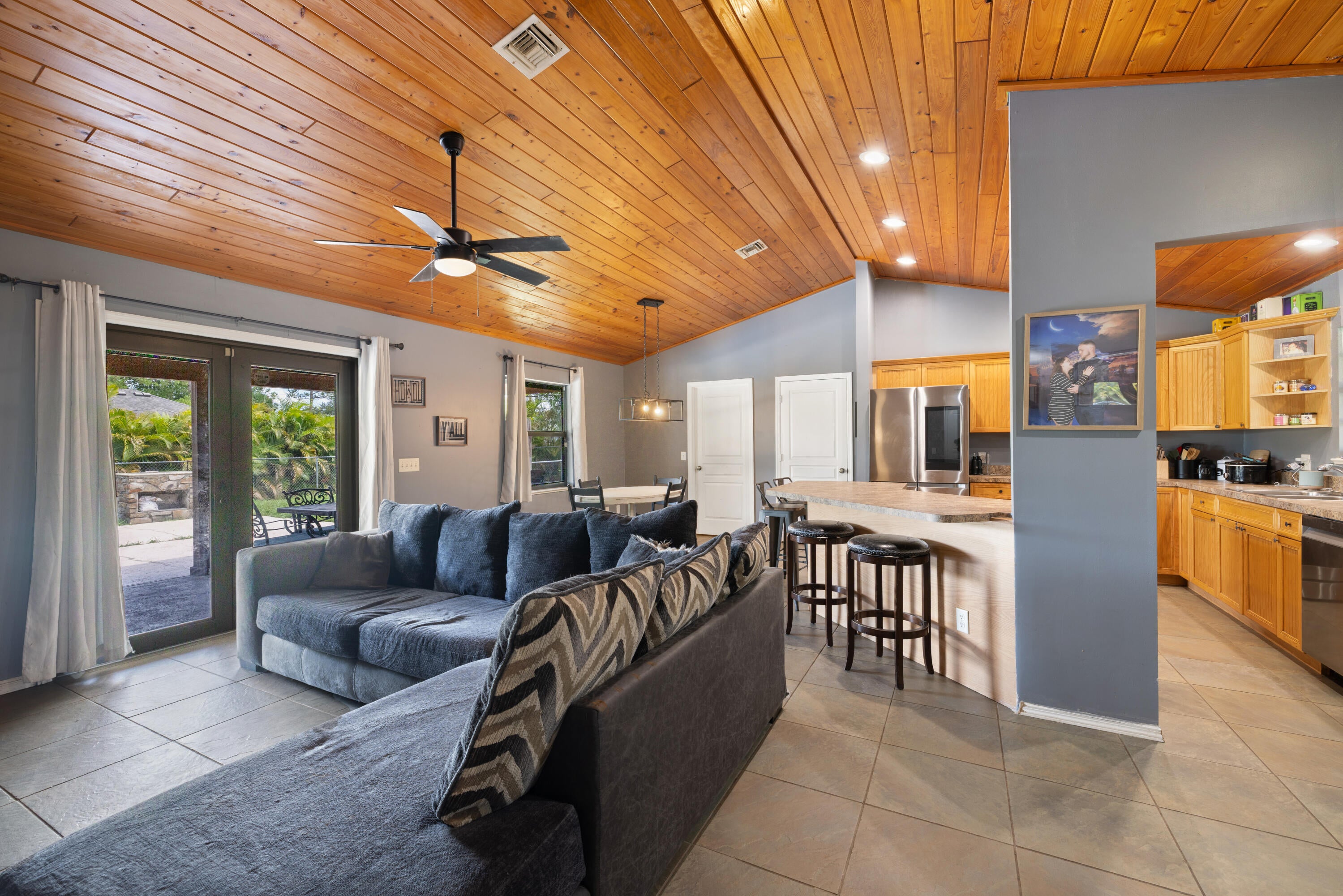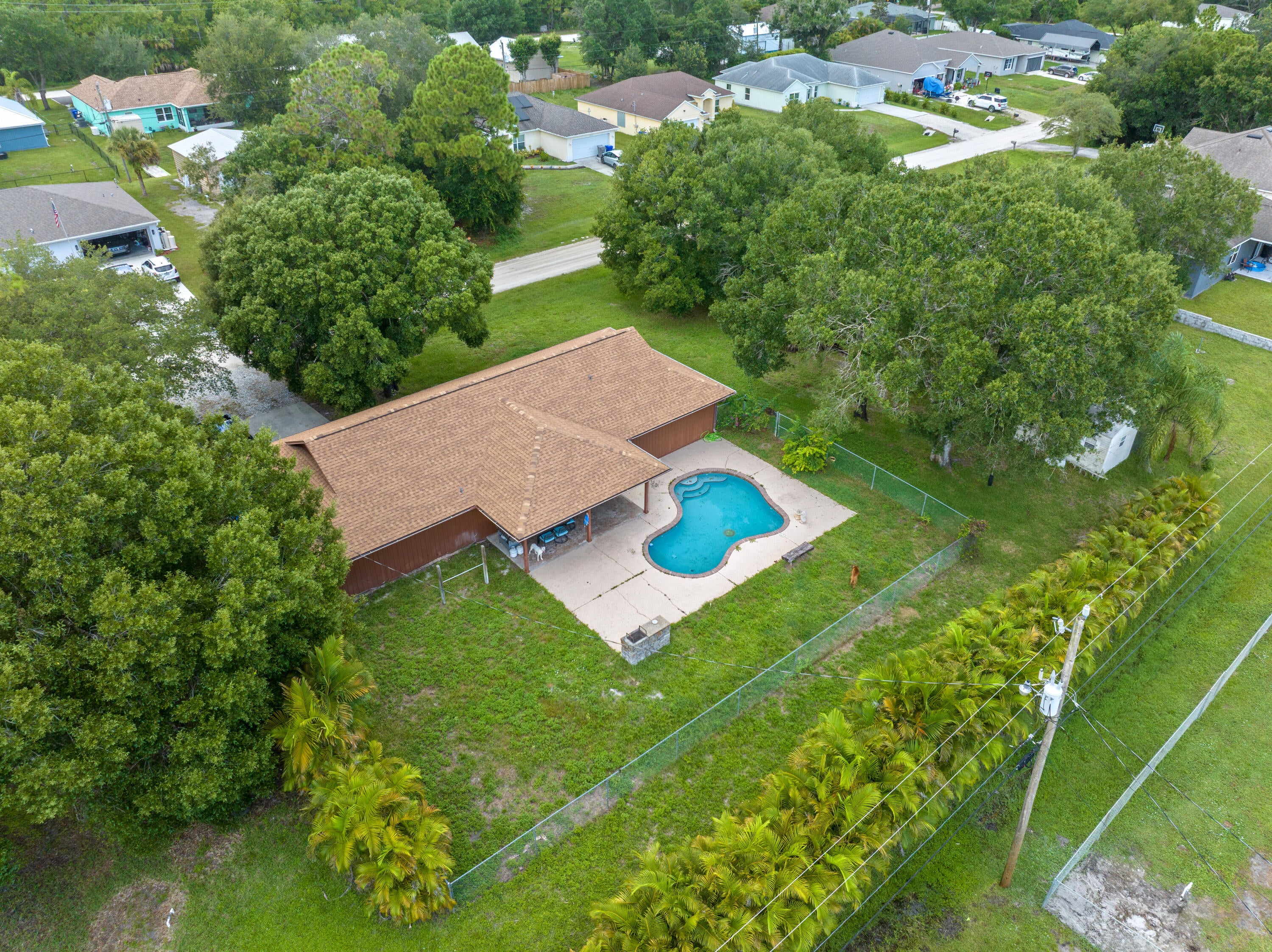 Nestled on nearly 0.67 acres across three parcels, this charming 3-bedroom, 2-bath home offers true countryside allure in Vero Lake Estates. The light-filled living space showcases vaulted ceilings with a rich wood finish, while the open kitchen -- updated with newer appliances (2024) -- and a convenient breakfast bar make everyday meals and casual entertaining a delight. Freshly painted in 2025, the home also features updated fixtures and fans (2025), a laundry room, and a full two-car garage with epoxy flooring. Outside, relax by the private pool with a pool pump replaced in 2024, enjoy the fenced yard with a shed and chicken coop, and rest easy under the brand-new roof (2023). Additional upgrades include an A/C (2017), water heater (2019), and owned water softener (2024).Situated in a non-flood zone and close to local amenities, this property blends rural tranquility with modern comfort a true slice of paradise.