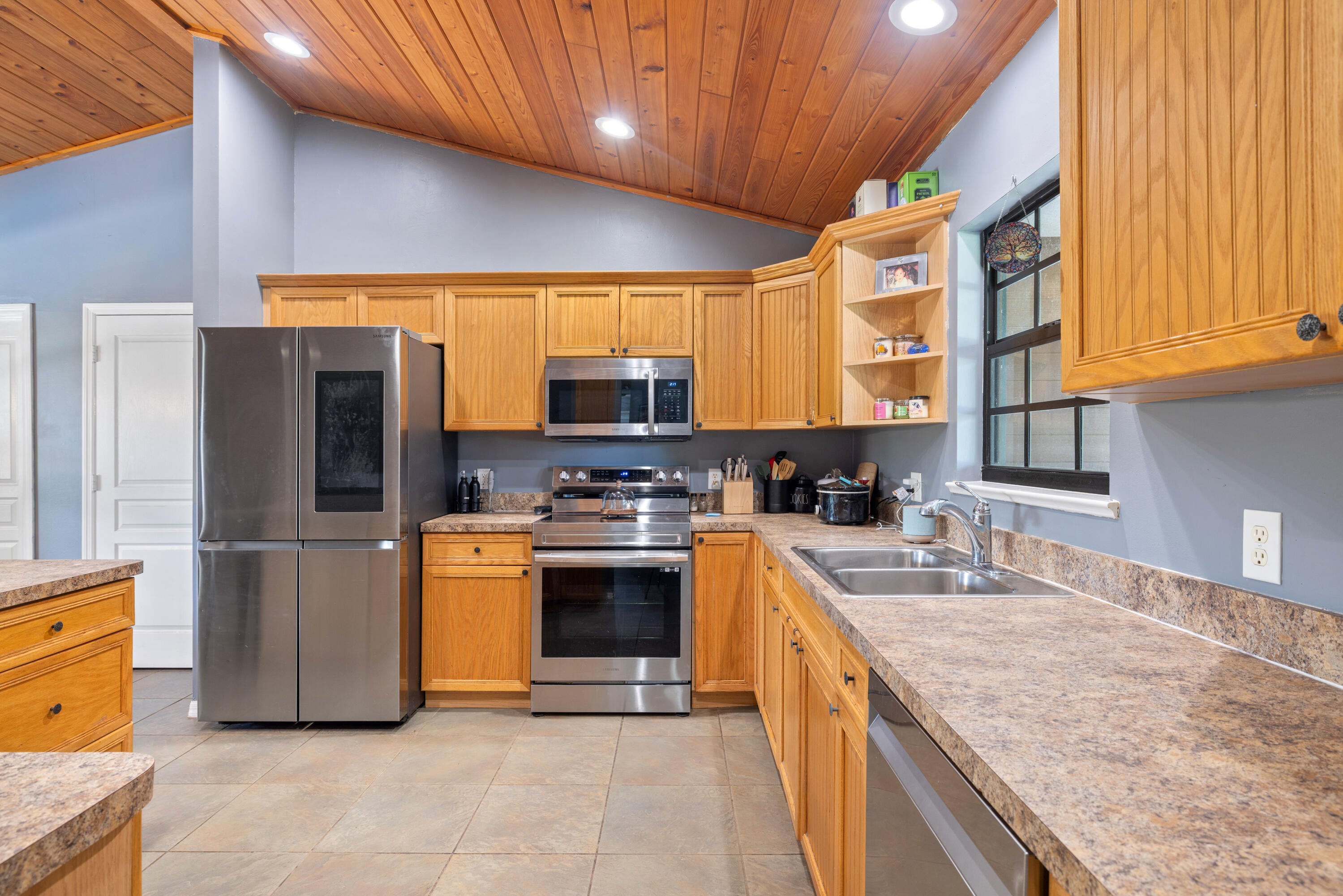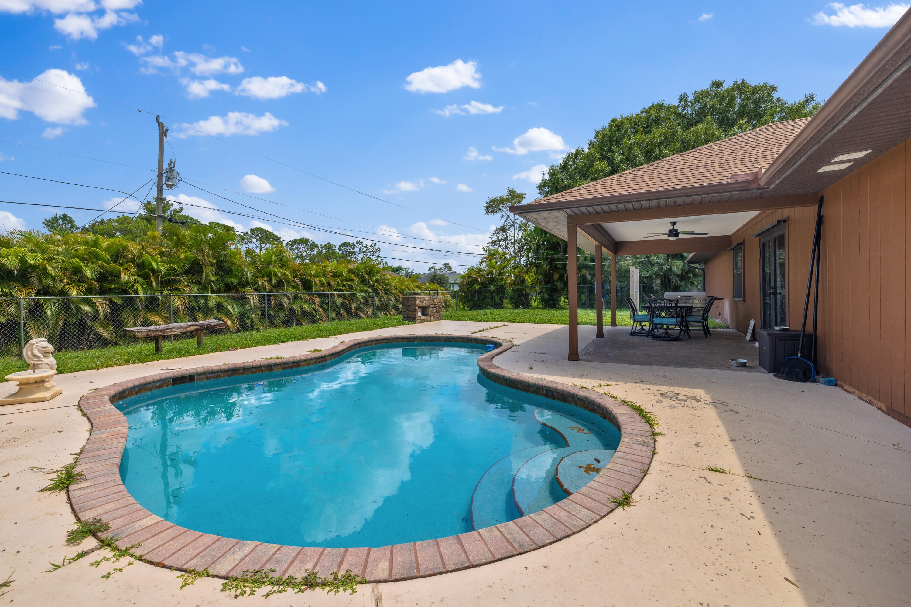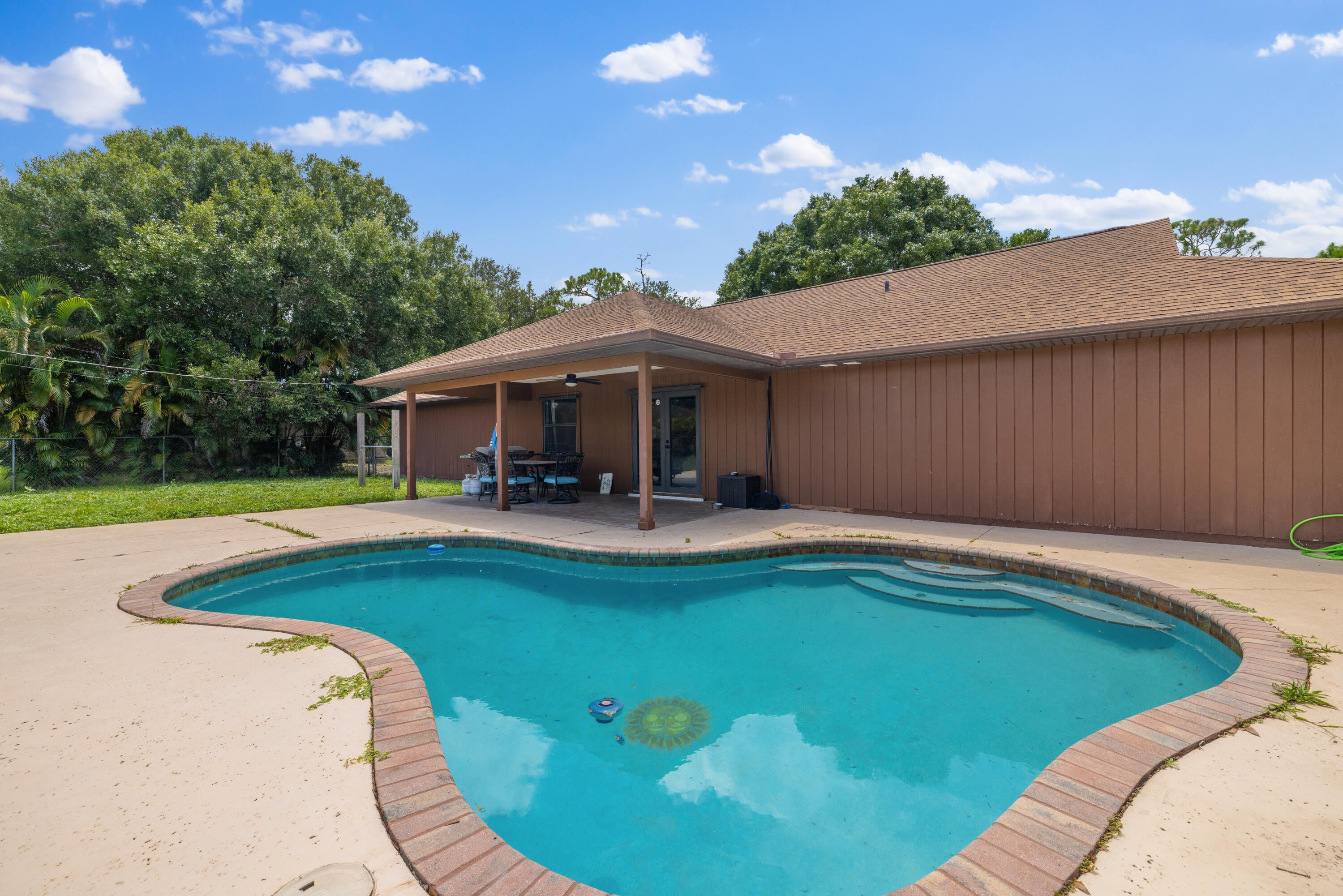 Nestled on nearly 0.67 acres across three parcels, this charming 3-bedroom, 2-bath home offers true countryside allure in Vero Lake Estates. The light-filled living space showcases vaulted ceilings with a rich wood finish, while the open kitchen -- updated with newer appliances (2024) -- and a convenient breakfast bar make everyday meals and casual entertaining a delight. Freshly painted in 2025, the home also features updated fixtures and fans (2025), a laundry room, and a full two-car garage with epoxy flooring. Outside, relax by the private pool with a pool pump replaced in 2024, enjoy the fenced yard with a shed and chicken coop, and rest easy under the brand-new roof (2023). Additional upgrades include an A/C (2017), water heater (2019), and owned water softener (2024).Situated in a non-flood zone and close to local amenities, this property blends rural tranquility with modern comfort a true slice of paradise.