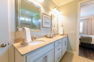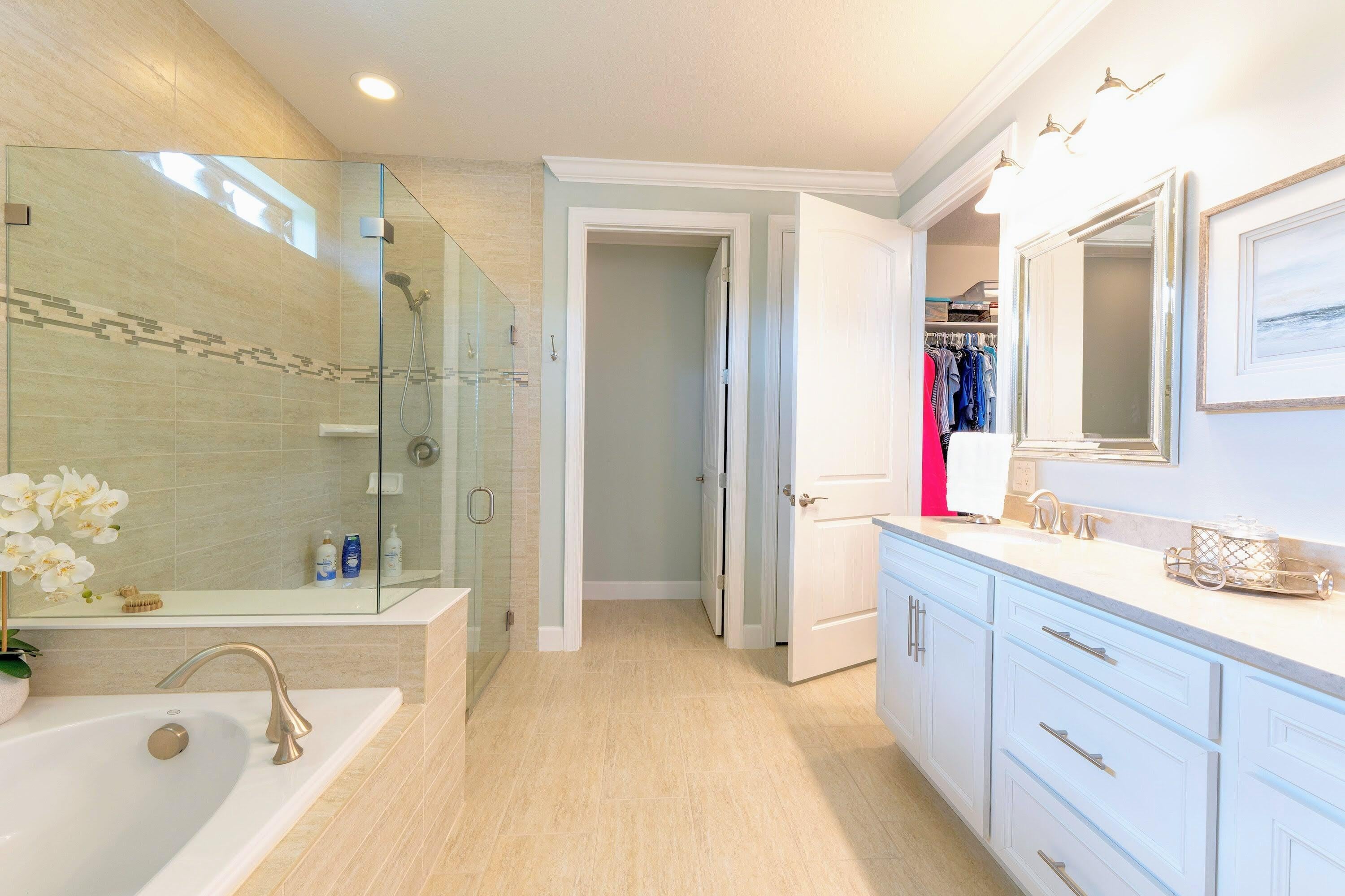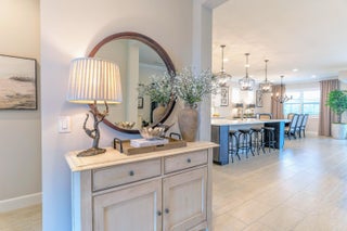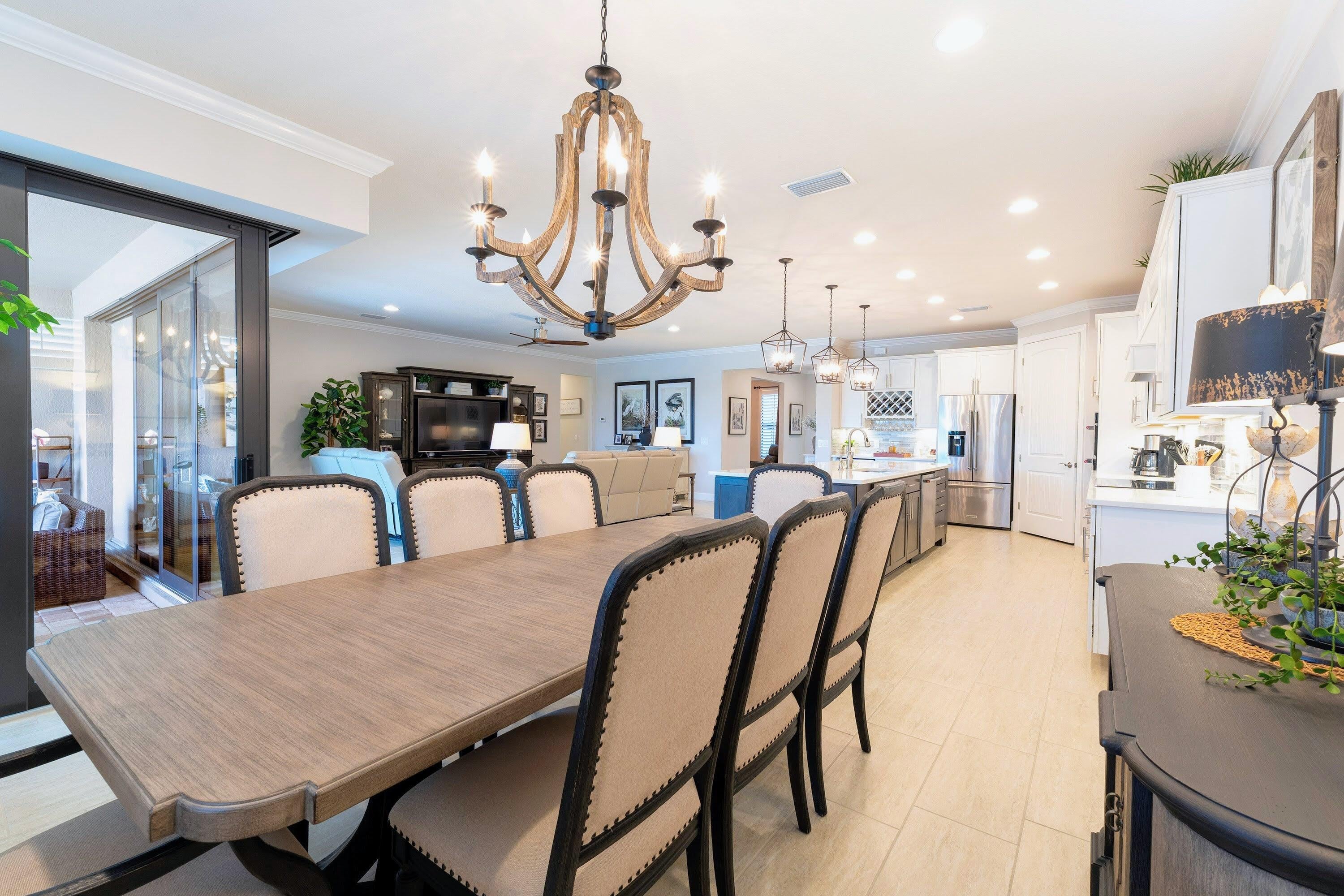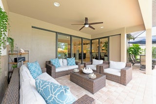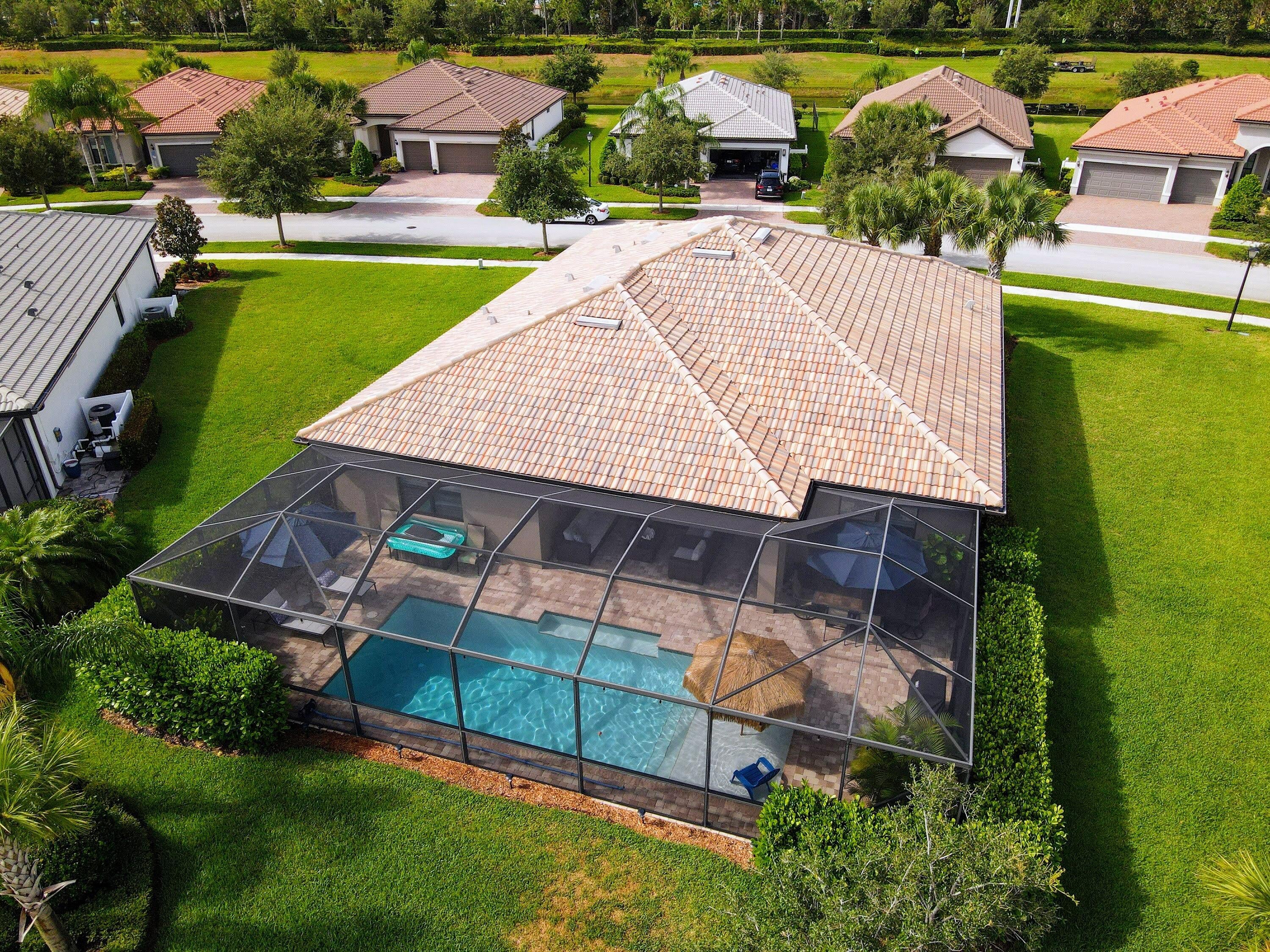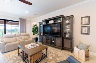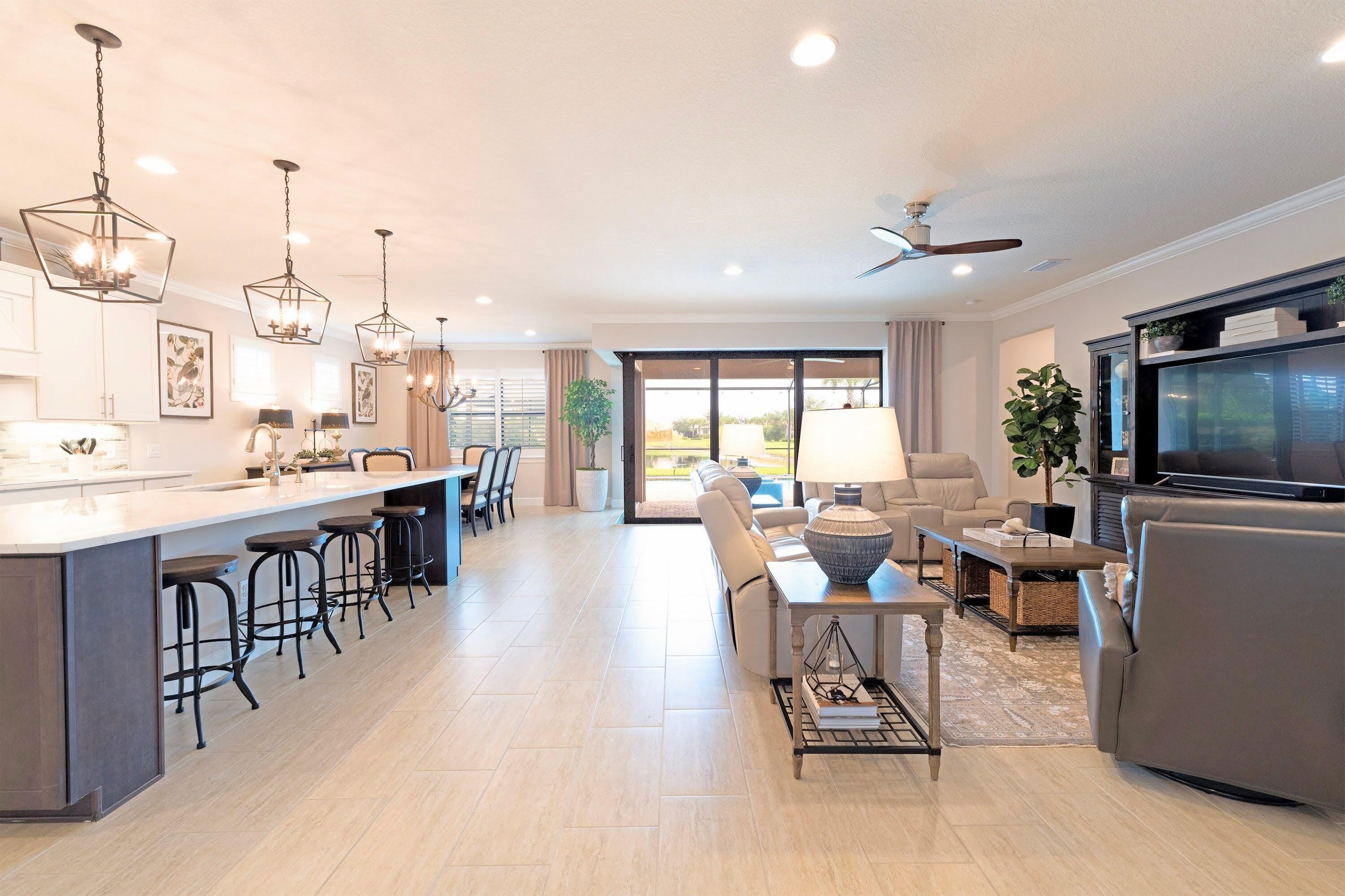 Beautifully appointed and maintained 2017 Pinnacle model with long lake view in sought after Lakes at Waterway Village. Impact glass throughout. This 3/3 plus den offers a generous 2476 SF of under air living space. Substantial upgrades and features - see feature slide in photos. Seamless Florida indoor/outdoor living is accessed via zero-corner patio doors to screened salt water pool and covered lanai entertaining area. Gated community offers resort amenities - active social calendar - Clubhouse, Kitchen, Barefoot Bar, Pool w/lap lanes, Spa, Gym, Studio, Tennis courts, Bocce & Pickleball