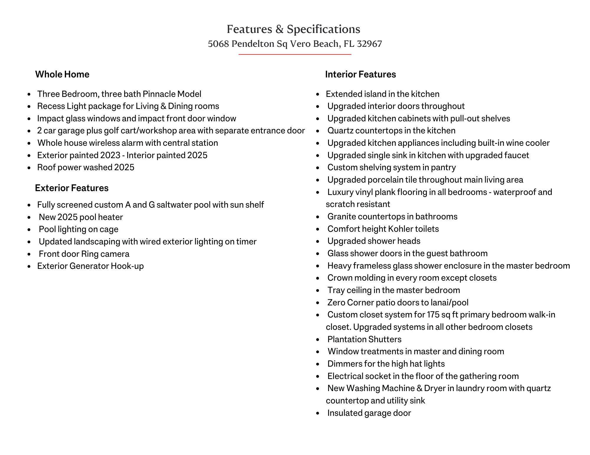 Auto Garage Open, Cooktop, Dishwasher, Disposal, Dryer, Fire Alarm, Freezer, Microwave, Range - Electric, Refrigerator, Smoke Detector, Generator Hookup