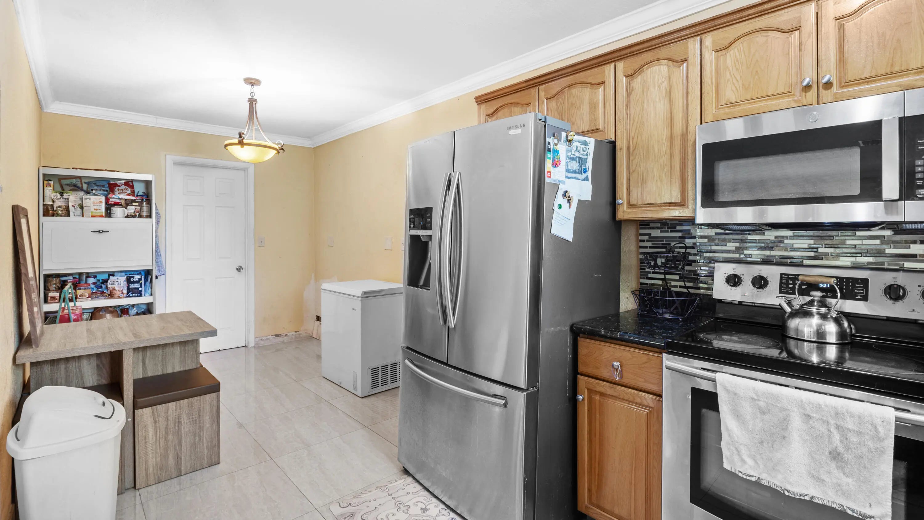 Beautifully updated 3BR/2.5BA home featuring a 2017 roof, new A/C and handler, and professionally appraised at $640,000 in June 2025. Includes impact windows, all-new appliances, and a granite kitchen. Two master suites one perfect for an in-law setup plus three elegantly renovated baths. Spacious laundry room with sink, landscaped backyard with covered patio, and ample parking with two covered spaces, storage, circular, and side driveways. While some cosmetic updates are needed, this is a home with great bones and solid construction, offering comfort, value, and potential.