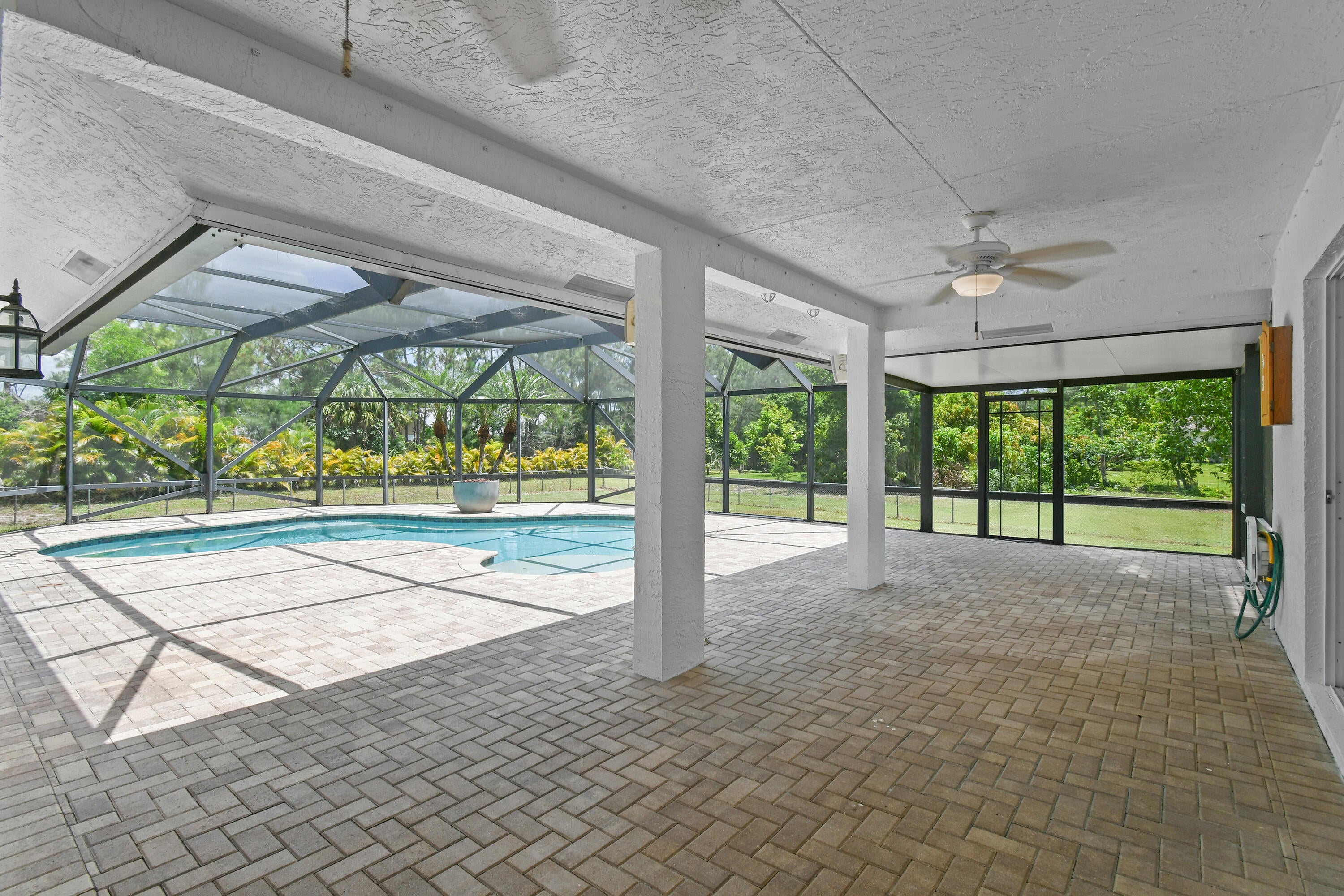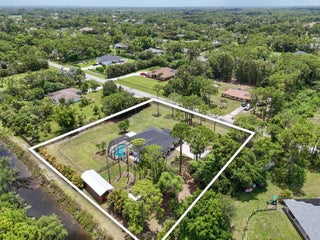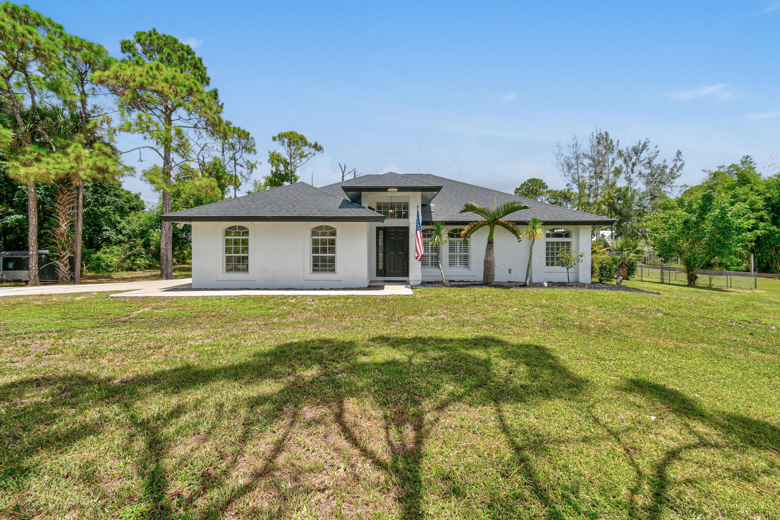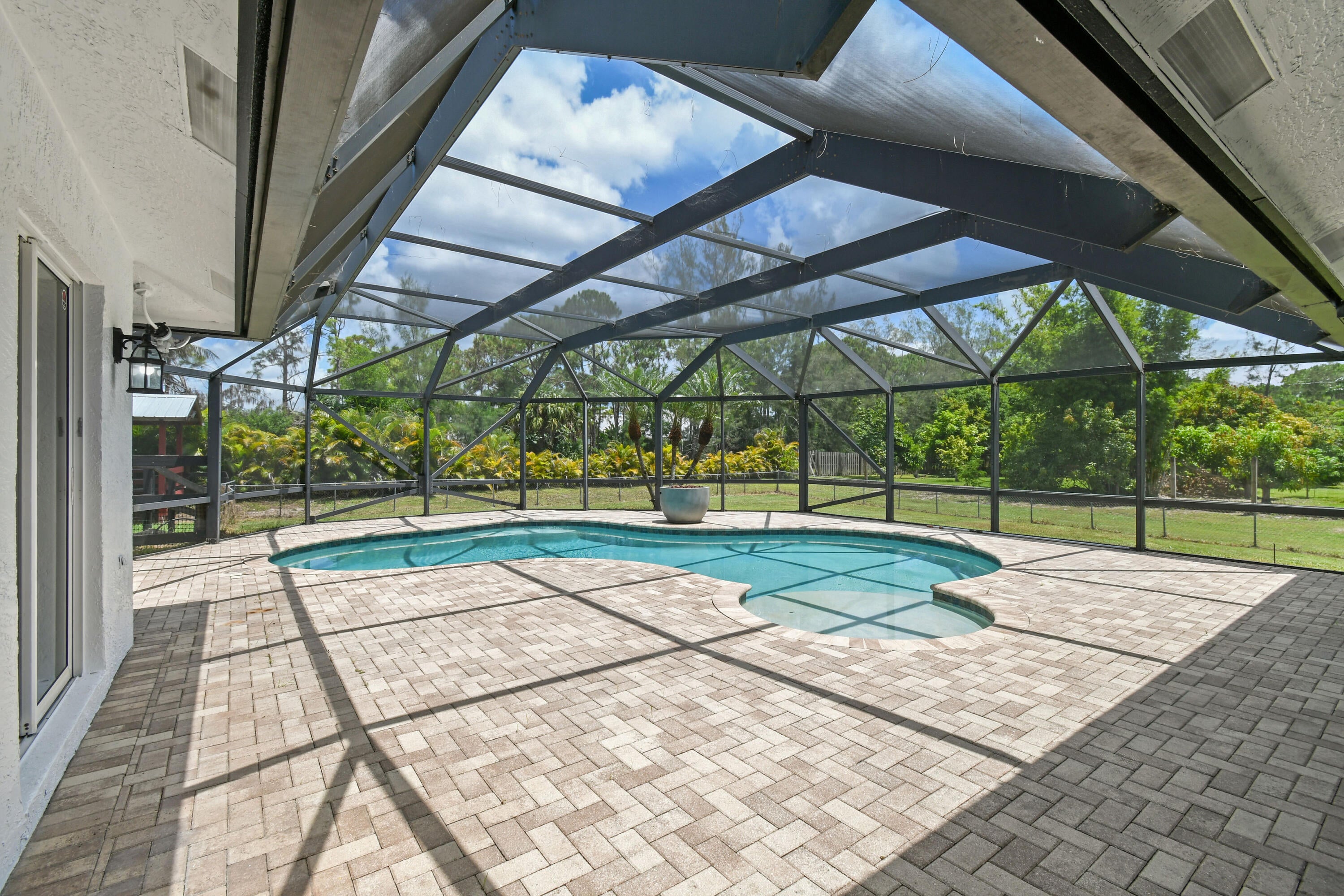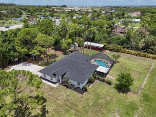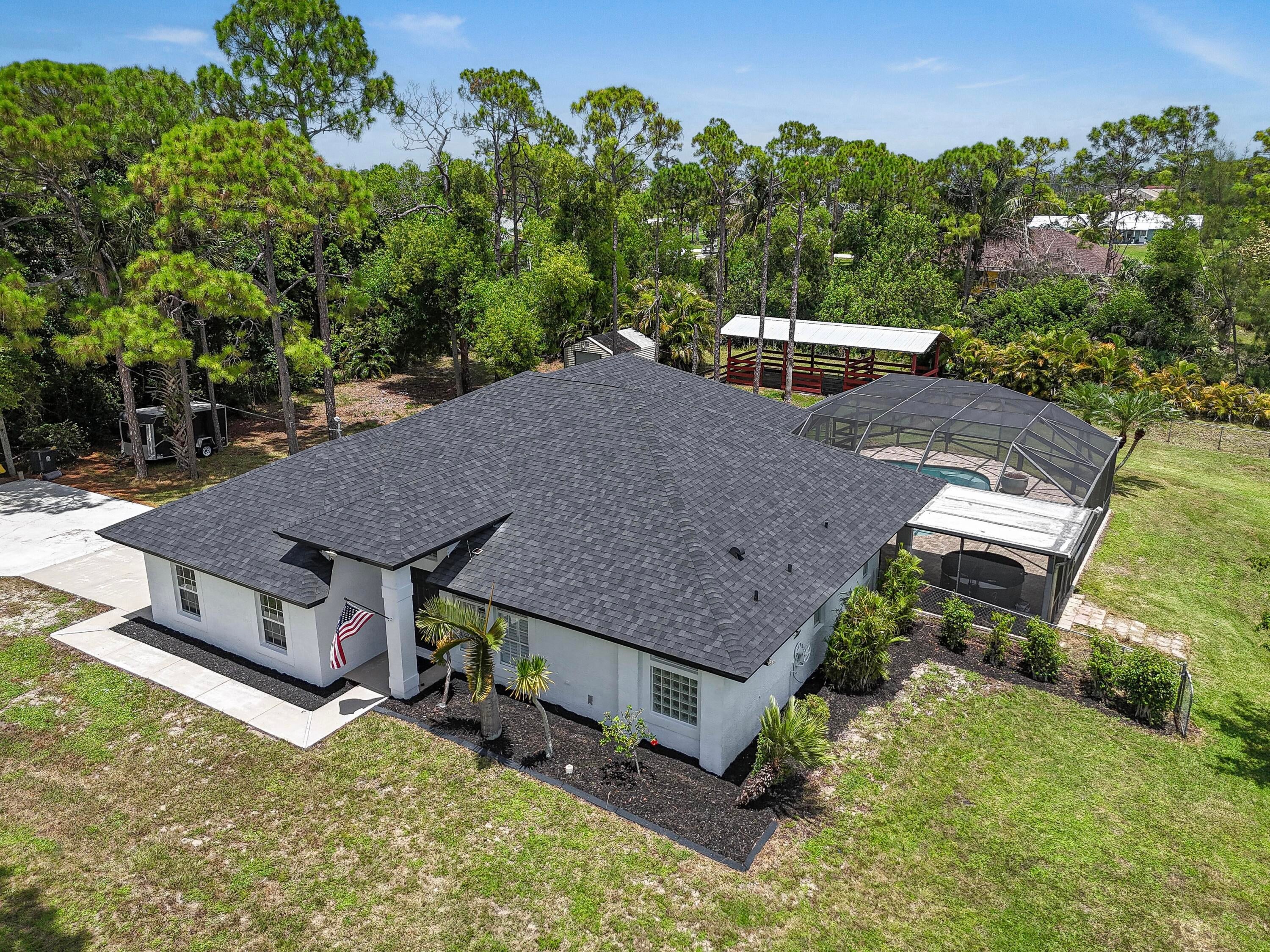 In The Acreage, this LOCATION IS EVERYTHING! -- 1.29 -acre equestrian property with 3 horse stalls is a rare find near the main road, just steps from Horse Park and riding trails. Designed for both riders and relaxation, the CBS 4BD/2BA home features vaulted ceilings, an open concept layout, brand-new roof, new HVAC, upgraded water system, striking new exterior, and a screened-in pool with over 1,600 SF of entertaining space, solar-ready heating, and lifetime structural warranty. Also features a cabana bath, plantation shutters, hurricane-rated garage, generator-ready hookup, solar water heater, poured concrete driveway, and plenty of space for trailers, boats, and toys. Country-style living with city-like convenience -- all minutes from shopping, dining, and the beach.