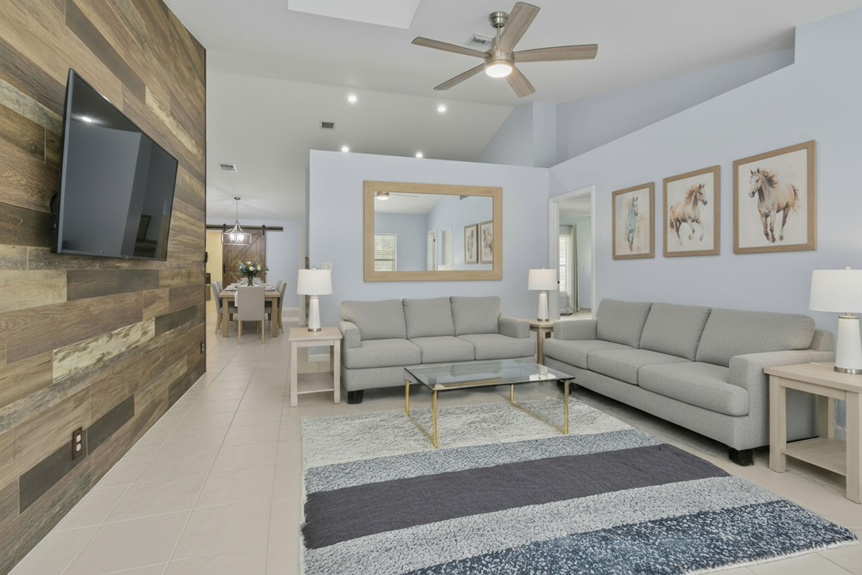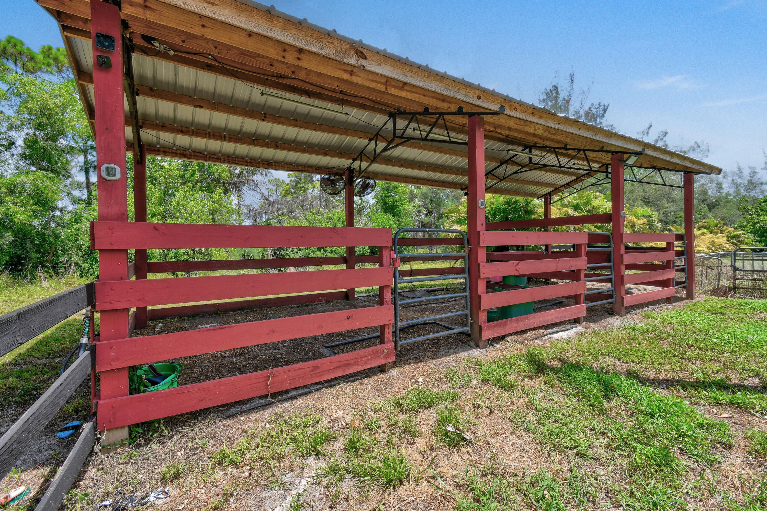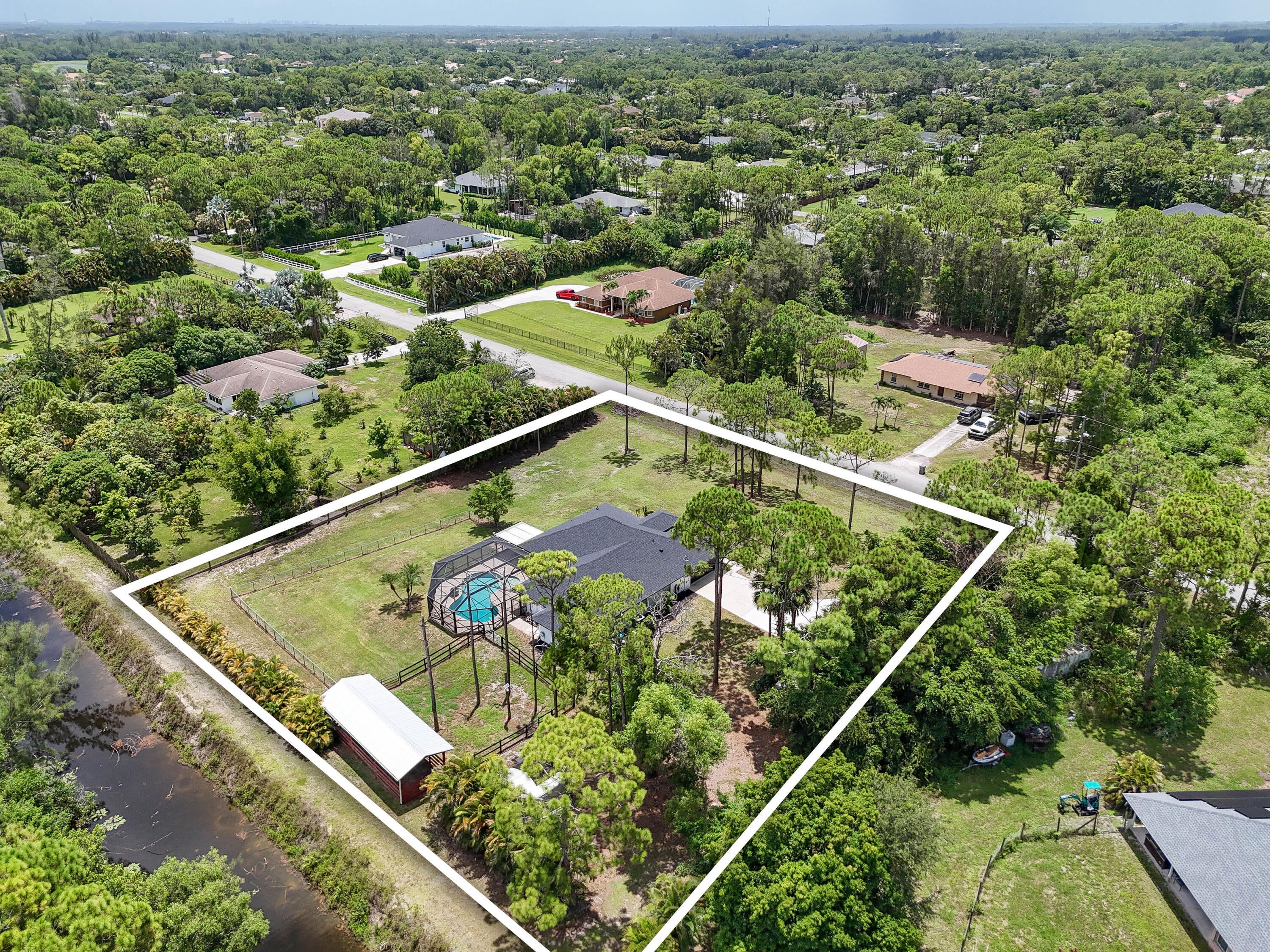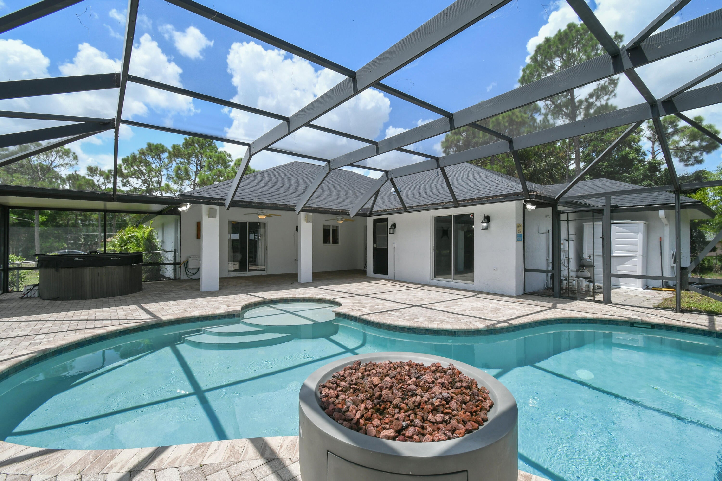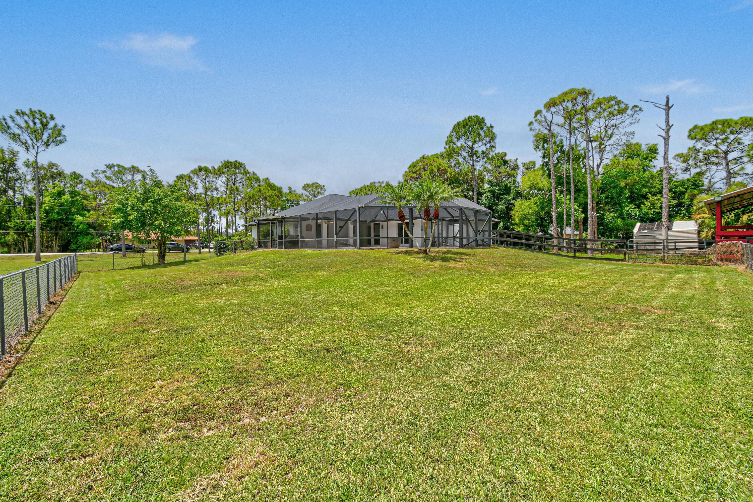 In The Acreage, this LOCATION IS EVERYTHING! -- 1.29 -acre equestrian property with 3 horse stalls is a rare find near the main road, just steps from Horse Park and riding trails. Designed for both riders and relaxation, the CBS 4BD/2BA home features vaulted ceilings, an open concept layout, brand-new roof, new HVAC, upgraded water system, striking new exterior, and a screened-in pool with over 1,600 SF of entertaining space, solar-ready heating, and lifetime structural warranty. Also features a cabana bath, plantation shutters, hurricane-rated garage, generator-ready hookup, solar water heater, poured concrete driveway, and plenty of space for trailers, boats, and toys. Country-style living with city-like convenience -- all minutes from shopping, dining, and the beach.