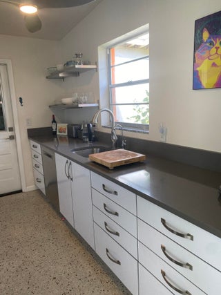 Mid-Century CBS modern home with 21st-century enhancements. No HOA, no restrictions. Desirable Vero Shores safe neighborhood, only five miles from the beach. Full hurricane protection includes shutters and custom hurricane garage doors.15X30 heated saltwater pool (2020heat pump, 2018energy-efficient V/S pool pump, 2024 saltwater system) Screened porch with ceiling fan overlooking large fenced backyard. Terrazzo floors throughout, renovated kitchen: gas range, SS appliances, custom cabinets, r/o filtration, pantry, laundry room. Features high ceilings-bright airy interiors. Electric updated:200amps/2020, insulated 2-car garage, 2018 Main H20 line repiped w/new shut-off valve. Located close to shopping, pharmacy, gas, and groceries. Live the Florida Dream! Rmsizeapprox.