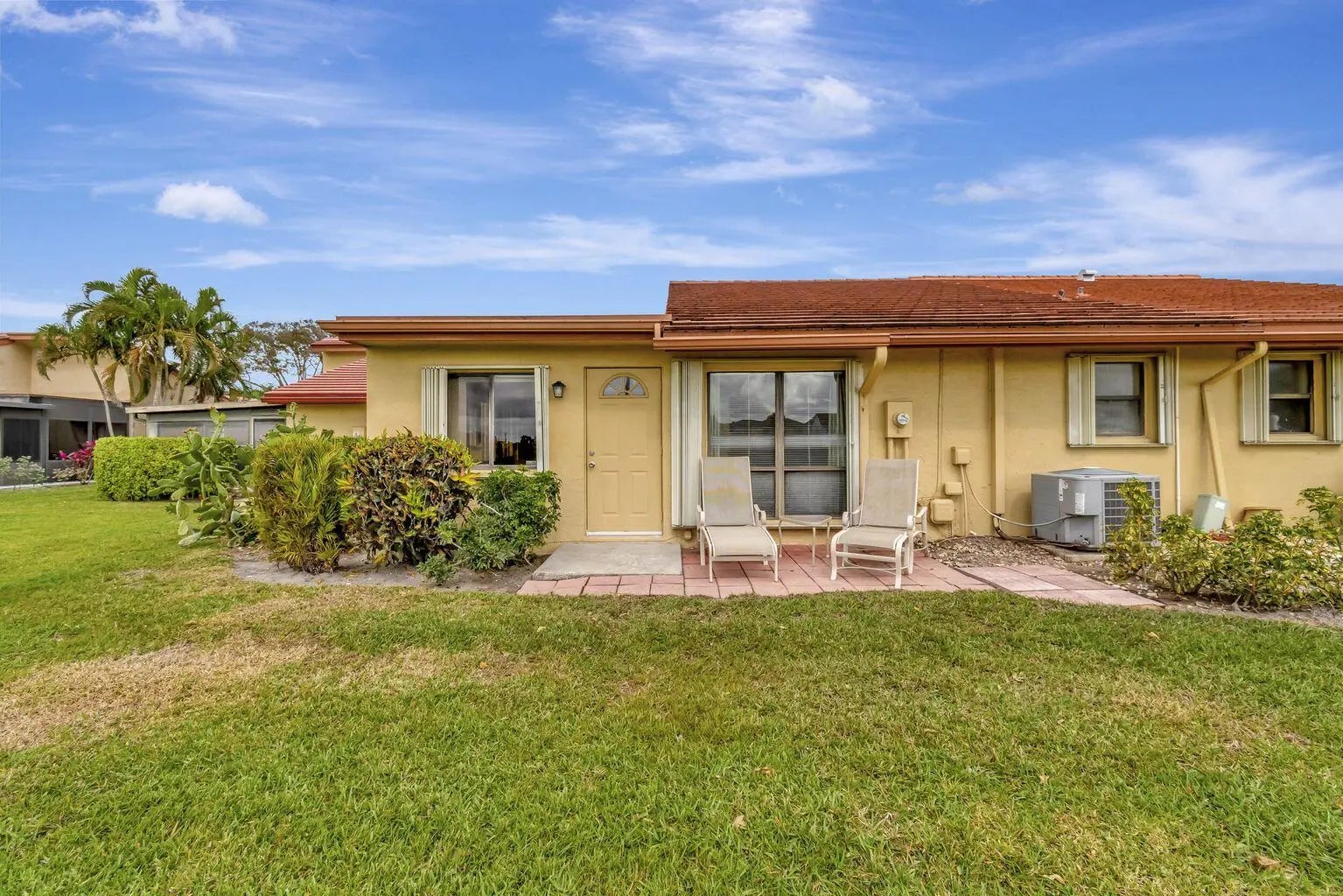 This charming 2 bedroom, 2 bathroom villa features a spacious split-bedroom layout that offers privacy and comfort. The enclosed Florida room adds bright, air-conditioned space for relaxing or entertaining. As one of the larger models in Forest Grove, it has neutral tile flooring throughout and newer stainless steel kitchen appliances. A new roof was installed in 2025, the upgraded electric panel and accordion shutters are an added bonus. Enjoy peaceful views from your patio with no rear neighbors. The community pool is just a short walk away for casual swims and socializing. This villa truly offers a great lifestyle in a beautiful setting! Membership to the country club isn't mandatory, but memberships are available.