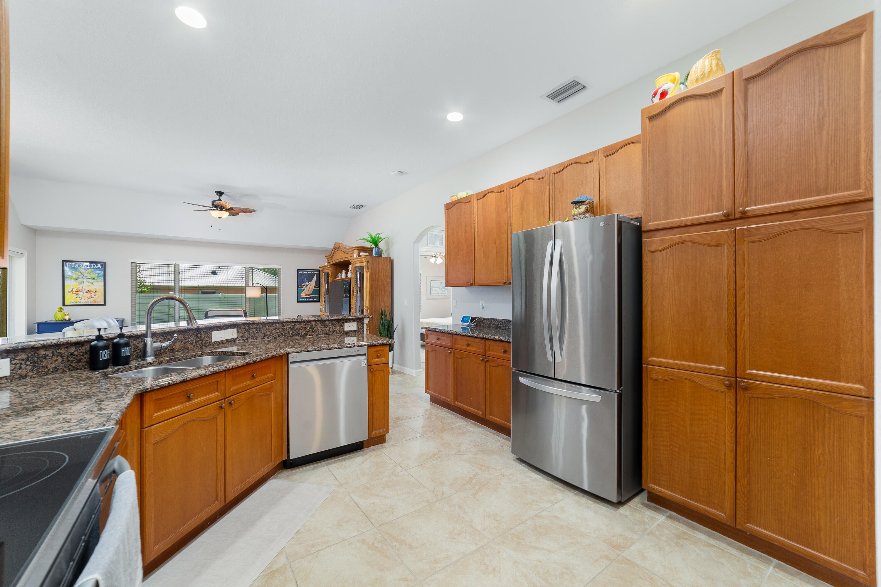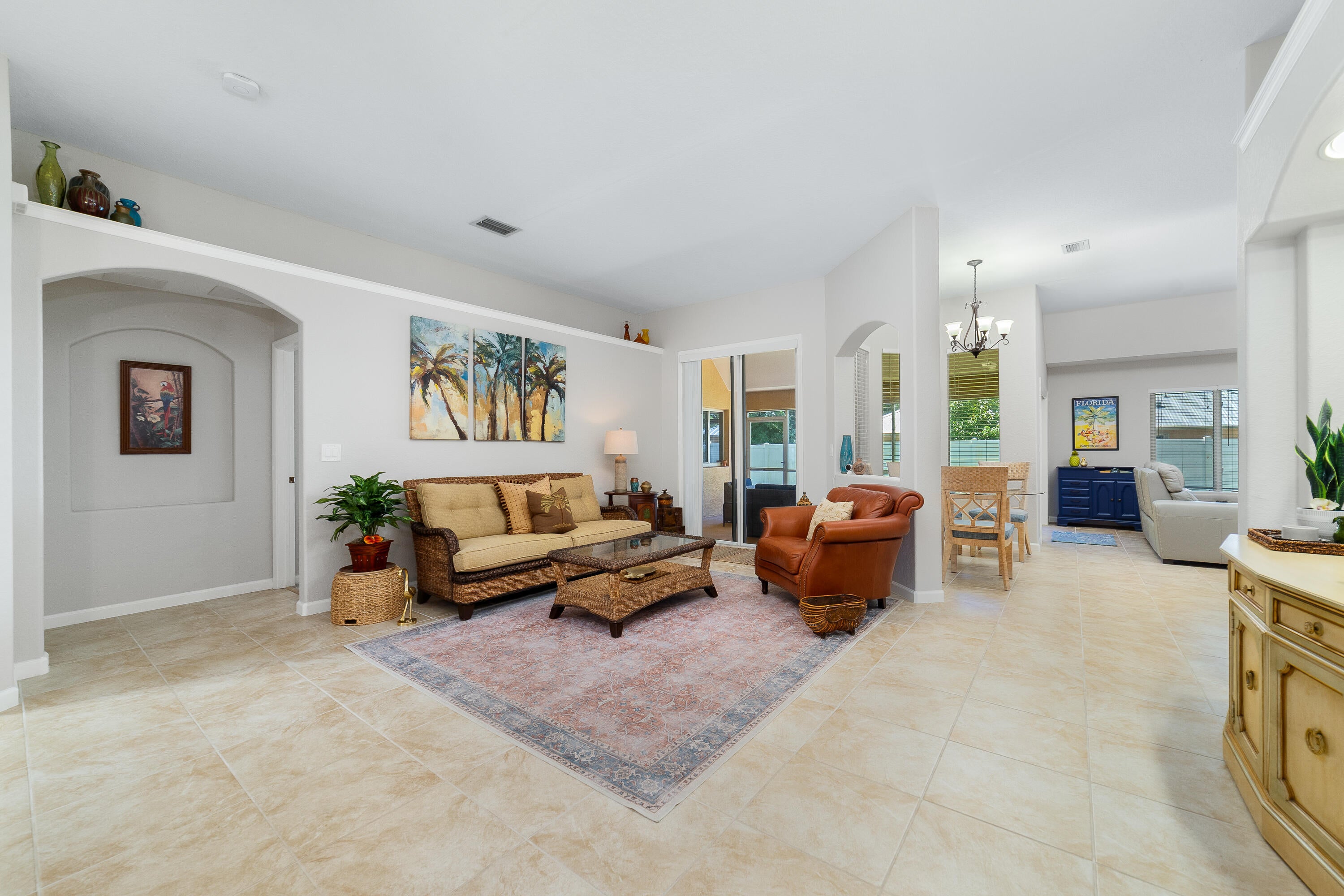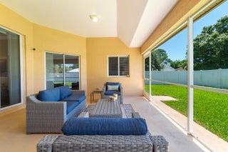 Nestled on a large corner lot in the desirable community of The Preserve of Vero Beach, this beautifully maintained home offers comfort, style, and convenience. The private fenced backyard provides room for a pool and includes a screened, covered patio, perfect for relaxing or entertaining. Inside, an open floor plan with volume ceilings flows seamlessly from the living room, through the kitchen, and into the family room, complemented by both formal and casual dining areas. The kitchen features stainless steel appliances (new in 2022), granite countertops, abundant storage, and a center gathering space.The primary suite is a true retreat with dual closets, a spa-like bath featuring a soaking tub and walk-in shower, and a private sitting room or den. Berber carpet in the bedrooms, tile throughout the main living areas, a full-size laundry room with washer and dryer, and a two-car garage add to the home's practicality. The water heater was replaced in 2025, and additional appliances were updated in 2022. Beautiful arched windows flood the home with natural light. Furniture is available for purchase. The Preserve of Vero Beach is known for its lush landscaping and welcoming atmosphere. Residents enjoy proximity to Oslo Middle School, South County Park with its softball fields, playground, tennis courts, and more, as well as nearby shopping, dining, cultural venues, and Vero's pristine beaches. This home blends timeless design with the lifestyle of one of Florida's most sought-after coastal communities. Mortgage savings may be available for buyers of this listing.