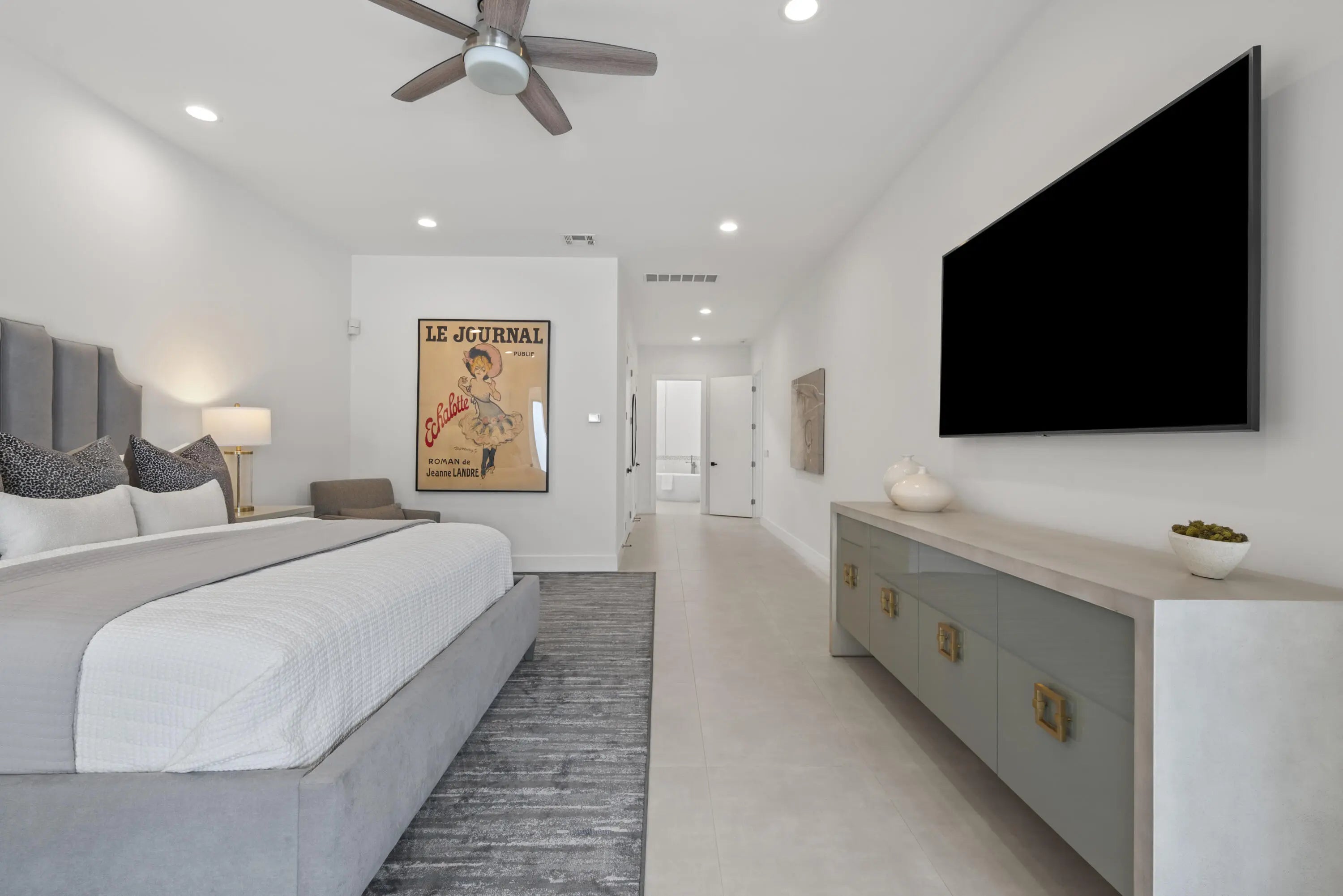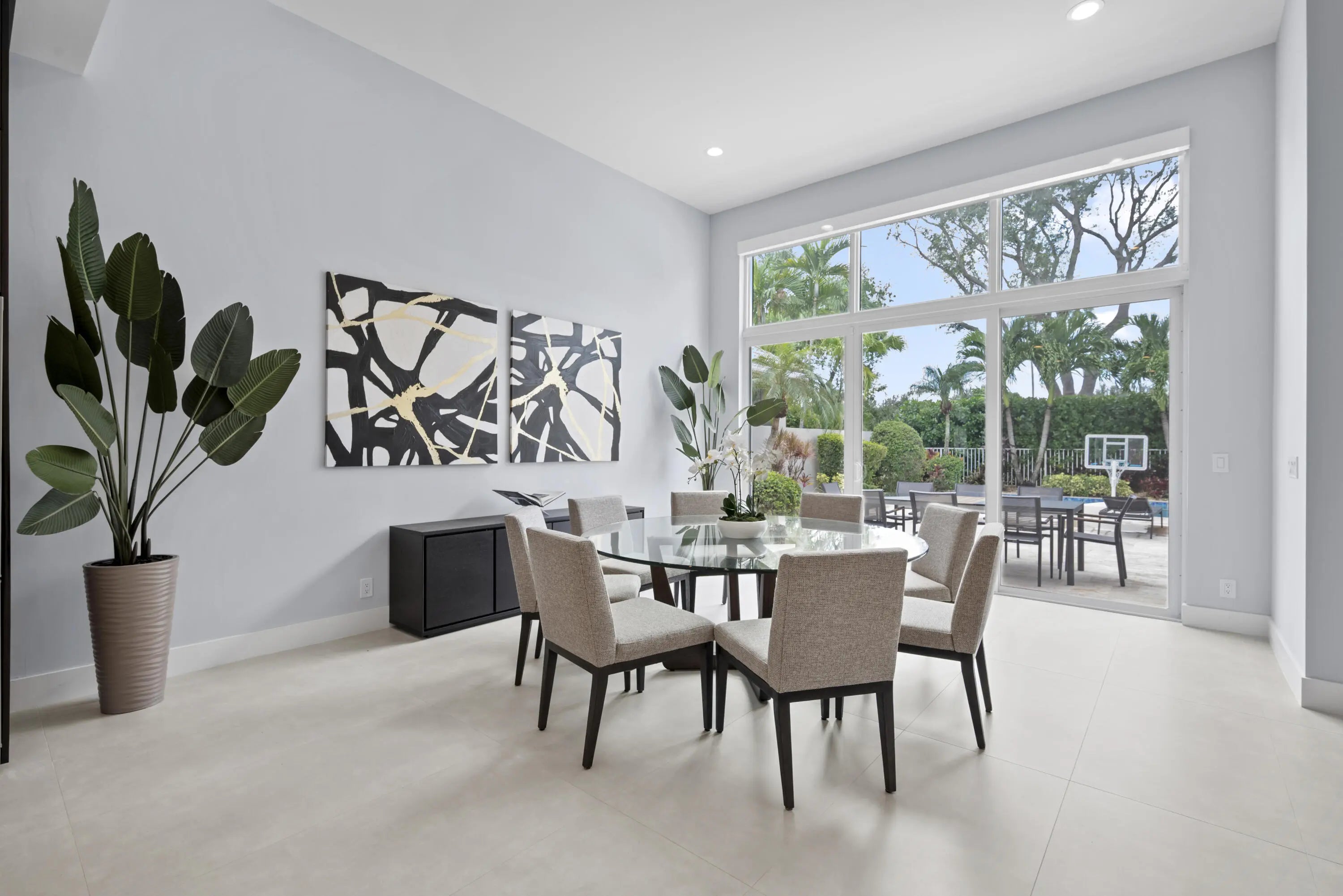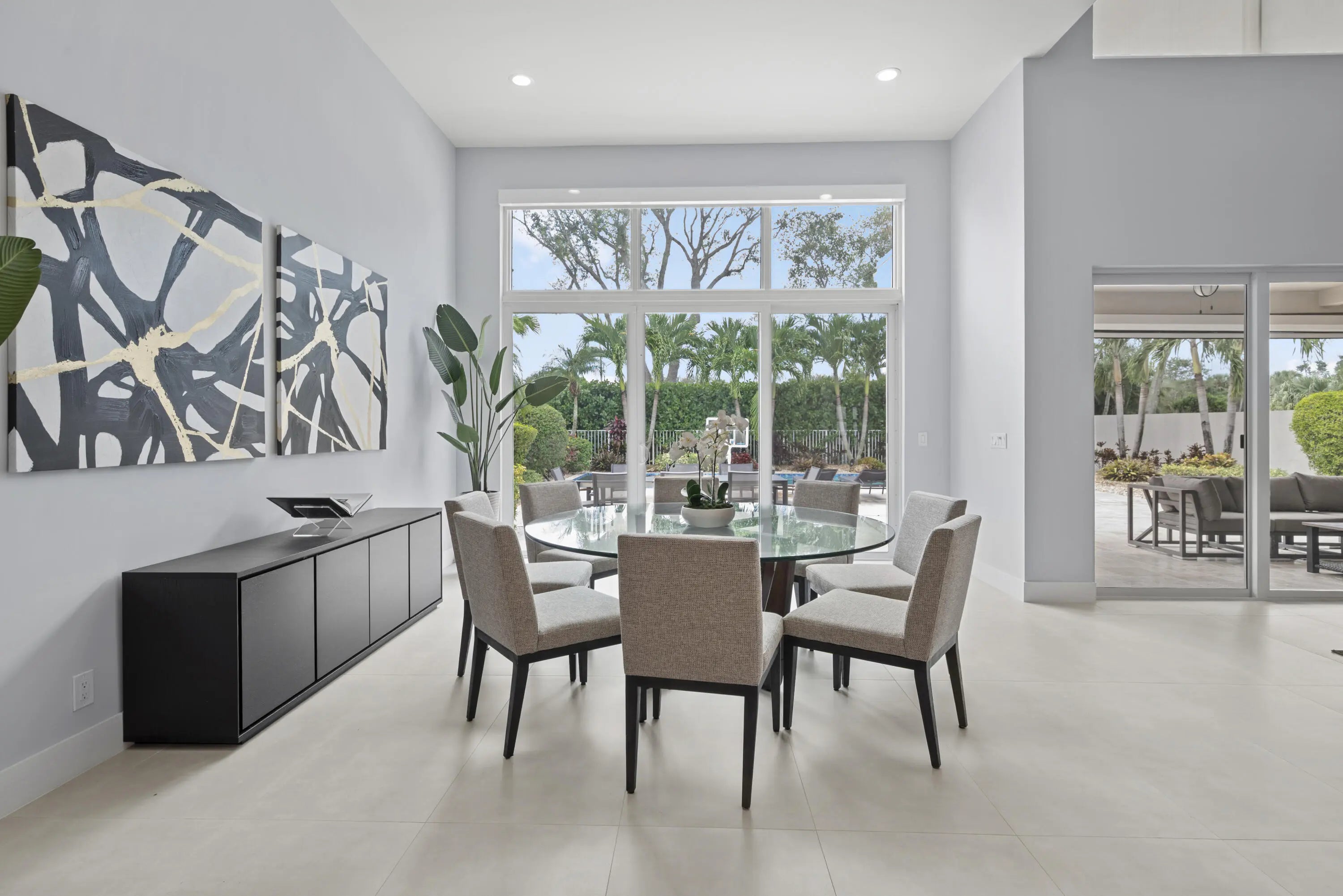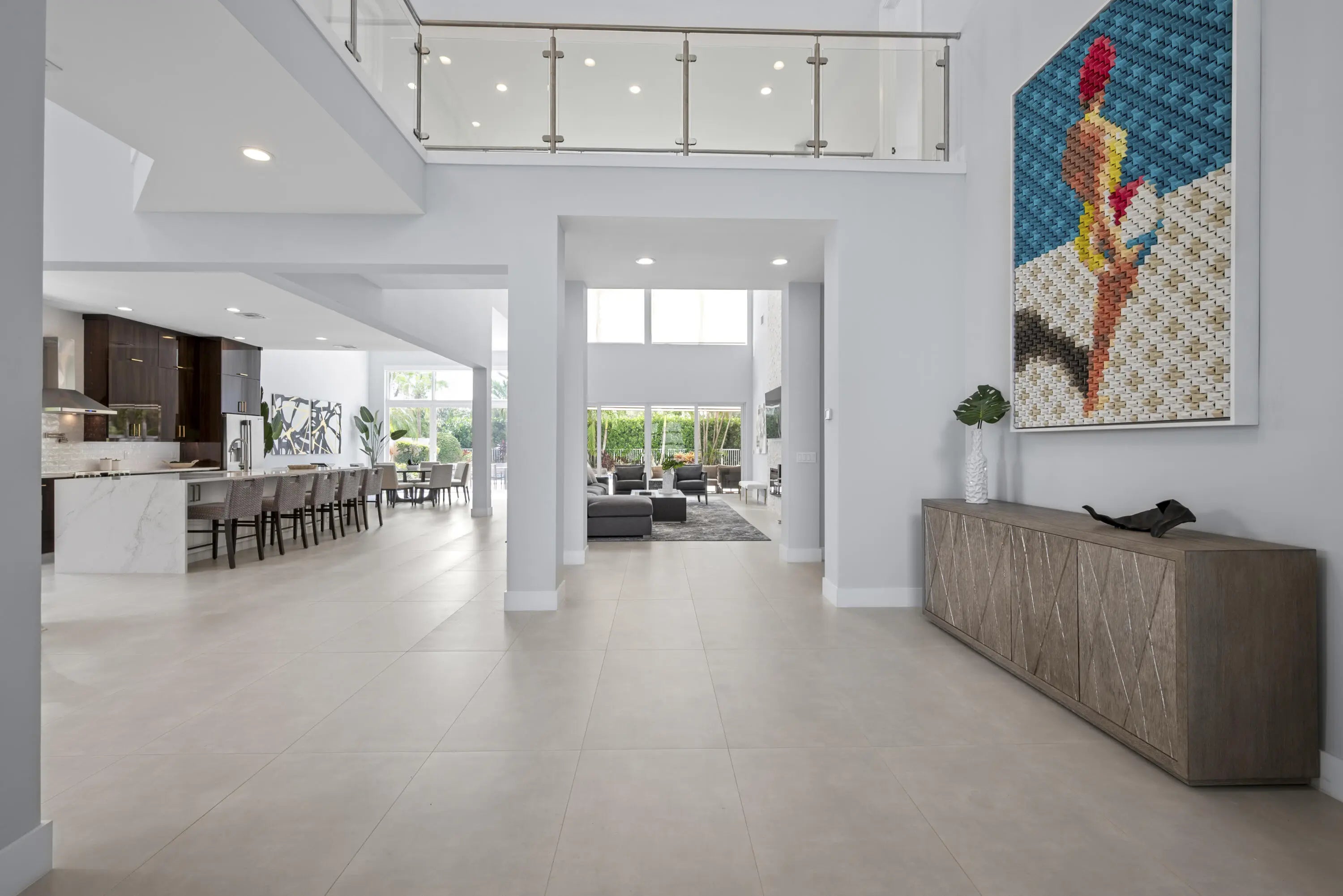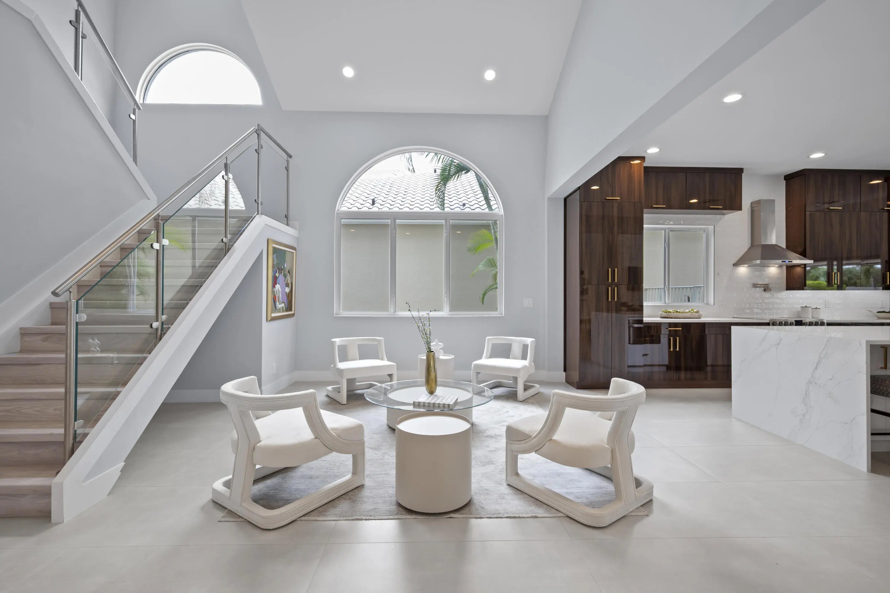 Step into this exquisitely renovated home, where modern design meets comfort and functionality. As you enter, you're welcomed by soaring ceilings and expansive windows that flood the space with natural light, creating a bright and inviting atmosphere. The open-concept layout seamlessly blends elegance and practicality, offering an ideal everyday living and entertaining setting. The spacious living room, perfect for gathering with family and friends, features a striking fireplace and flows effortlessly into the breathtaking chef's kitchen. This culinary haven boasts sleek, custom cabinetry, an oversized island with ample seating, and high-end Frigidaire appliances. The kitchen also offers a casual eat-in area and a formal dining space, catering to any occasion. The luxurious primary suite
