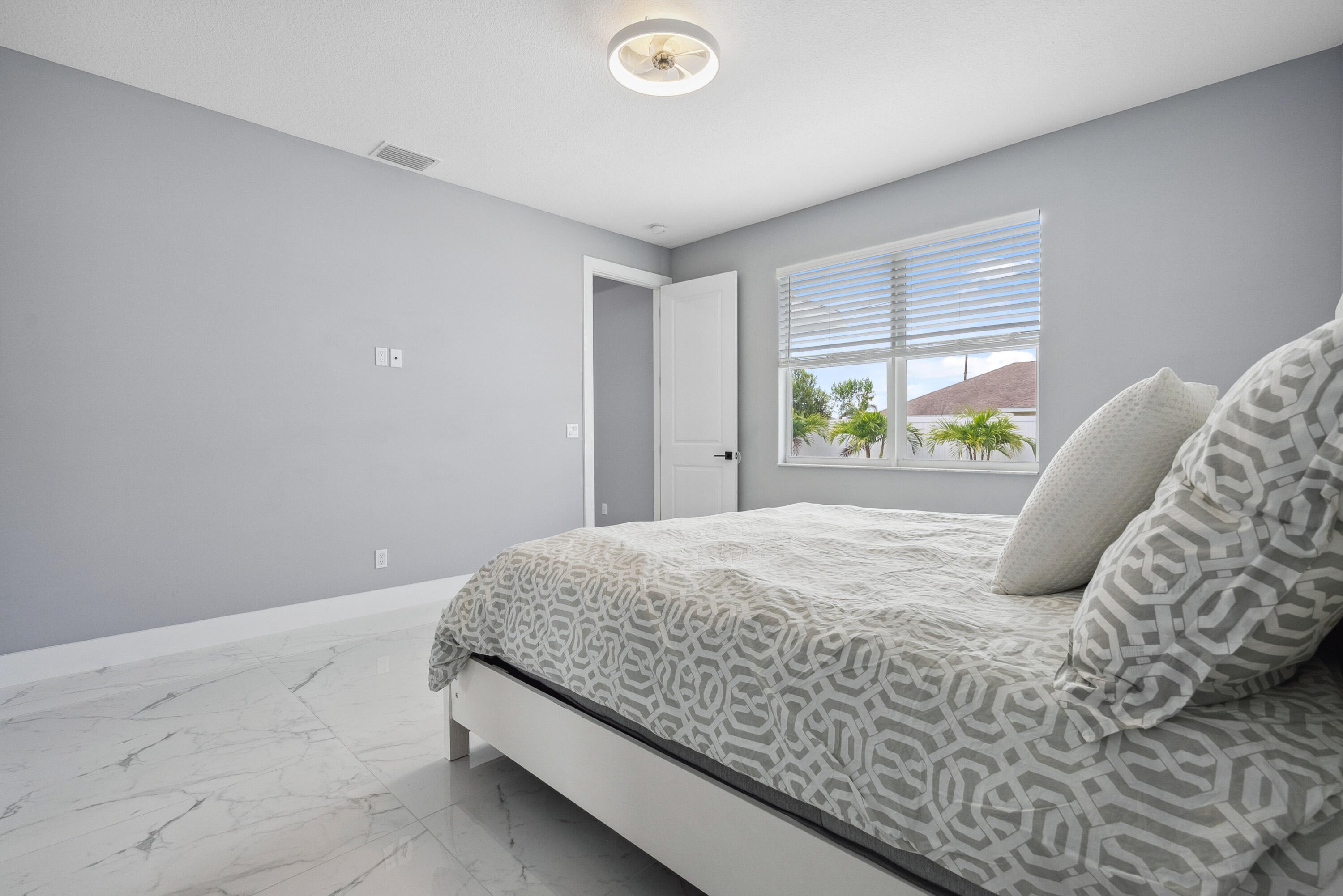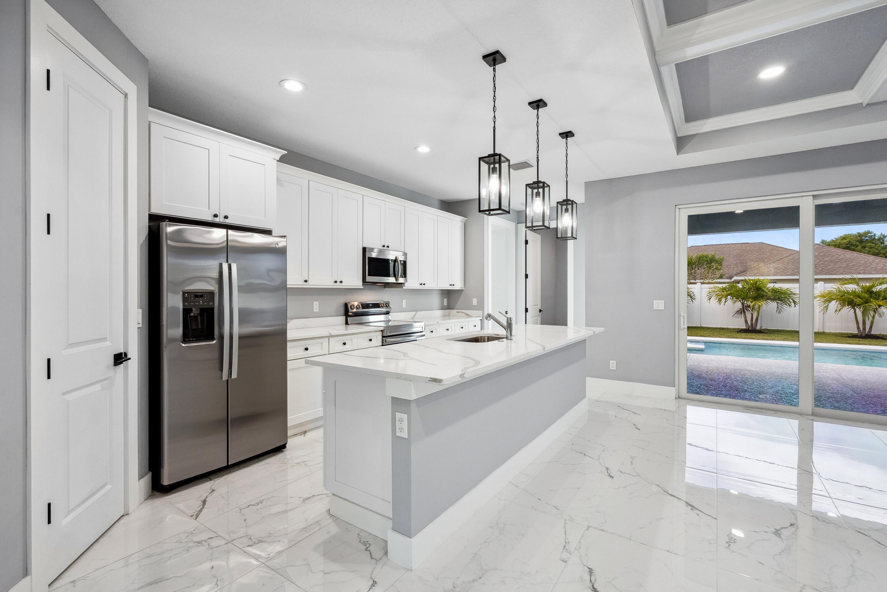 Pool home with a heated infinity spa! Fully fenced in yard for your pups! Only 1.4 miles to Tradition Square without having to pay the HOA or additional taxes to live in Tradition & only 52 minutes to the WPB Airport, making it an easy commute for a potential second home. Walking distance to Starbucks. No HOA, so bring your boat/RV! ALL IMPACT windows & doors built in 2022. Upgraded porcelain tile throughout, zero carpet. Beautiful white shaker kitchen with quartz countertops that overlooks the living room adorned with a coffer ceiling and crown molding. 8ft interior doors. The backyard is perfect to spend all summer! Two featured pergolas, an outdoor shower, extended pool cool decking and covered patio that can be easily screened for indoor/outdoor living.Pool home with a heated infinity spa! Fully fenced in yard for your pups! Only 1.4 miles to Tradition Square without having to pay the HOA or additional taxes to live in Tradition & only 52 minutes to the WPB Airport, making it an easy commute for a potential second home. Walking distance to Starbucks. No HOA, so bring your boat/RV! ALL IMPACT windows & doors built in 2022. Upgraded porcelain tile throughout, zero carpet. Beautiful white shaker kitchen with quartz countertops that overlooks the living room adorned with a coffer ceiling and crown molding. 8ft interior doors. The backyard is perfect to spend all summer! Two featured pergolas, an outdoor shower, extended pool cool decking and covered patio that can be easily screened for indoor/outdoor living. Additional details: Solar powered roof attic fan 30amp outdoor electrical outlet for boat/RV USB/Electrical Ports for 2 covered steel pergolas' Small outdoor pool storage shed 42" cabinets with soft close draws Over 10 ft island 3 Outdoor security lights Garage pull down attic stairs Epoxy garage floor Take a peek and fall in love!