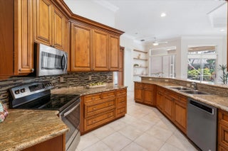 Roof Replaced in 2021! This beautifully maintained Heritage model in Cascades, offers over 2,400 sq ft of living space and it is a true 3-bedroom, 3-bath layout. This home has been freshly painted inside with new flooring in the 2nd bedroom and Primary. The spacious floor plan begins with a double-door entry opening to bright living and dining areas with plenty of room for entertaining. The kitchen is a standout, designed with 42'' cabinetry for added height and style, granite countertops, stainless steel appliances, and three large pantry and storage areas with pull-out drawers for maximum organization and convenience. A breakfast nook adds an inviting spot for casual dining, while the open design flows naturally into the main living areas.
