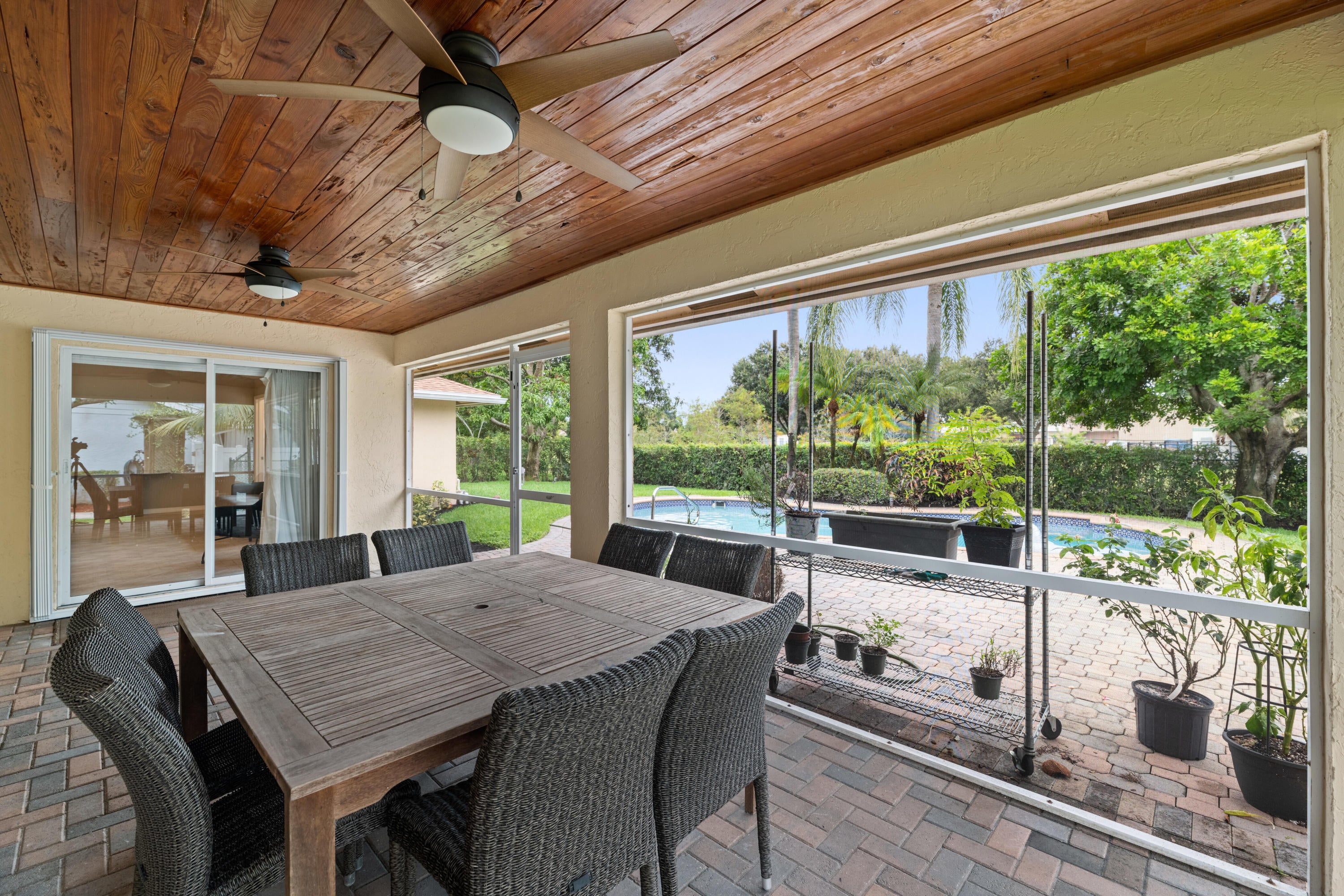 Walk, Bike or Golfcart to WEF or Global from this spacious 4 bedroom/2 bathroom pool home. Across the street from WEF and Global! King in Master and Queens in other bedrooms.