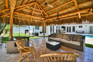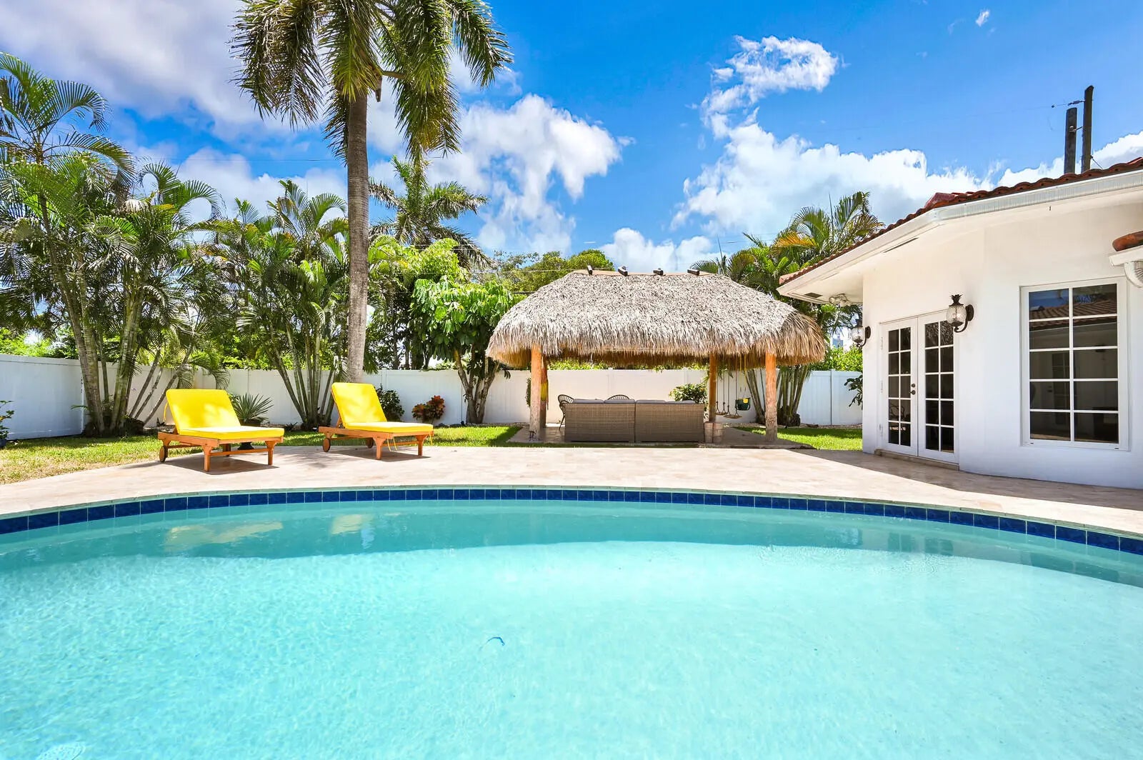 Available after mid April 2026. Rented all of March 2026. Short term rental in Deerfield Beach's desirable COVE has it ALL, Sprawling at 2400 sq ft w/enough room for each family member to enjoy his/her own space! The home features 4 large bedrooms, spacious & open living room + formal dining area, cozy bkfst nook, + large family room off yard. Beautiful chef's kitchen overlooks pool & boasts large cooking island, SS appliances & tons of cabinetry. XL fenced, private backyard is a true entertainer's oasis w free-form HEATED pool, travertine patio, XL tiki hut w/ projector screen, hammock, swings, TV & grill. Turnkey. Flexible date options available.