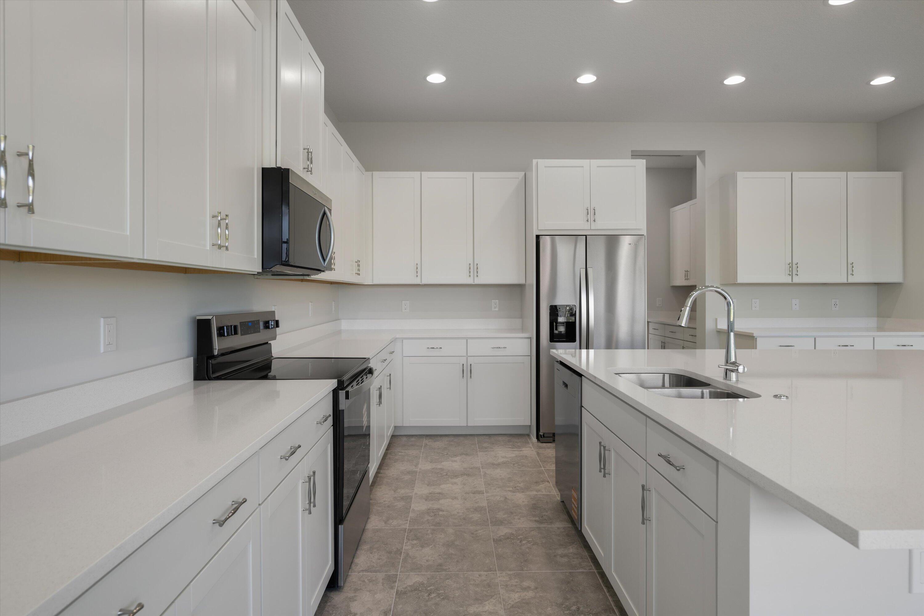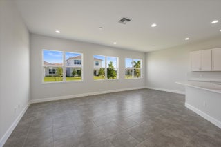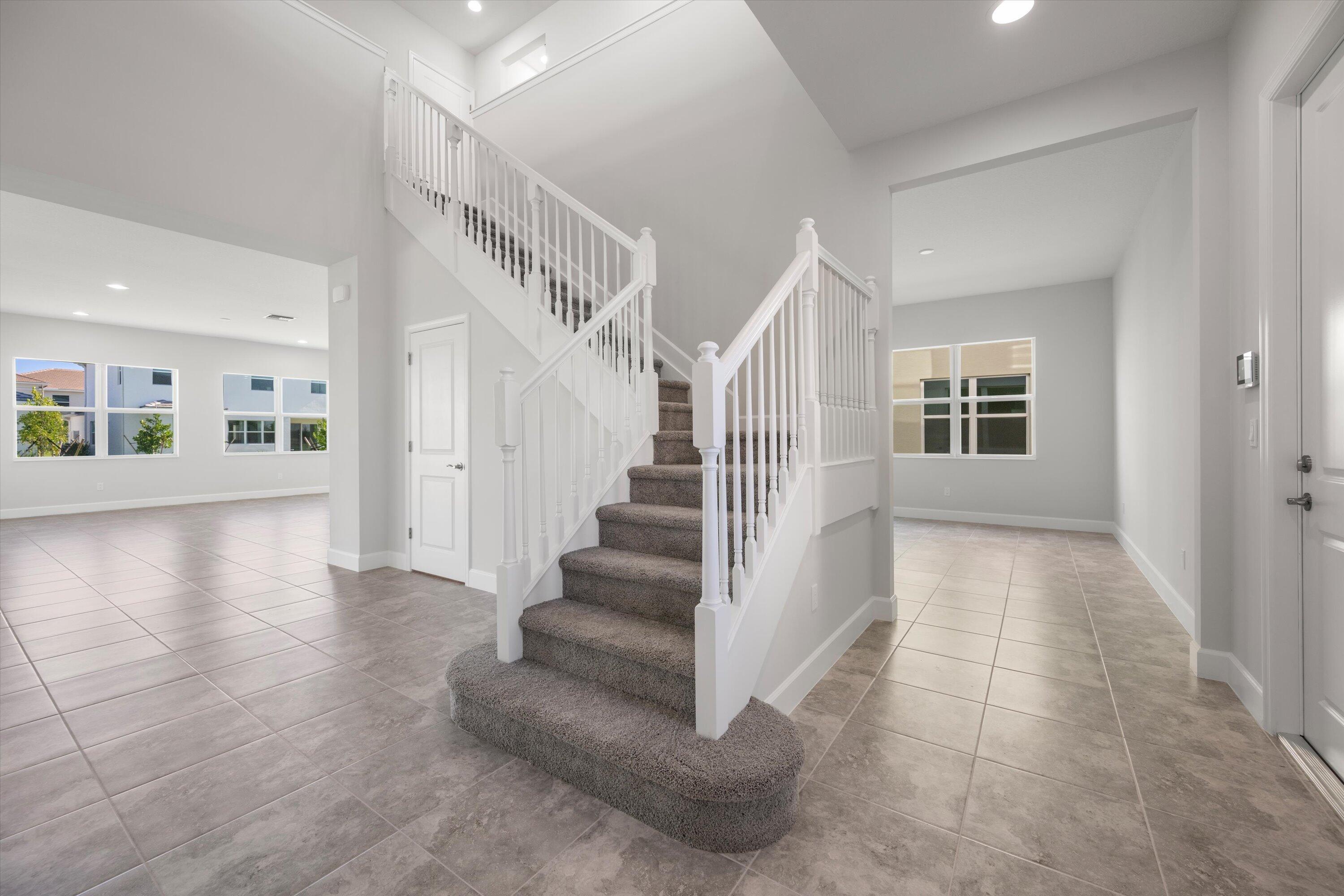 PRICED FOR A QUICK SALE !! NEVER LIVED IN!! STILL UNDER BUILDER WARRANTY! Welcome to this stunning Birchwood Grand model in the highly sought-after Pines community of Westlake, offering 5 bedrooms with closets, 5 bathrooms, media room, loft, and a spacious 2-car garage with over 4,000 square feet of living space. This never-before-lived-in residence, still under builder warranty, sits on a beautifully maintained lot with a large paved driveway, manicured landscaping, and a picturesque lake view at the front of the home.As you arrive, you are greeted by elegant double black doors that open into a bright foyer with crisp white walls, impact windows throughout, and tile flooring that extends across the main living areas. The open layout flows seamlessly into a spacious family room, formal living room, and a versatile den with plush gray carpet. The chef-inspired kitchen is a true centerpiece with white shaker cabinets, quartz countertops, a massive center island, a walk-in pantry, a butler's pantry, and all brand-new stainless steel appliances. Just off the kitchen, a breakfast nook provides a perfect spot for casual dining, while the butler's pantry connects to a grand formal dining room designed for entertaining. A full bathroom with matching cabinetry and quartz counters is conveniently located downstairs, along with a private media room. Upstairs, brand-new gray carpeting flows throughout the loft and all five bedrooms. The expansive primary suite features double-door entry, two walk-in closets, and a luxurious spa-like bathroom with dual vanities, quartz counters, a glass-enclosed shower, and abundant counter space. Two of the secondary bedrooms share a Jack and Jill ensuite with a tub, while another offers its own private ensuite bath, and the final bedroom includes an ensuite bath with dual entry, connecting both to the room and the loft. The loft itself is open and airy, creating an additional living or entertainment space. Every bathroom in the home showcases matching white shaker cabinetry and quartz countertops for a cohesive modern design. A full laundry room is also located upstairs, complete with brand-new Whirlpool washer and dryer. Step outside to a large backyard with a covered lanai, perfect for outdoor gatherings and relaxation. With its thoughtful layout, high-end finishes, and prime location in Westlake, this residence is the perfect blend of style, comfort, and functionality.
