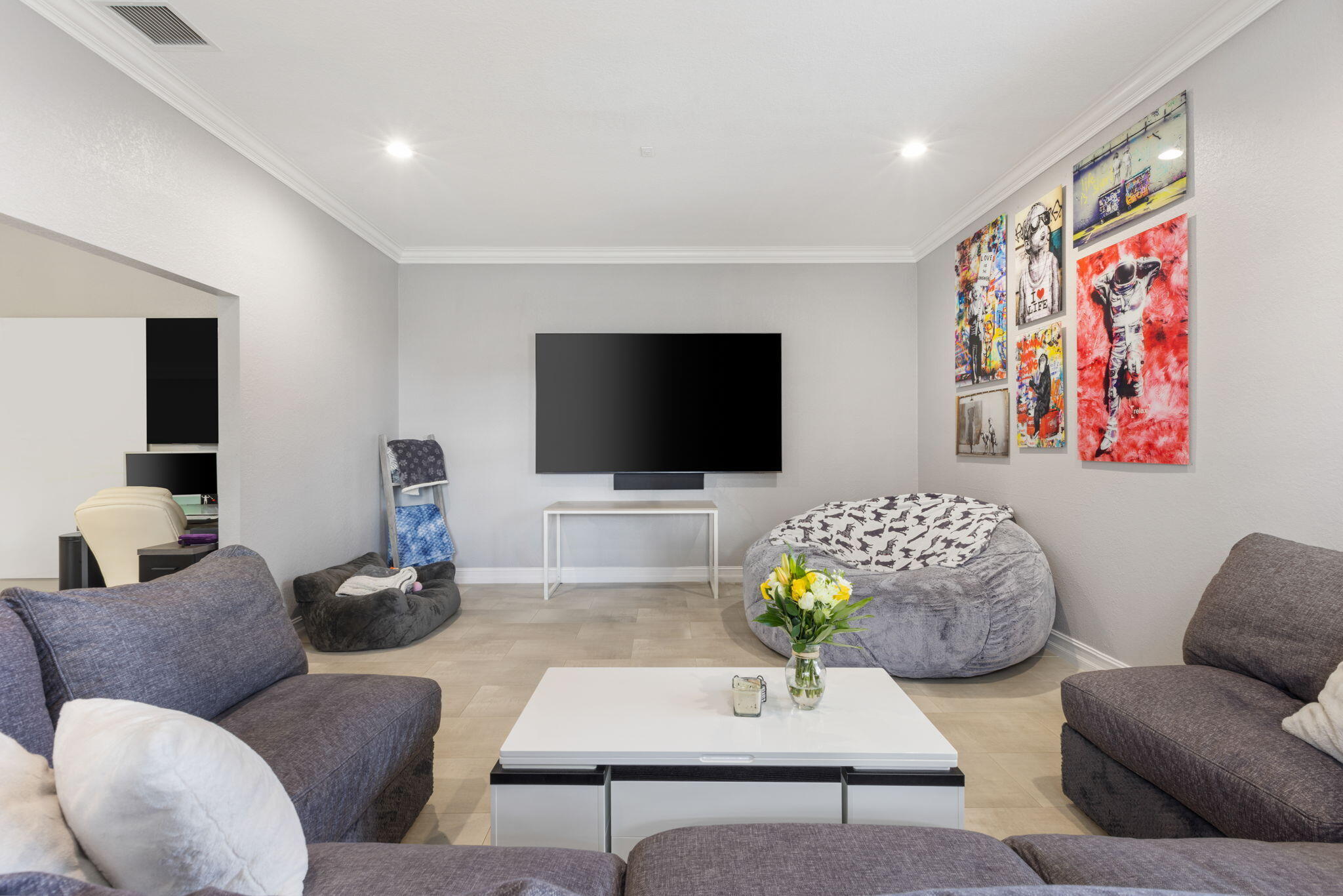 Welcome to 11788 Knightsbridge Place, a stunning estate in the heart of Wellington, Florida. This expansive home boasts just under 5,000 sq. ft. of luxury living, designed for both comfort and entertainment. The highlight of the home is a private theater room, perfect for movie nights with family and friends. Step outside to your private oasis--a sparkling pool with breathtaking waterfront views, ideal for relaxing or hosting gatherings. The primary bedroom features a spacious balcony that overlooks the pool, offering serene views and a perfect spot for morning coffee. Located near a major airport, with plenty of shopping and restaurants nearby, this home offers convenience and a prime location. Can be rented seasonally, furnished for 18,000 per month.