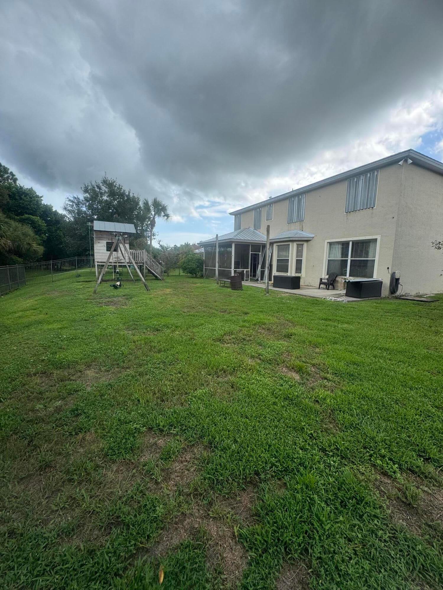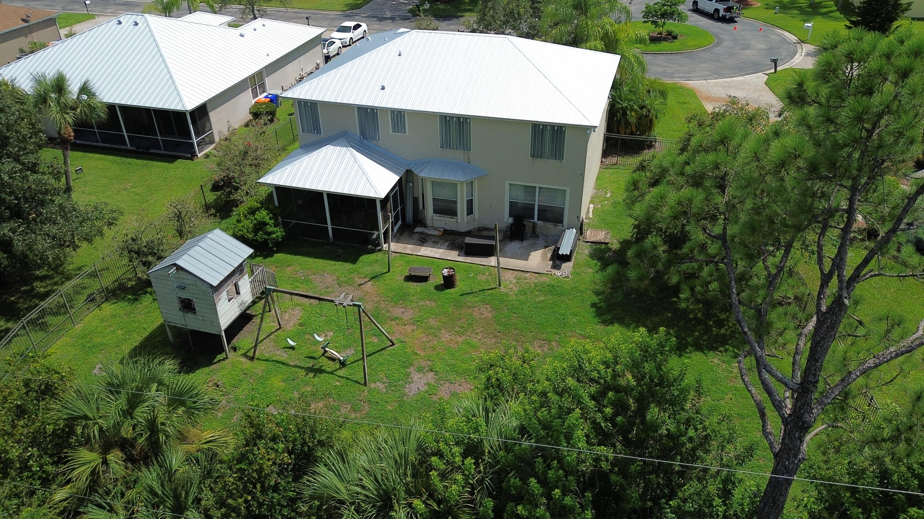 NEW METAL ROOF! Welcome to your dream home in the heart of Vero Beach, FL! Situated on a beautiful, quiet cul de sac, this home boasts 5BED|3BATH. This stunning 2-story residence boasts 2,722 sq ft of beautifully designed living space, offering the perfect blend of elegance & comfort. Fully fenced & features a screen patio! Gourmet kitchen with its light blue 42-inch cabinets, complemented by lush landscaping & a spacious two-car garage. Step inside to be greeted by a bright & airy open floor plan. The living area is impeccably designed for entertaining, featuring tile throughout the first floor & sleek wood tile flooring in the second floor, master bedroom features a spacious walking closet, offering picturesque views of the serene backyard. Huge Lot-Priced to Sell!