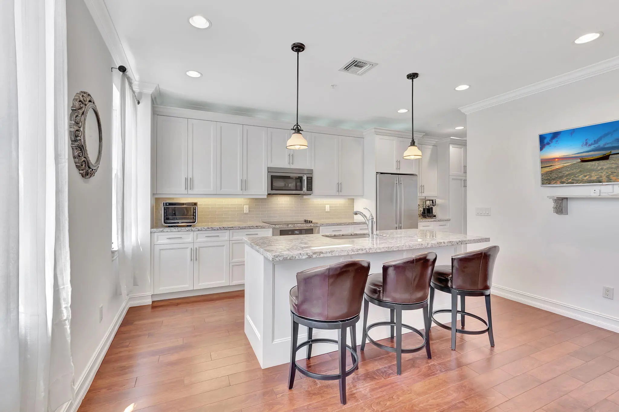 This LARGER end unit stands out with its bright, Southern exposure. It feels like a single-family house, including large living areas, solid core doors and great closets, 3 ensuite bedrooms, each with finished walk-in closet. Cannery Row in Downtown Delray offers a high-end, private enclave. The primary suite walk in is amazing!! Impact glass, a whole-house water filtration system, a central vacuum, and new A/C unit.This home has an infrared sauna and oversized two-car garage with extra storage and driveway parking. Priced right! The best unit and community downtown Delray. A short stroll to the shops, dining on Atlantic Avenue, and the beautiful Delray shoreline. There are only 90 tri level townhomes each with 3bed, 3.1 bath and two car garage. Community Pool, cabana bath and BBQ.