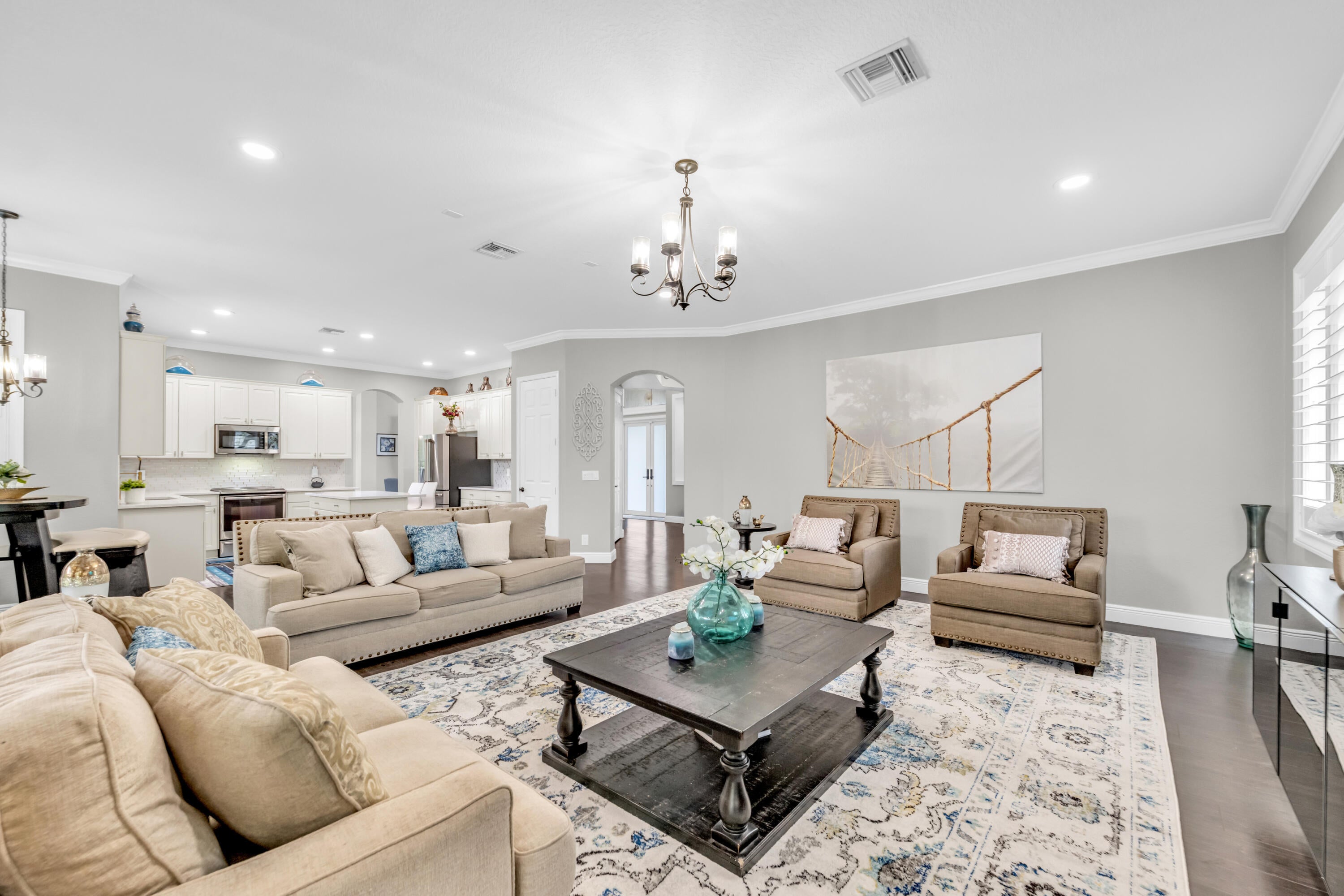 Welcome to this beautiful 5/3 two story home in the heart of the well sort after equestrian community call '' The Isles of Wellington.'' This home is immaculate and decorated with the finest furniture and state of the art window treatment! The first floor is equipped with a bedroom and a full bathroom. Upstairs is the luxurious main suite with a walk in closet and an oversized bathroom & off the main suite there is a big balcony where you can relax and enjoy the fresh air with a nice cold or hot beverage after a hard day of work. This home has one of the biggest out door space in the community with areas set up for you to relax or play! Home is also equipped with hurricane impact windows & doors. Home owner is flexible & accommodating!