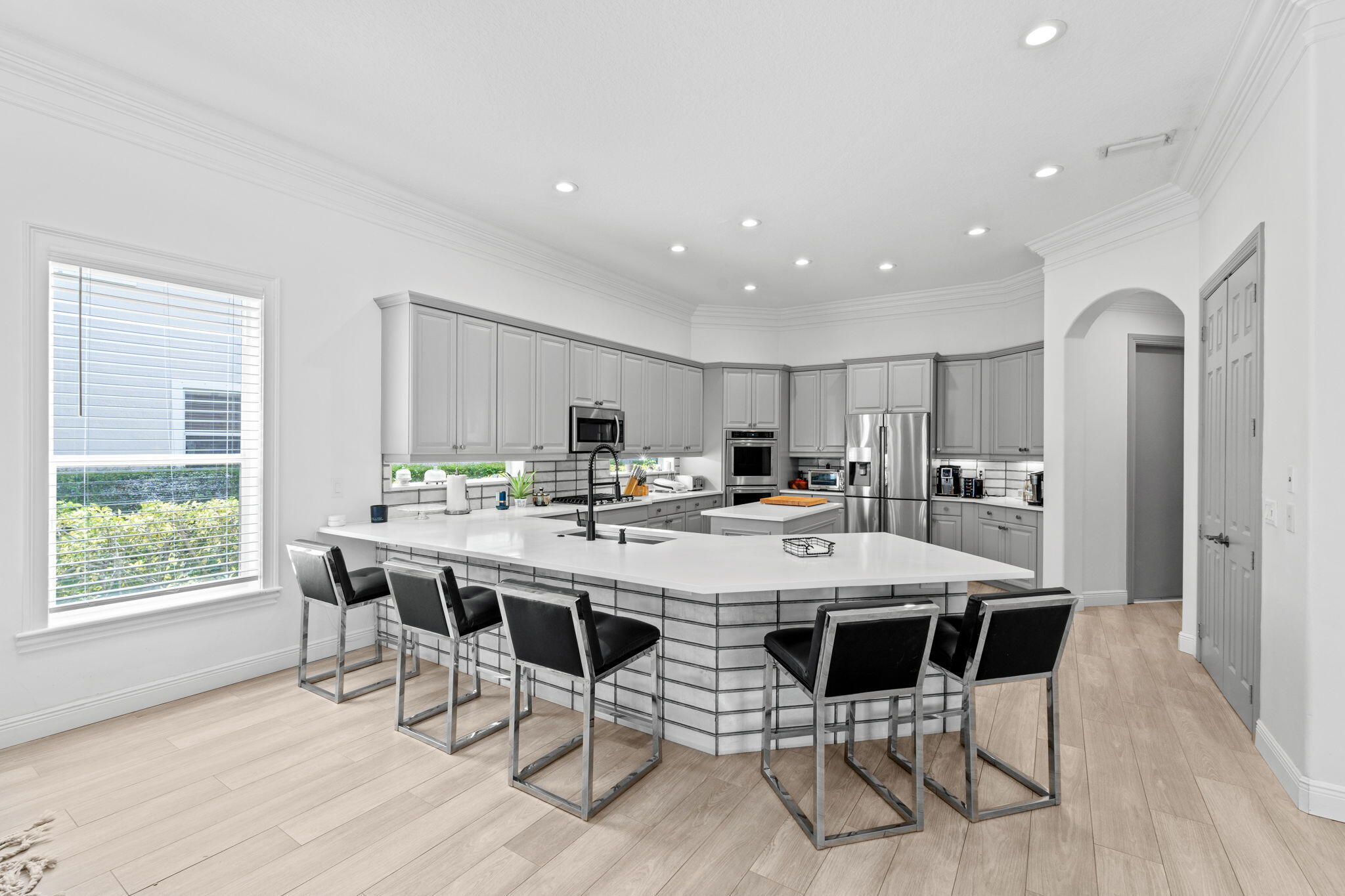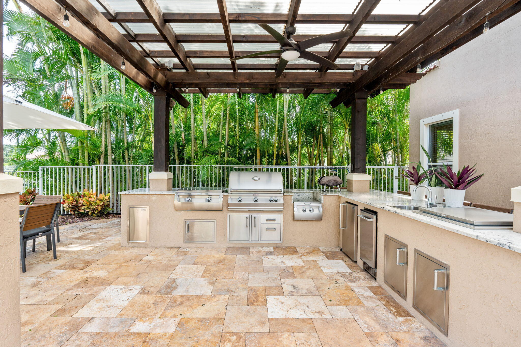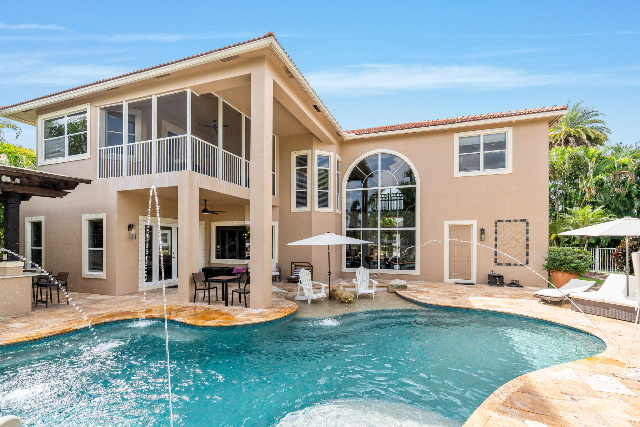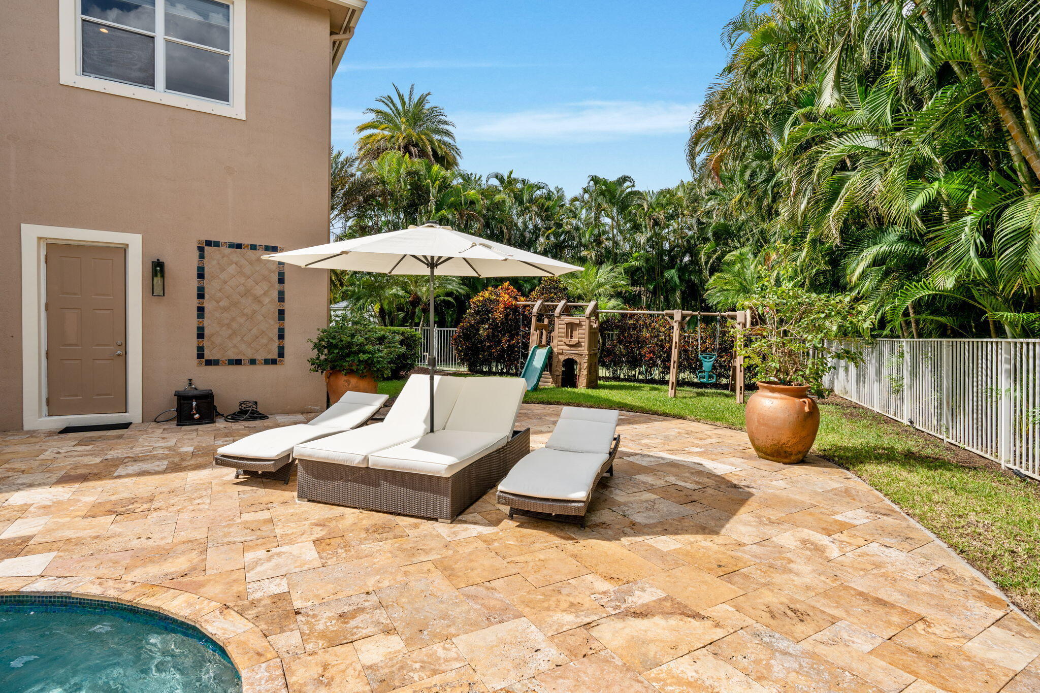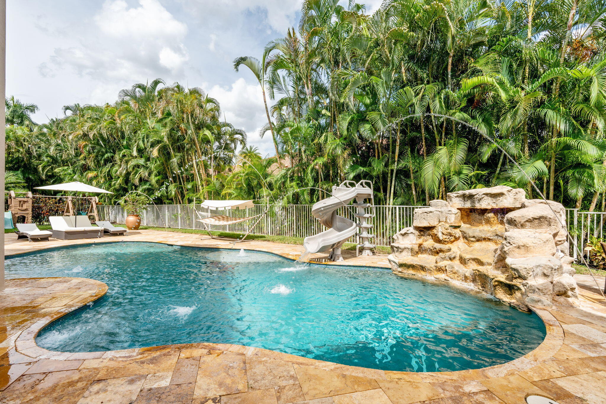 Welcome to this beautiful light-filled 6-bedroom, 4.5-bath seasonal rental offering luxurious comfort, space, and style. Upon entering, a striking floor-to-ceiling rear window greets you, framing the backyard, resort-style pool, and water, filling the home with light and serenity, with abundant space and storage throughout. The first floor features wood-tile flooring, a guest suite with a cabana bath and pool access, and flexible living and dining areas perfect for entertaining. The open family room and breakfast nook flow seamlessly into the gourmet kitchen with a 5-burner double oven, oversized island, walk-in pantry, and backsplash windows that bring in even more natural light.Upstairs, the primary suite overlooks the pool and water and serves as a true retreat, featuring dual walk-in closets, double vanities, spa-style shower, soaking tub, and beautiful designer light fixtures. Additional bedrooms share updated baths, and the laundry room is conveniently located. Outdoors, enjoy a resort-style pool with beach-entry and water feature, covered ultimate outdoor summer kitchen, putting green, and lush bamboo for privacy, with a huge fenced backyard offering abundant space for lounging, playing, and entertaining. The home also includes a 3-car garage for added convenience. Perfect for relaxing or hosting, just minutes from Wellington's equestrian venues, dining, and shopping.