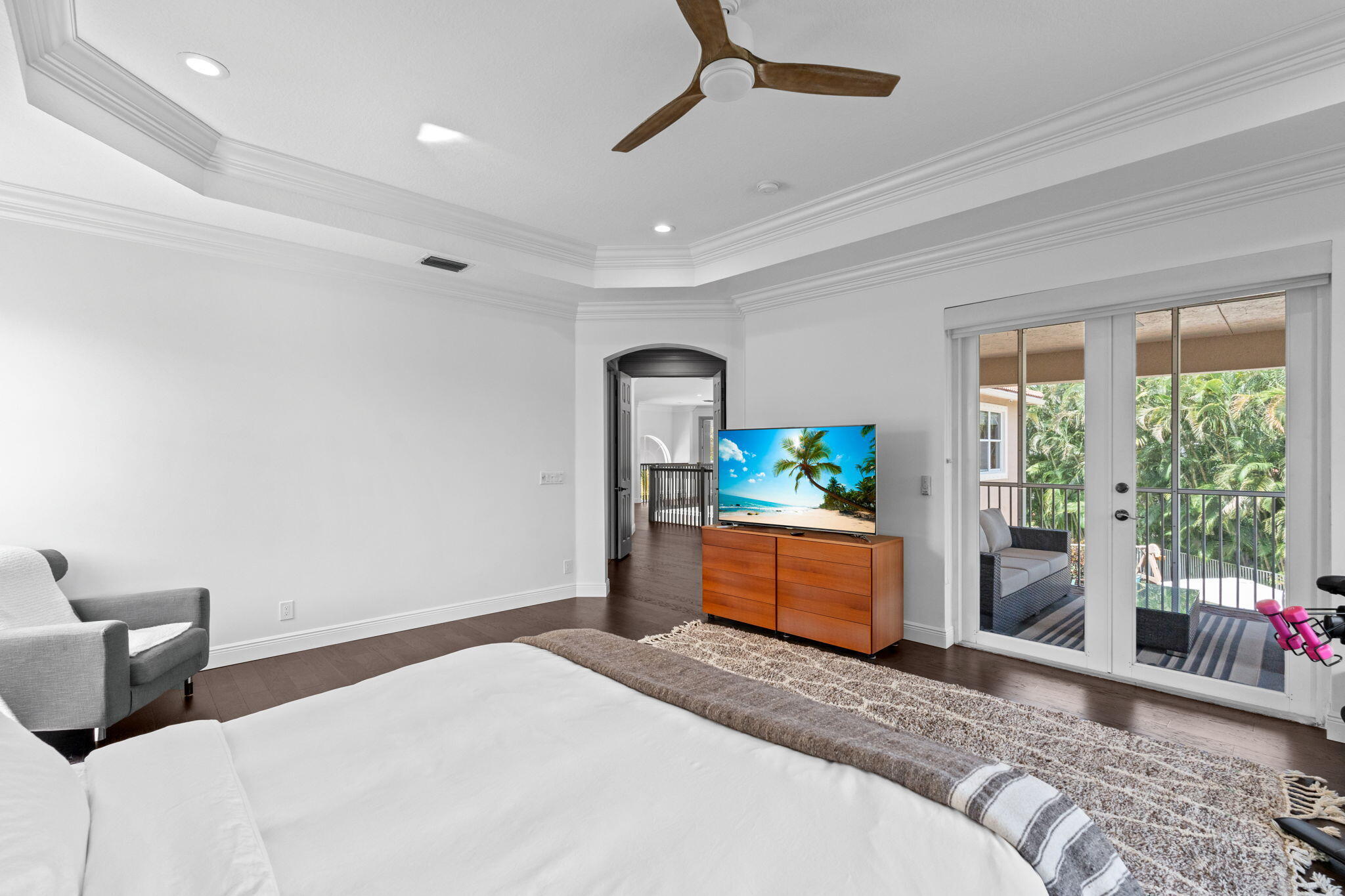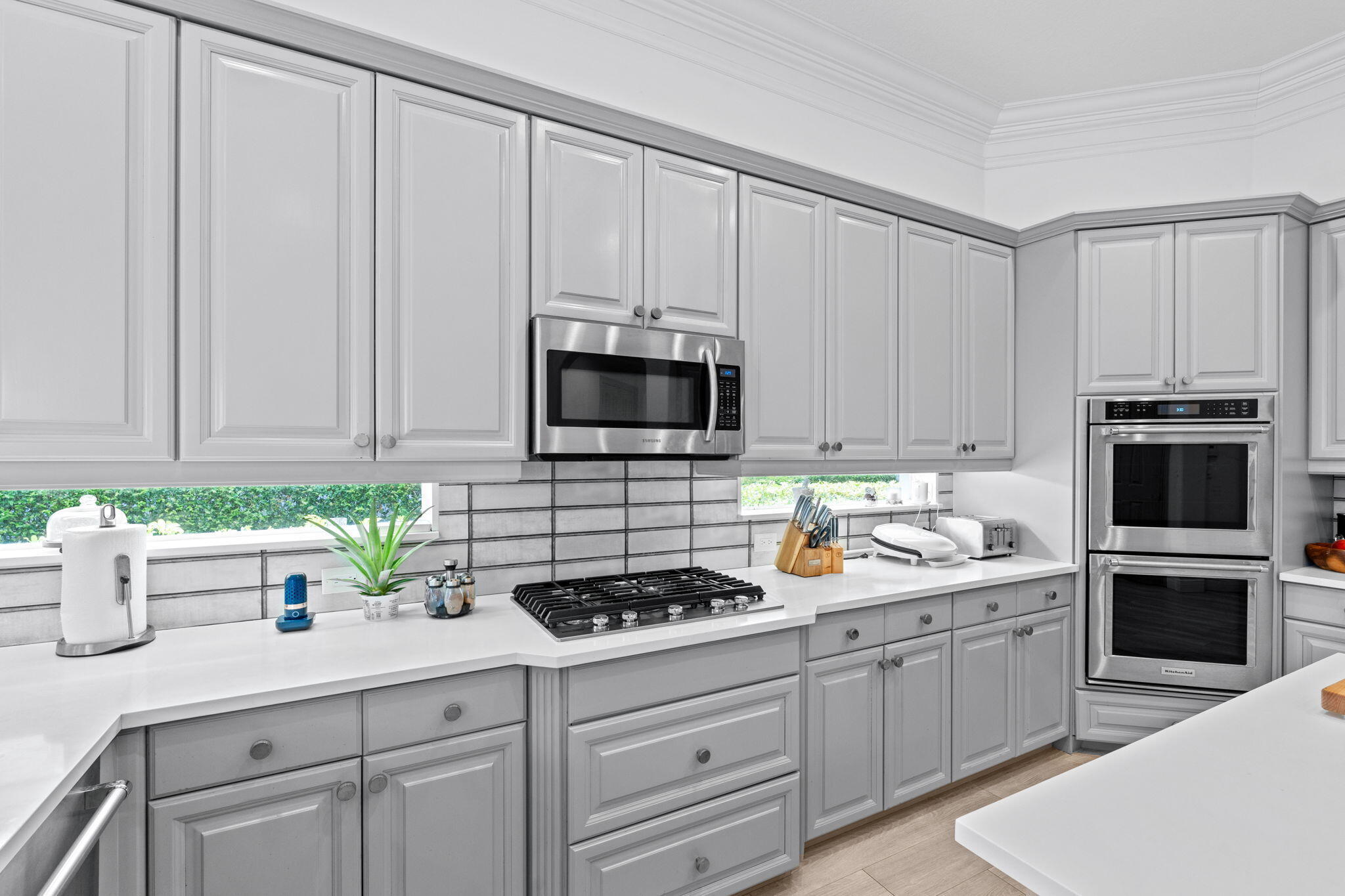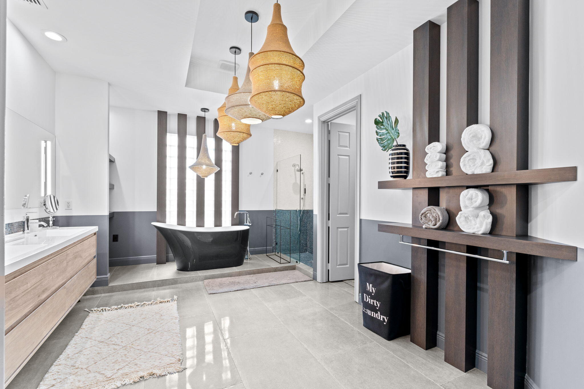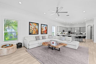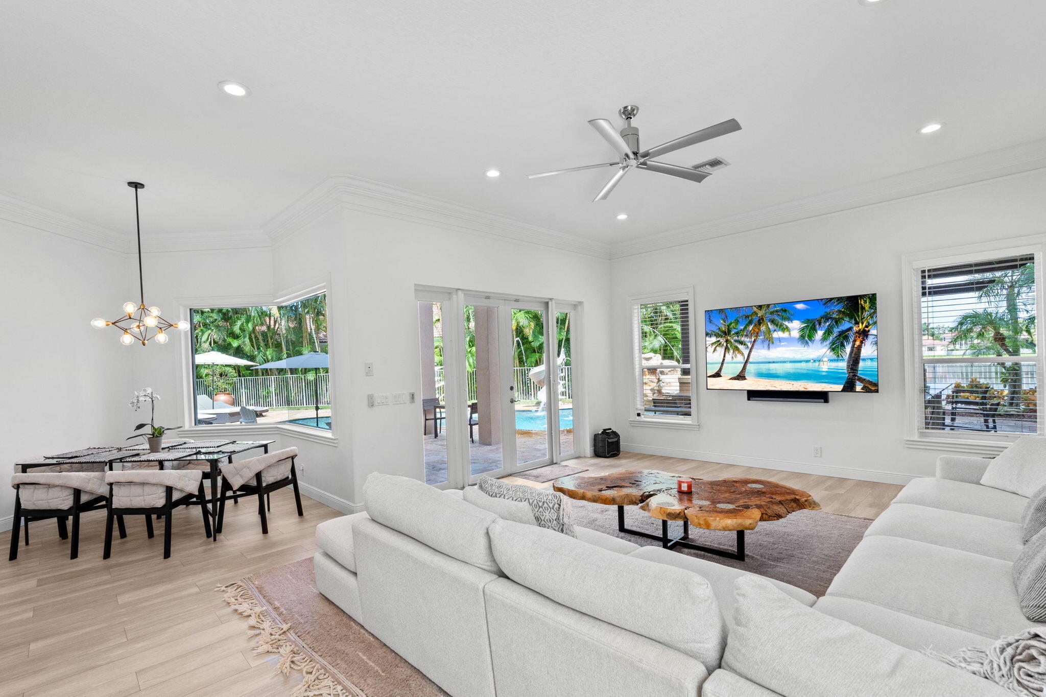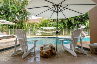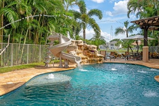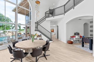 Welcome to this beautiful light-filled 6-bedroom, 4.5-bath seasonal rental offering luxurious comfort, space, and style. Upon entering, a striking floor-to-ceiling rear window greets you, framing the backyard, resort-style pool, and water, filling the home with light and serenity, with abundant space and storage throughout. The first floor features wood-tile flooring, a guest suite with a cabana bath and pool access, and flexible living and dining areas perfect for entertaining. The open family room and breakfast nook flow seamlessly into the gourmet kitchen with a 5-burner double oven, oversized island, walk-in pantry, and backsplash windows that bring in even more natural light.Upstairs, the primary suite overlooks the pool and water and serves as a true retreat, featuring dual walk-in closets, double vanities, spa-style shower, soaking tub, and beautiful designer light fixtures. Additional bedrooms share updated baths, and the laundry room is conveniently located. Outdoors, enjoy a resort-style pool with beach-entry and water feature, covered ultimate outdoor summer kitchen, putting green, and lush bamboo for privacy, with a huge fenced backyard offering abundant space for lounging, playing, and entertaining. The home also includes a 3-car garage for added convenience. Perfect for relaxing or hosting, just minutes from Wellington's equestrian venues, dining, and shopping.
