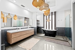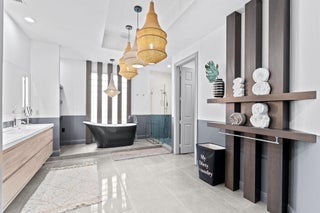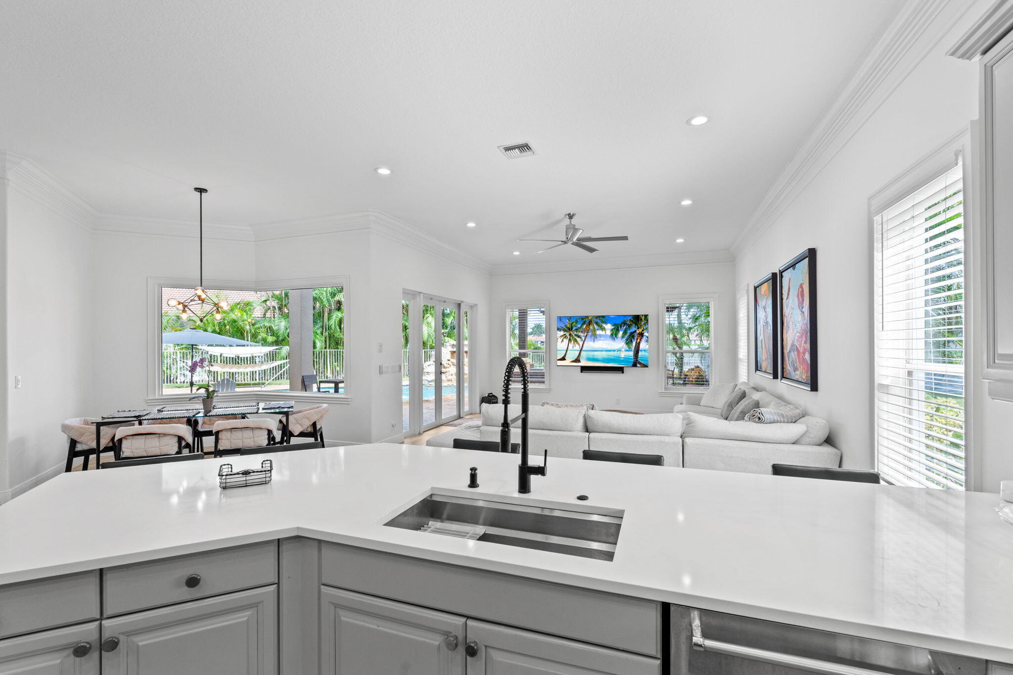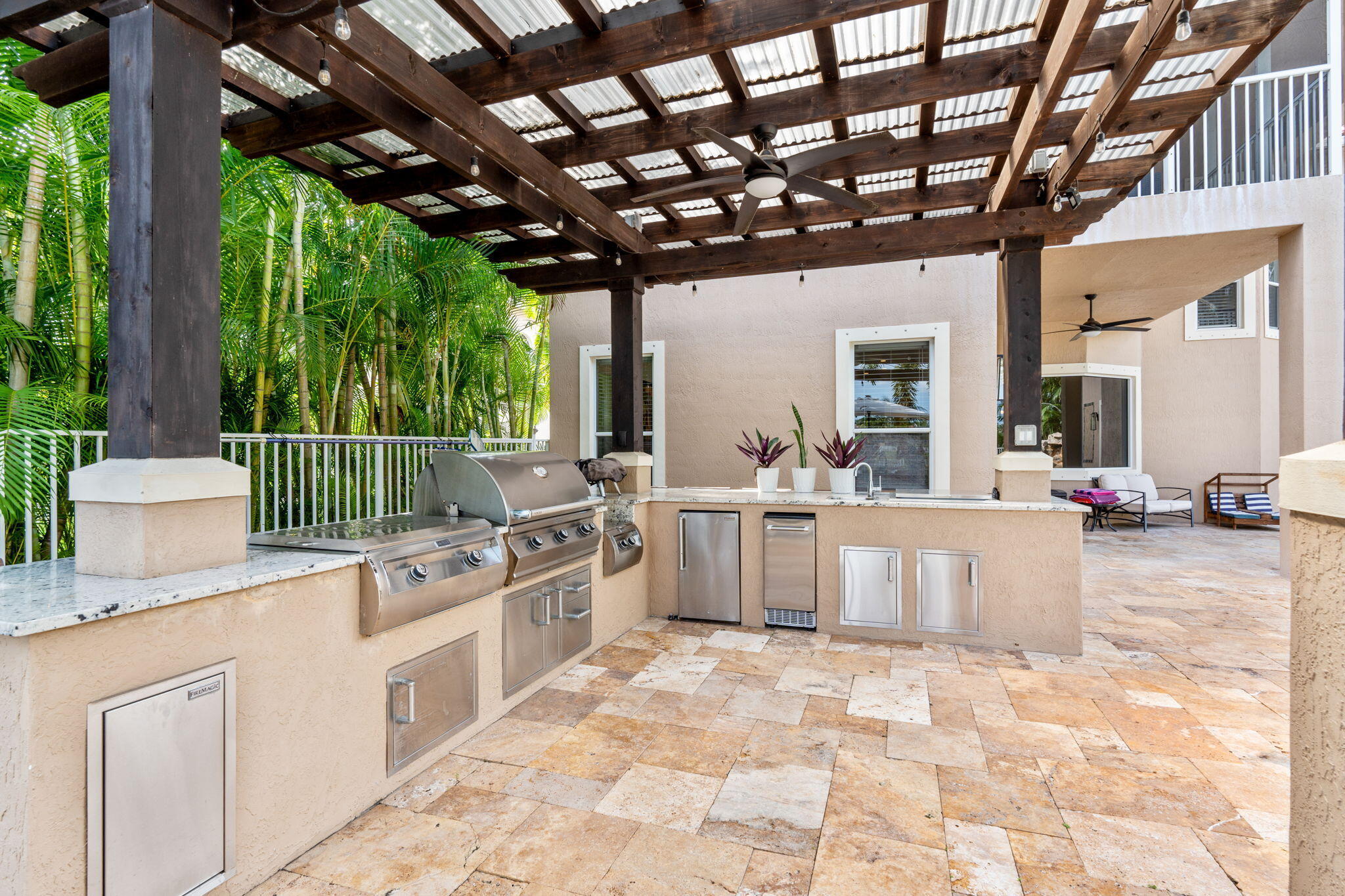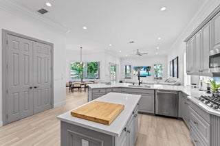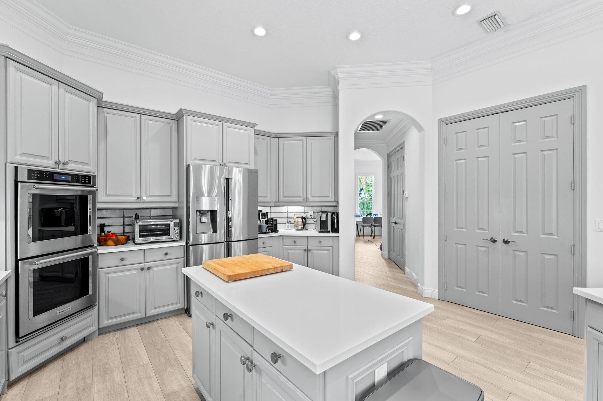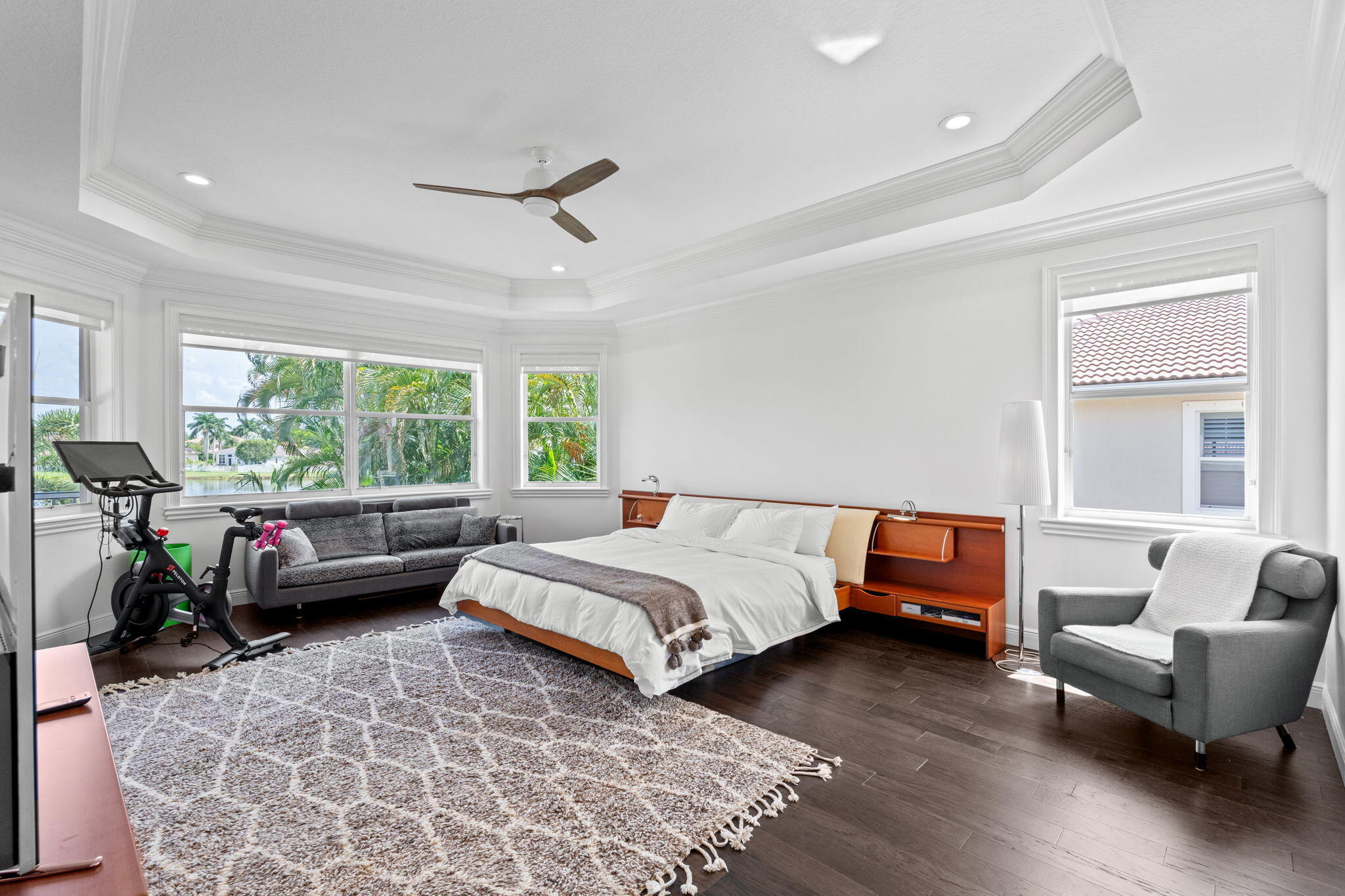 Welcome to this beautiful light-filled 6-bedroom, 4.5-bath seasonal rental offering luxurious comfort, space, and style. Upon entering, a striking floor-to-ceiling rear window greets you, framing the backyard, resort-style pool, and water, filling the home with light and serenity, with abundant space and storage throughout. The first floor features wood-tile flooring, a guest suite with a cabana bath and pool access, and flexible living and dining areas perfect for entertaining. The open family room and breakfast nook flow seamlessly into the gourmet kitchen with a 5-burner double oven, oversized island, walk-in pantry, and backsplash windows that bring in even more natural light.Upstairs, the primary suite overlooks the pool and water and serves as a true retreat, featuring dual walk-in closets, double vanities, spa-style shower, soaking tub, and beautiful designer light fixtures. Additional bedrooms share updated baths, and the laundry room is conveniently located. Outdoors, enjoy a resort-style pool with beach-entry and water feature, covered ultimate outdoor summer kitchen, putting green, and lush bamboo for privacy, with a huge fenced backyard offering abundant space for lounging, playing, and entertaining. The home also includes a 3-car garage for added convenience. Perfect for relaxing or hosting, just minutes from Wellington's equestrian venues, dining, and shopping.