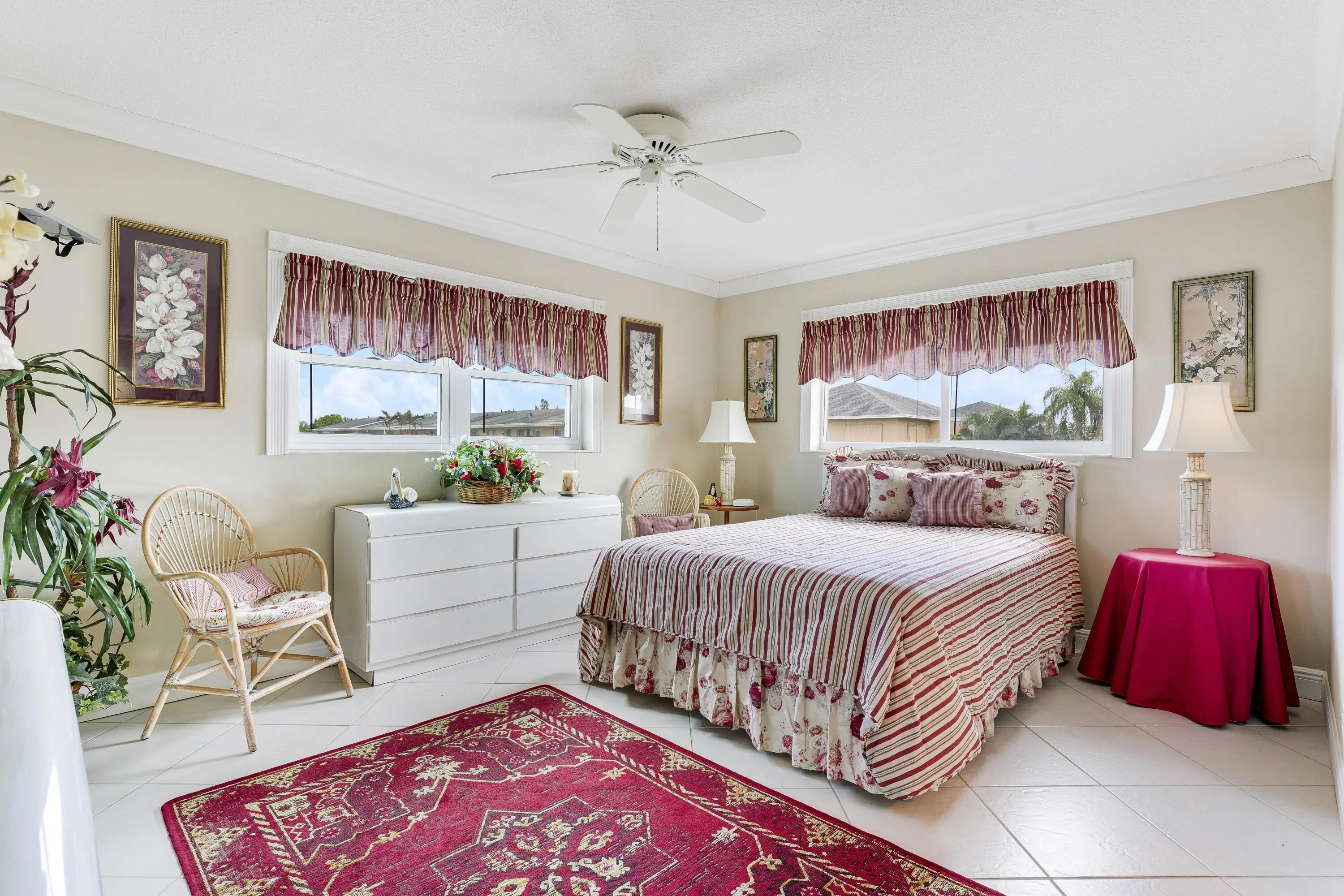 Welcome home to this tastefully furnishedand incredibly maintained 2 bedroom, 2 full bathroom condo in the desirable 55+ community of Village Royale, East Boynton. This END unit offers extra windows, full impact glass, crown moulding, and tiled floors throughout. Both bathrooms are beautifully renovated. Florida room includes a full sized washer and dryer and lots of windows for a light and bright space to enjoy a book and coffee. Seller is leaving all furniture and housewares--just bring your toothbrush and move right in to this turn key condo! Steps from the community pool. Association dues include water, sewer, trash, cable, and internet. Conveniently located near I-95, Publix, shopping, and the beaches.